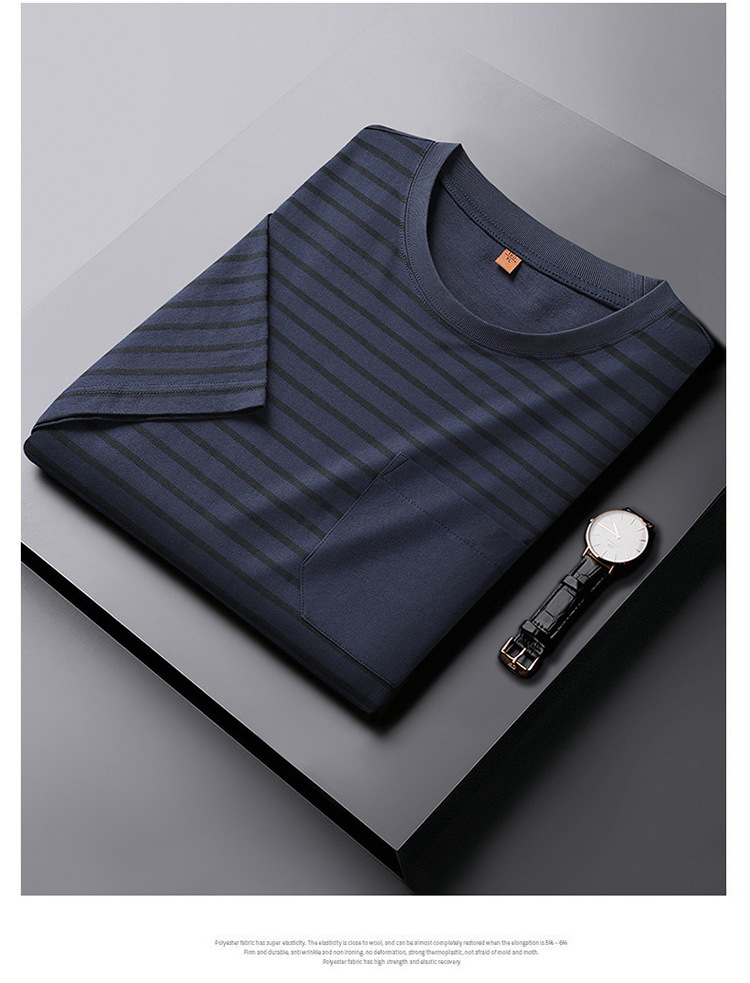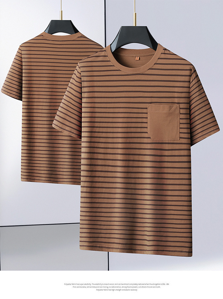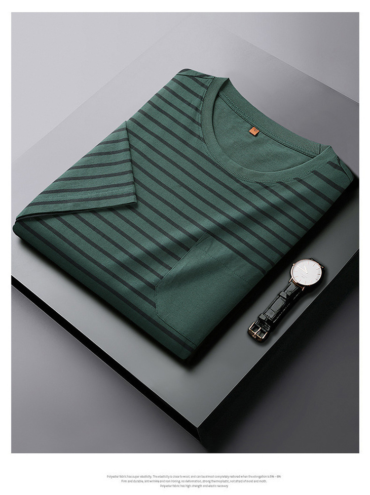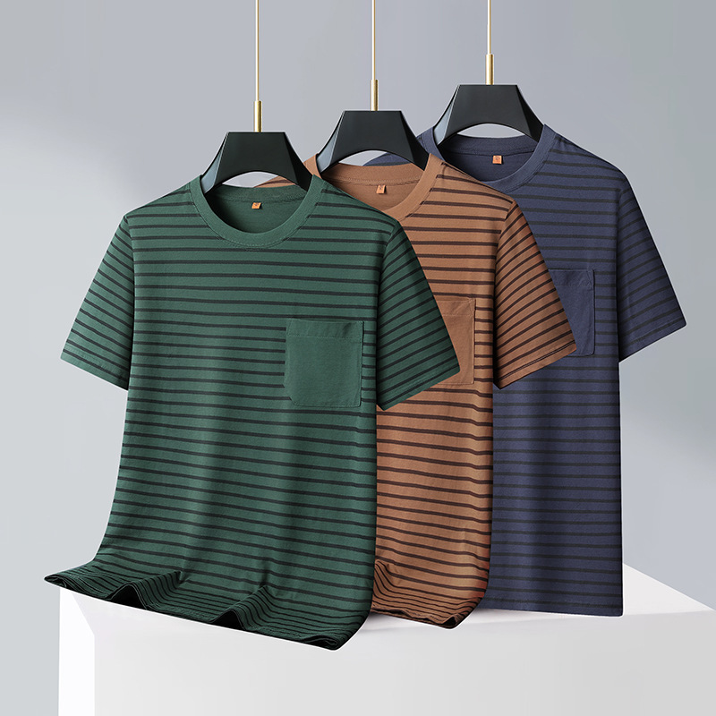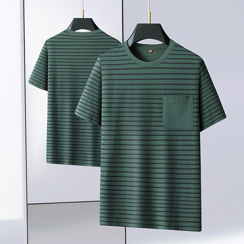 Áo thun ngắn tay dành cho nam, có cổ tròn và họa tiết sọc. Sản phẩm được may từ chất liệu bông mềm mại, mang lại cảm giác dễ chịu khi mặc vào mùa hè. Kiểu dáng rộng rãi, thoải mái, phù hợp cho các hoạt động hằng ngày. Áo có túi tiện lợi ở phía trước. Bạn có thể mặc kết hợp với quần shorts hoặc quần jeans để tạo nên vẻ ngoài năng động. | Tên sản phẩm: Áo Thun Nam Chất Liệu Vải Bông Big Size Ngoại Cỡ Ngắn Tay Hàng Mùa Hè - Thời Trang Nam | Mã sản phẩm: B9235 - Giá: 890.000đ | Mã nhà sản xuất: SUDER-G03Hình ảnh sản phẩm
