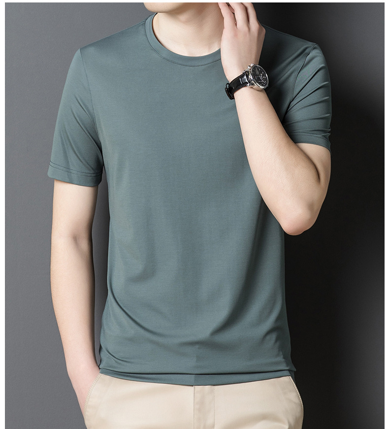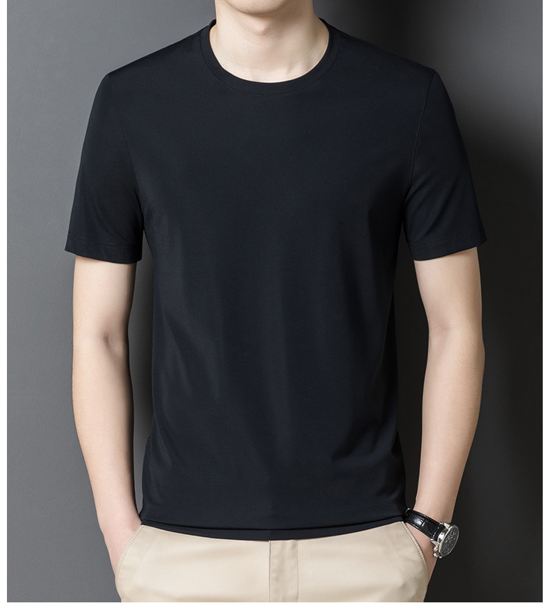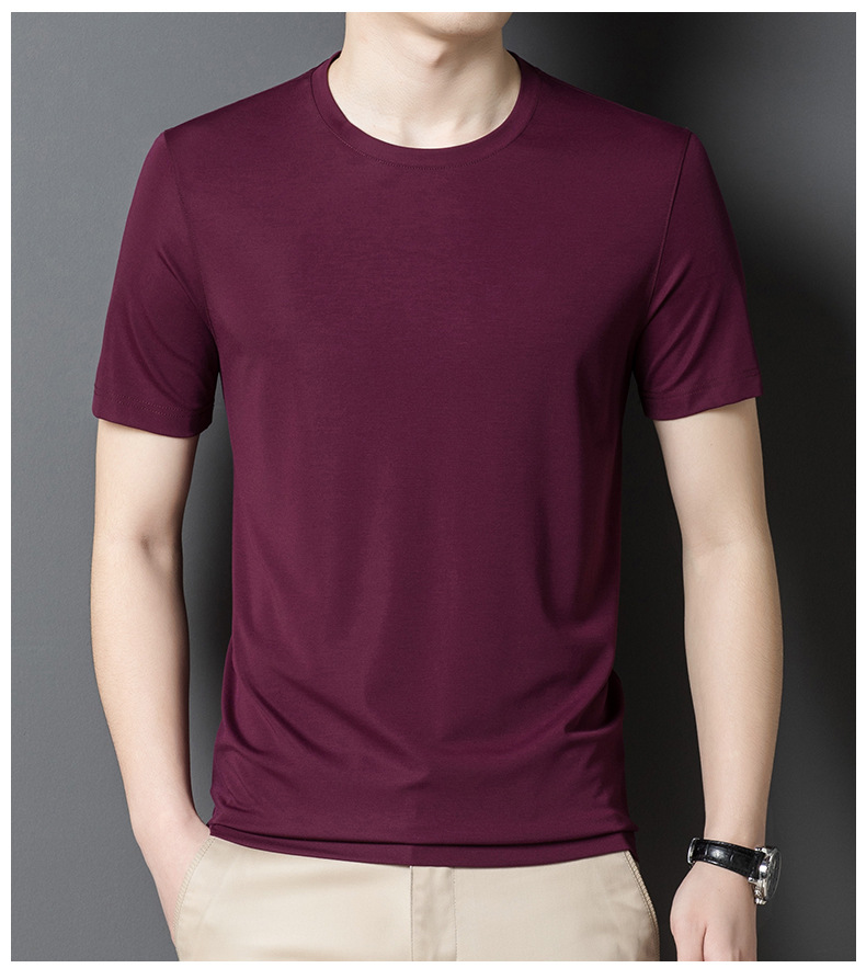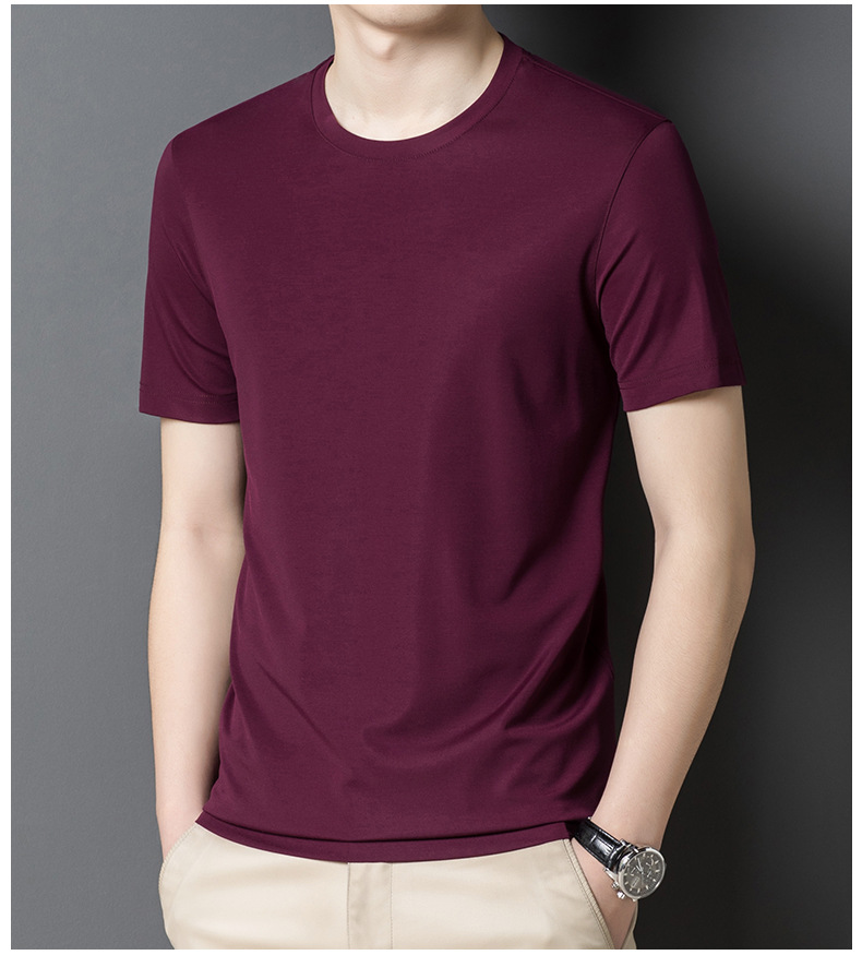 Áo thun ngắn tay dành cho nam, làm từ sợi tơ tằm tự nhiên, mang đến cảm giác mát mẻ và thoải mái khi mặc vào mùa hè. Kiểu dáng cổ tròn dễ phối đồ, phù hợp với nhiều dịp khác nhau. Sản phẩm có thiết kế đơn giản, nhẹ nhàng và thoáng khí. Khi giặt, nên vò nhẹ nhàng bằng nước lạnh và phơi ở nơi râm mát để giữ form áo và chất vải được bền lâu. | Tên sản phẩm: Áo Thun Nam Chất Liệu Lụa Tơ Tằm Hàng Mùa Hè Trung Niên - Thời Trang Nam | Mã sản phẩm: B9241 - Giá: 1.730.000đ | Mã nhà sản xuất: SHRYCT-G05Hình ảnh sản phẩm