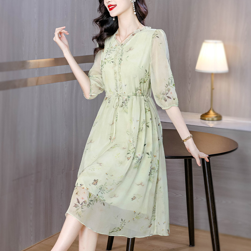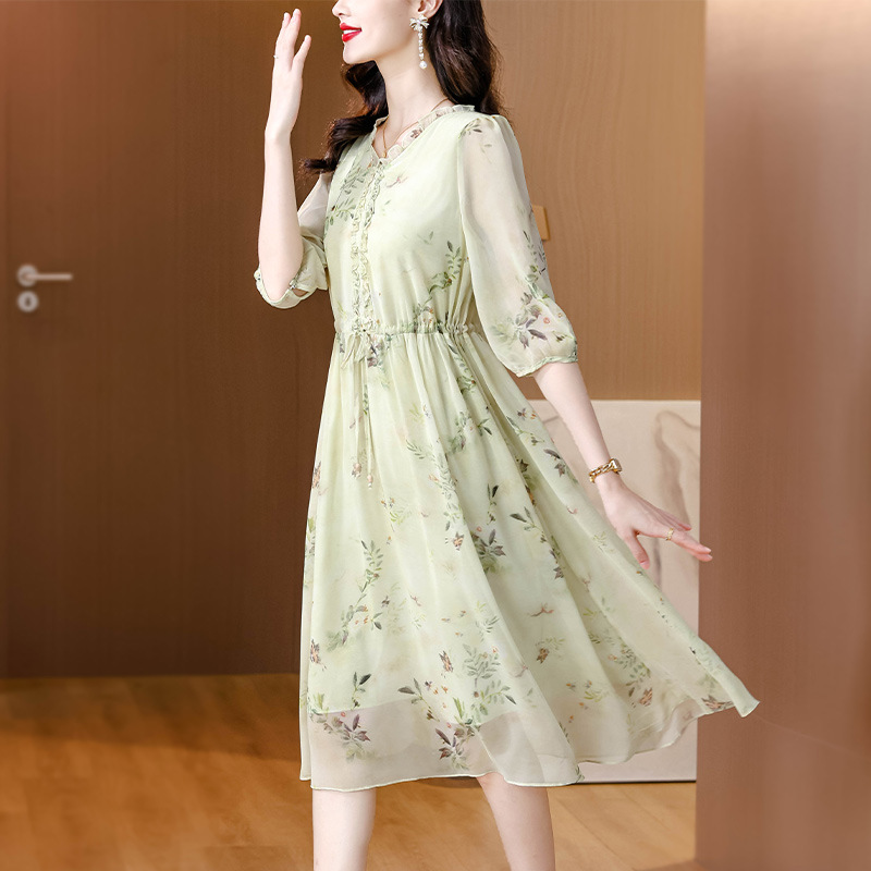 Chiếc đầm dáng chữ A này được dệt từ chất liệu tơ tằm mềm mại, mang đến cảm giác mát mẻ và thoải mái khi mặc. Thiết kế có phần eo ôn nhẹ giúp tôn lên dáng người. Trên nền vải là họa tiết in nổi bật, phù hợp cho những dịp đi làm hoặc dạo phố. Sản phẩm dễ dàng phối cùng giày cao gót hoặc sandal. Giặt nhẹ nhàng bằng tay và phơi trong bóng mát để giữ form vải và màu sắc lâu bền. | Tên sản phẩm: Váy Đầm Liền Thân Nữ Chất Liệu Lụa Tơ Tằm Dáng Chữ A Họa Tiết Hoa Trung Niên - Thời Trang Nữ | Mã sản phẩm: B9253 - Giá: 1.900.000đ | Mã nhà sản xuất: SHRYCT-G05Hình ảnh sản phẩm