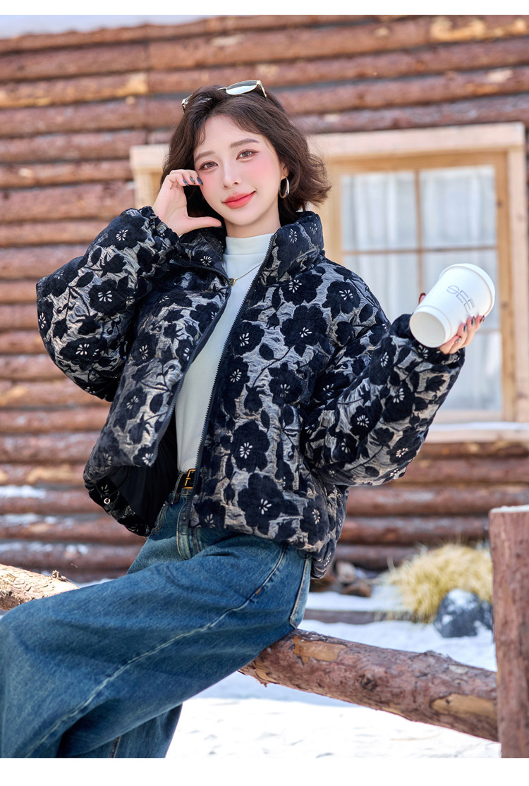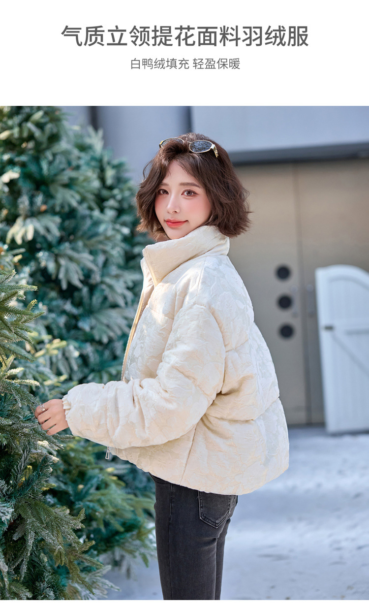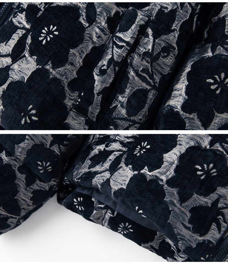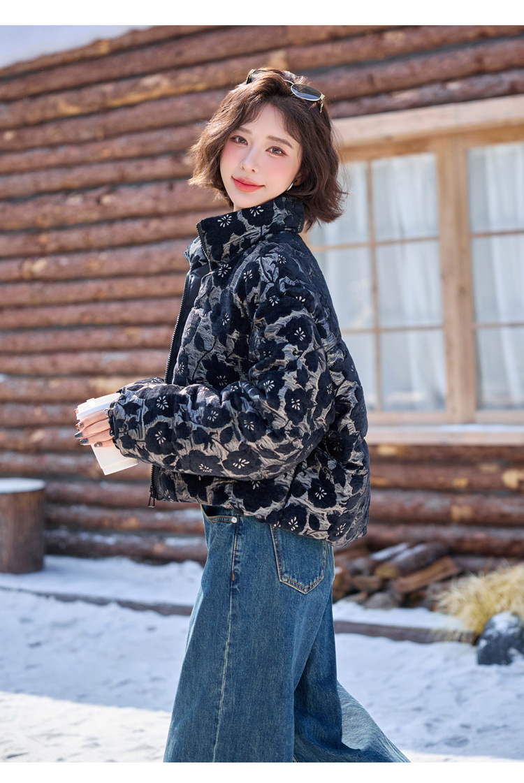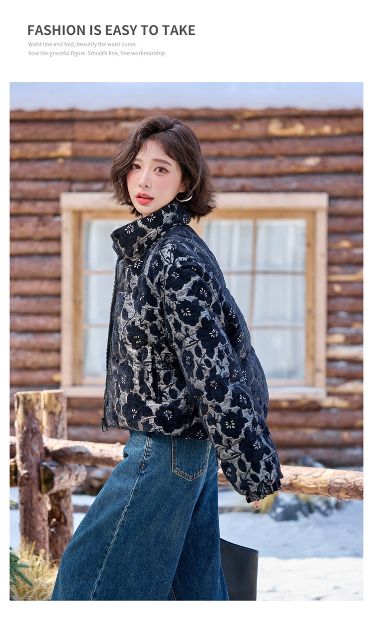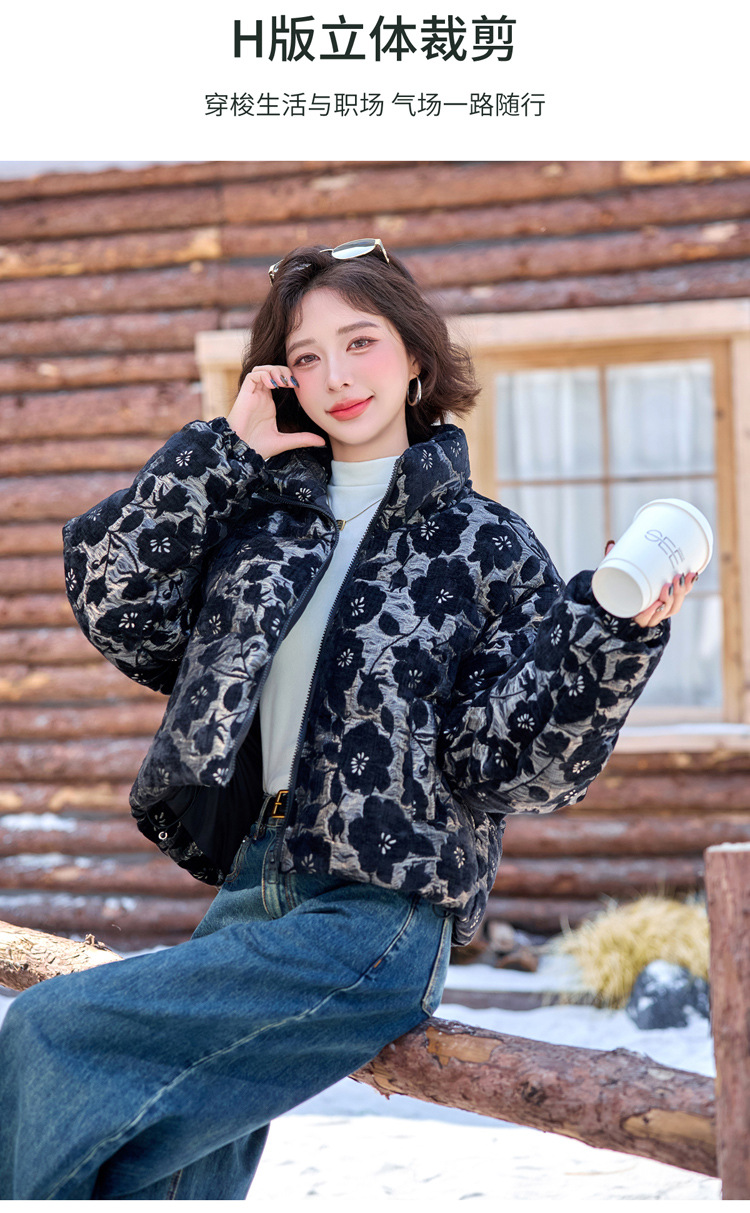 Áo khoác nữ dáng ngắn, thiết kế dành riêng cho các bạn có chiều cao khiêm tốn. Sản phẩm sử dụng lớp lông vũ từ vịt trắng êm ái, giữ ấm tốt cho những ngày đông giá lạnh. Kiểu dáng ôn nhẹ tạo cảm giác thon gọn, phù hợp để mặc hàng ngày. Hoa văn trên áo được dệt nổi một cách tinh tế. Có thể phối cùng quần jeans và áo len để tạo nên vẻ ngoài trẻ trung, năng động. | Tên sản phẩm: Áo Khoác Nữ Họa Tiết Hoa Dày Ấm Hàng Mùa Xuân Thu Đông - Thời Trang Nữ | Mã sản phẩm: B9296 - Giá: 3.350.000đ | Mã nhà sản xuất: HADG-G06Hình ảnh sản phẩm