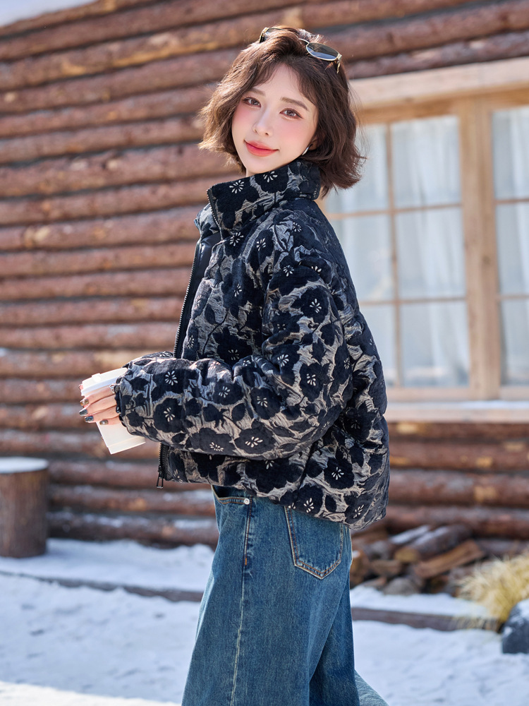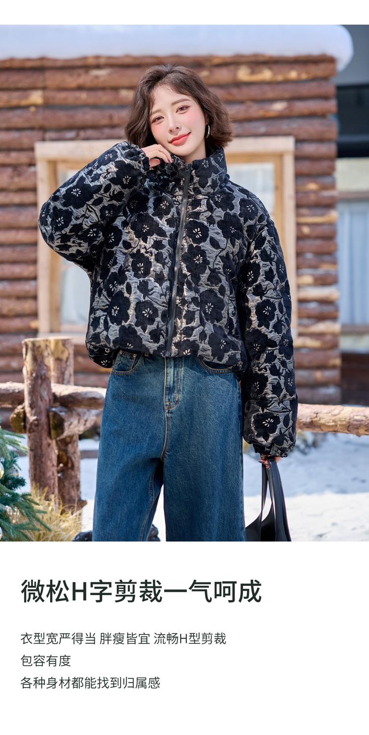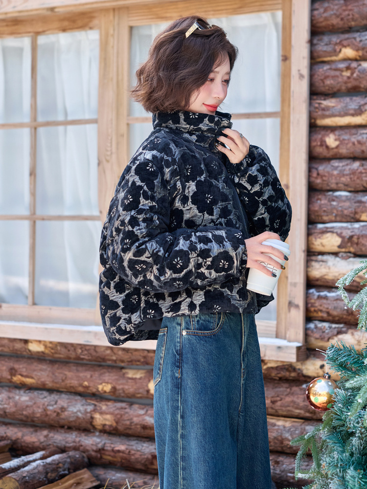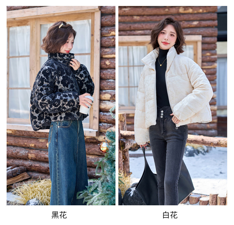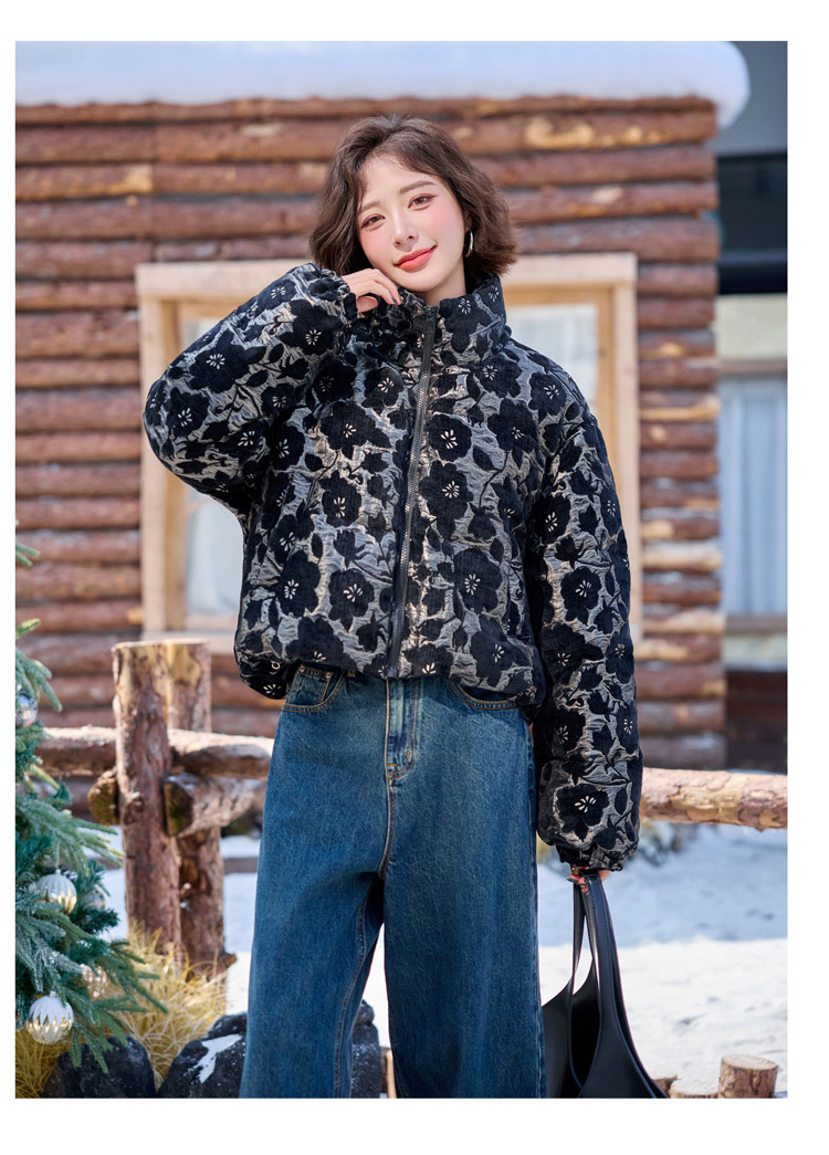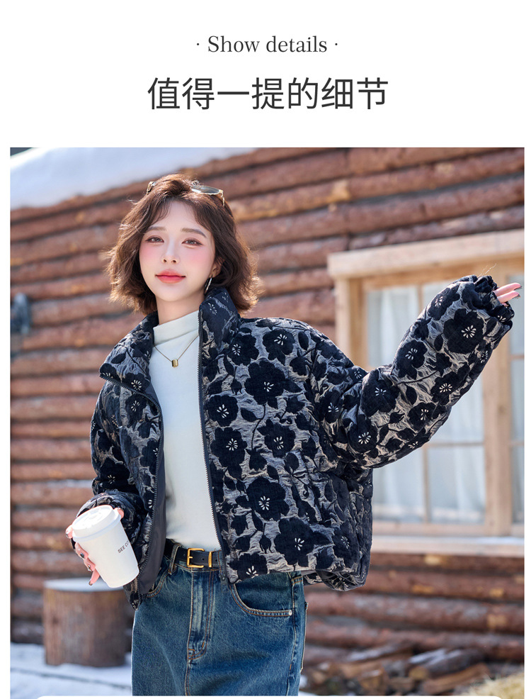 Áo khoác nữ dáng ngắn, thiết kế dành riêng cho các bạn có chiều cao khiêm tốn. Sản phẩm sử dụng lớp lông vũ từ vịt trắng êm ái, giữ ấm tốt cho những ngày đông giá lạnh. Kiểu dáng ôn nhẹ tạo cảm giác thon gọn, phù hợp để mặc hàng ngày. Hoa văn trên áo được dệt nổi một cách tinh tế. Có thể phối cùng quần jeans và áo len để tạo nên vẻ ngoài trẻ trung, năng động. | Tên sản phẩm: Áo Khoác Nữ Họa Tiết Hoa Dày Ấm Hàng Mùa Xuân Thu Đông - Thời Trang Nữ | Mã sản phẩm: B9296 - Giá: 3.350.000đ | Mã nhà sản xuất: HADG-G06Hình ảnh sản phẩm