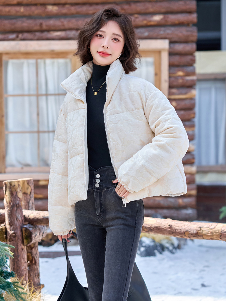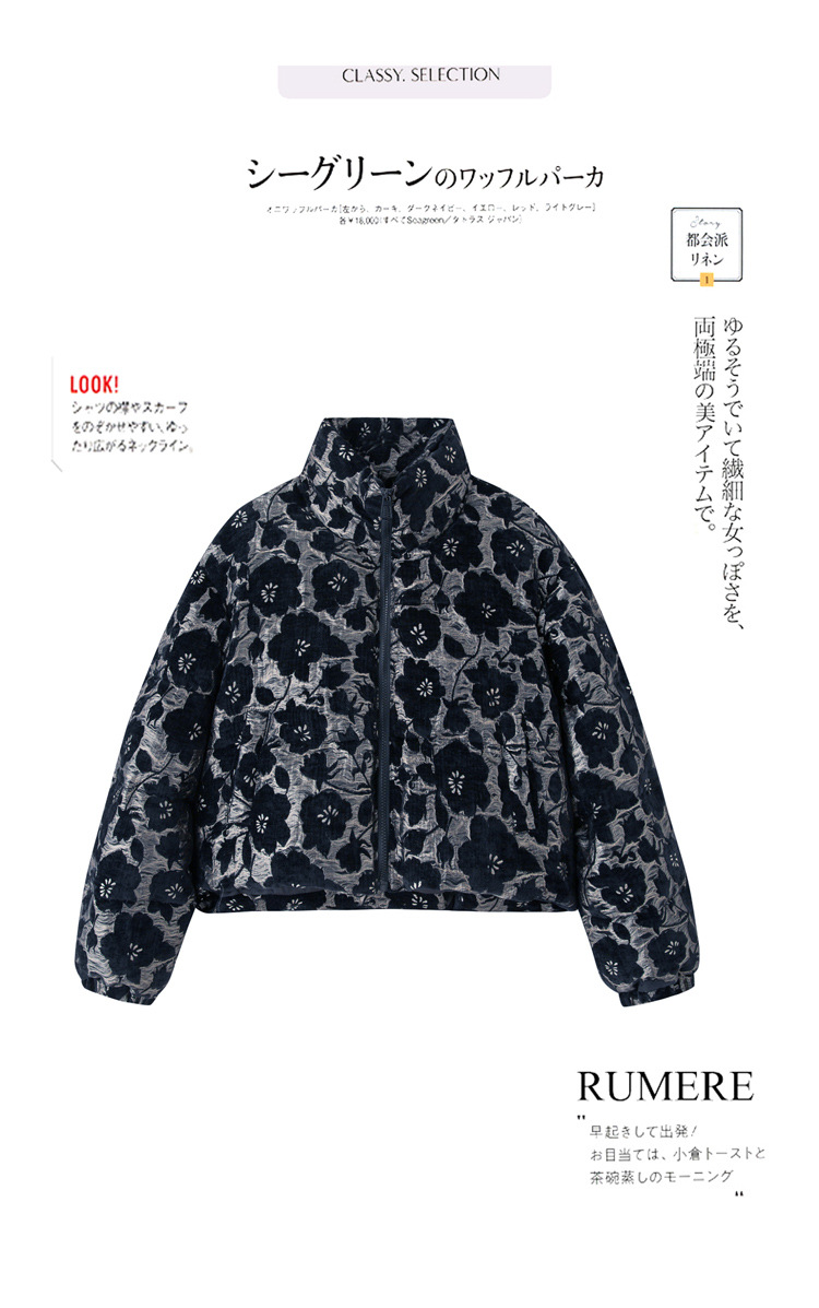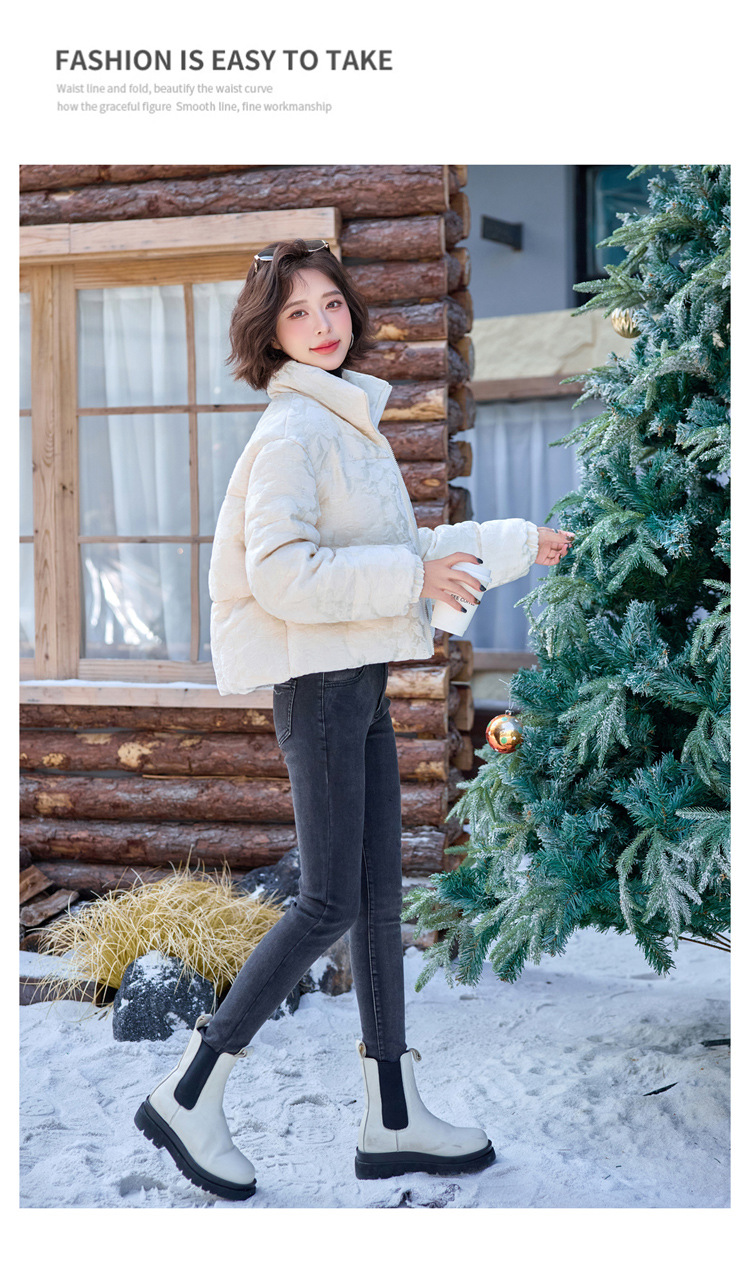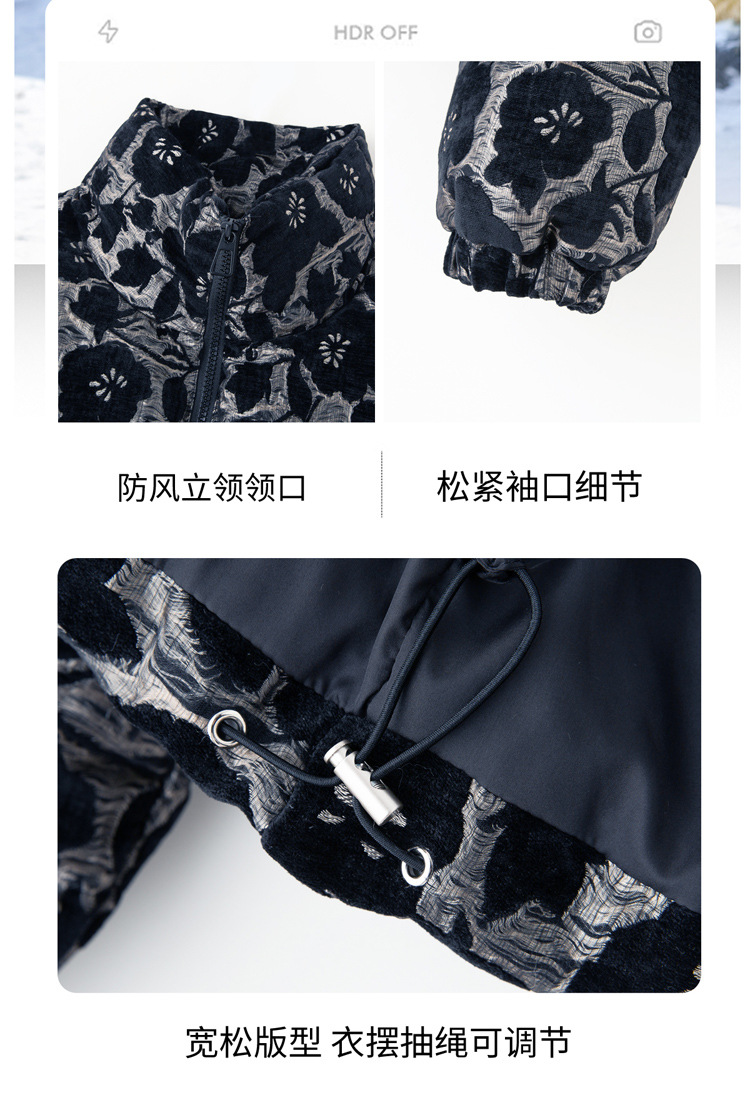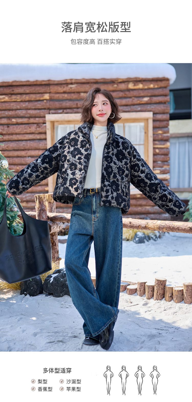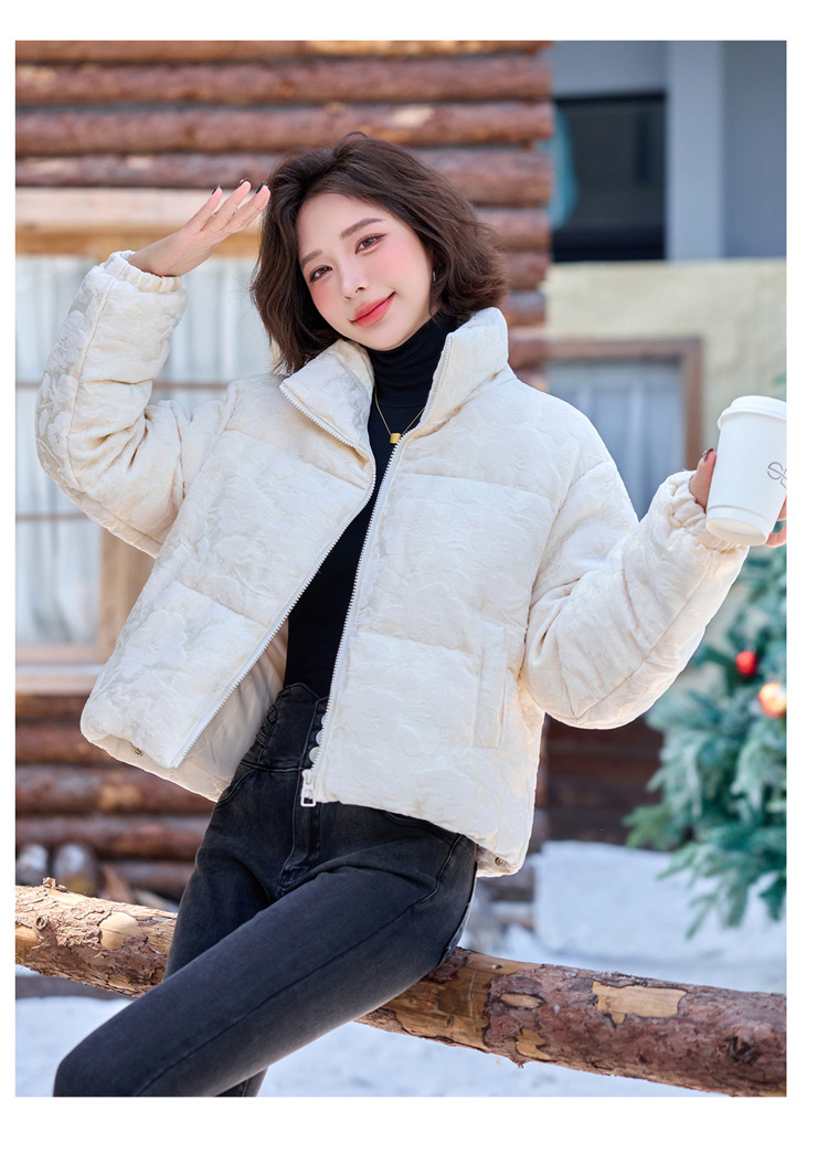 Áo khoác nữ dáng ngắn, thiết kế dành riêng cho các bạn có chiều cao khiêm tốn. Sản phẩm sử dụng lớp lông vũ từ vịt trắng êm ái, giữ ấm tốt cho những ngày đông giá lạnh. Kiểu dáng ôn nhẹ tạo cảm giác thon gọn, phù hợp để mặc hàng ngày. Hoa văn trên áo được dệt nổi một cách tinh tế. Có thể phối cùng quần jeans và áo len để tạo nên vẻ ngoài trẻ trung, năng động. | Tên sản phẩm: Áo Khoác Nữ Họa Tiết Hoa Dày Ấm Hàng Mùa Xuân Thu Đông - Thời Trang Nữ | Mã sản phẩm: B9296 - Giá: 3.350.000đ | Mã nhà sản xuất: HADG-G06Hình ảnh sản phẩm