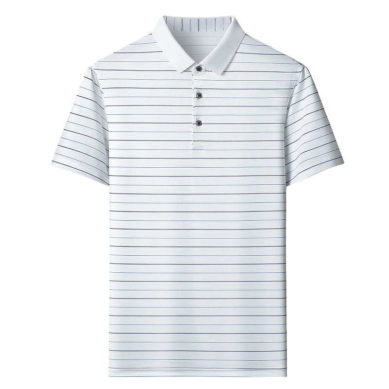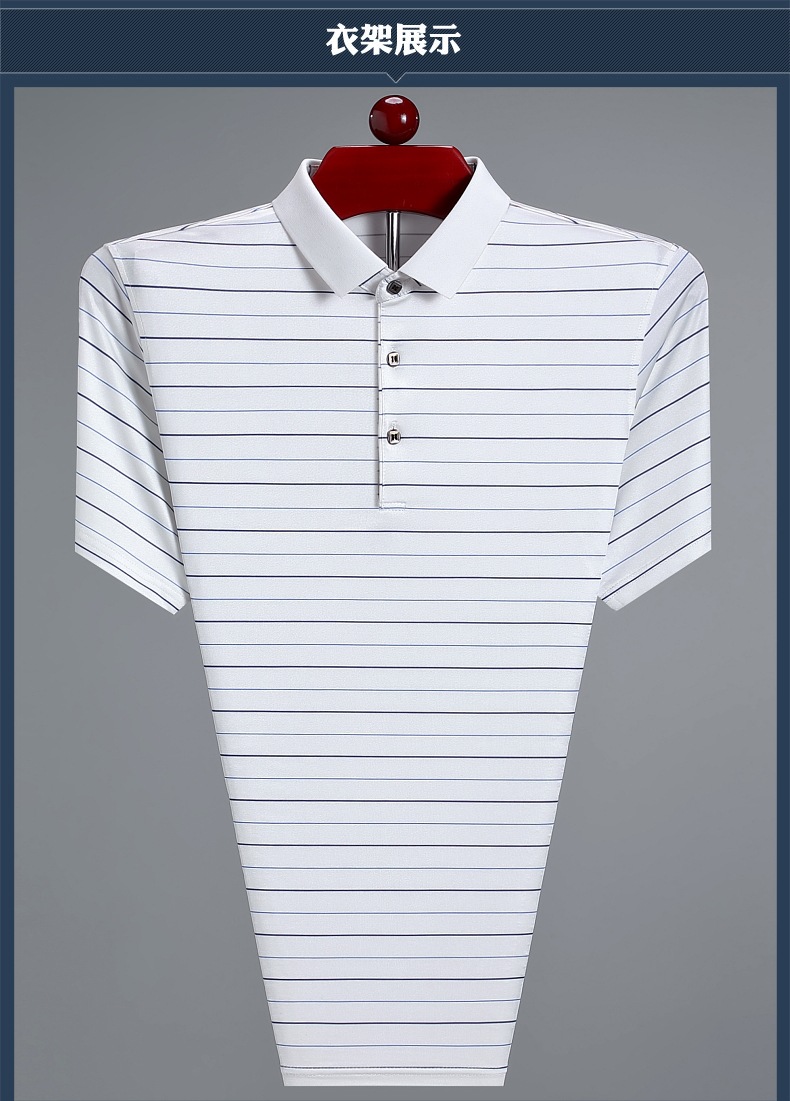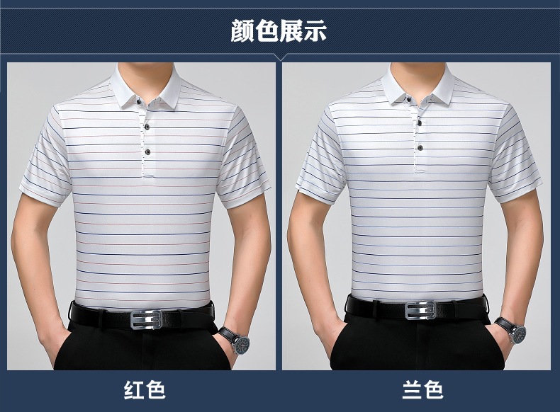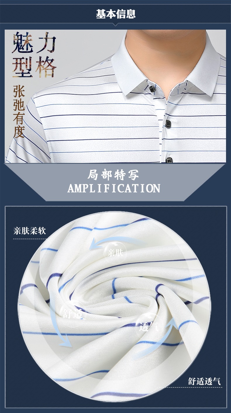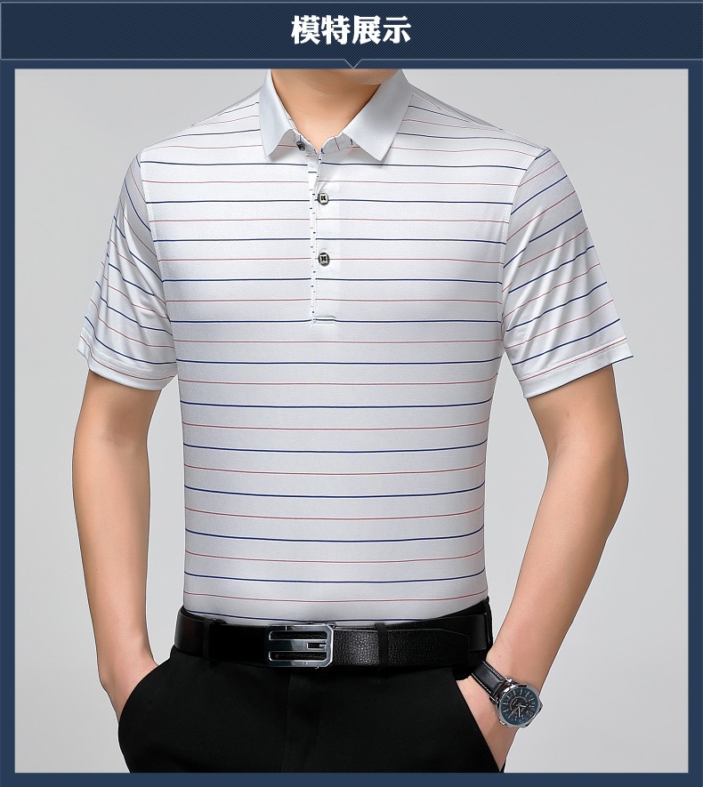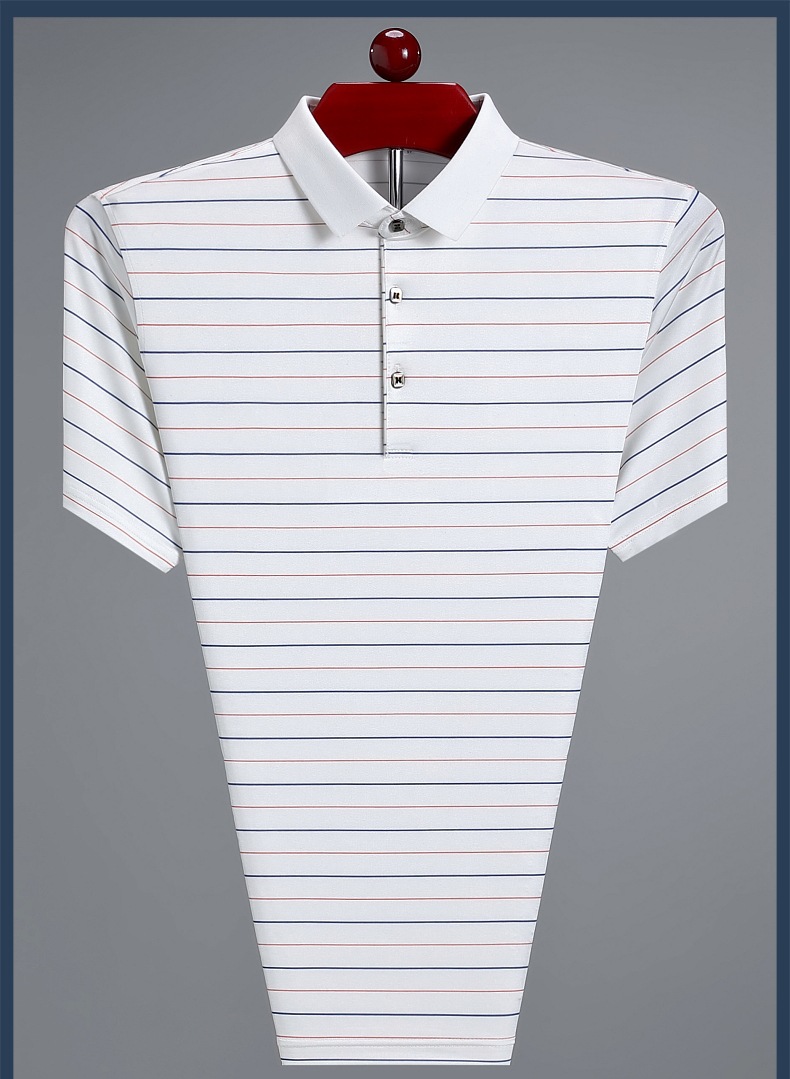 Áo thun cổ bẻ dành cho nam, có họa tiết sọc, phù hợp mặc trong mùa hè. Sản phẩm được dệt từ sợi tơ tằm thiên nhiên, mang lại cảm giác mát mẻ, nhẹ nhàng và thoáng khí khi mặc. Kiểu dáng cổ bẻ và thân áo ôn hòa, phù hợp cho nhiều dịp sinh hoạt thường ngày. Áo ít bị nhăn, giữ nếp tốt, tiết kiệm thời gian là ủi. Có thể giặt máy và phơi khô một cách dễ dàng. | Tên sản phẩm: Áo Thun Nam Chất Liệu Lụa Tơ Tằm Kín Cổ Hàng Mùa Hè Trung Niên - Thời Trang Nam | Mã sản phẩm: B9329 - Giá: 1.810.000đ | Mã nhà sản xuất: SHRYCT-G05Hình ảnh sản phẩm
