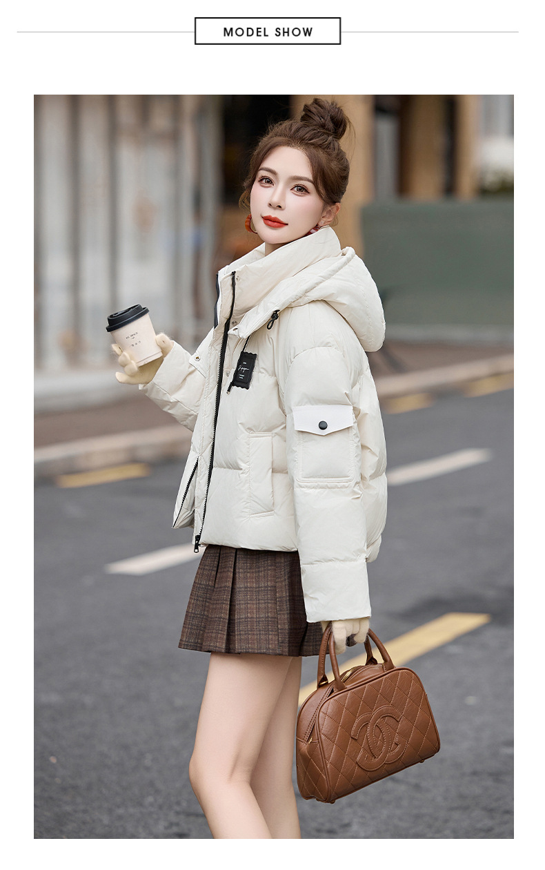 Áo khoác dành cho nữ, thiết kế kiểu ngắn và có mũ trùm, phù hợp cho những người có vóc dáng nhỏ nhắn. Sản phẩm được lót bằng lớp lông vũ tự nhiên, mang lại khả năng giữ ấm hiệu quả trong mùa đông. Kiểu dáng trẻ trung và thời thượng, dễ dàng phối cùng nhiều trang phục khác nhau. Khi sử dụng, chỉ cần mặc trực tiếp như các loại áo khoác thông thường, thuận tiện cho các hoạt động hàng ngày hoặc khi đi ra ngoài. | Tên sản phẩm: Áo Khoác Nữ Mũ Liền Hàng Mùa Xuân Thu Đông - Thời Trang Nữ | Mã sản phẩm: B9352 - Giá: 3.240.000đ | Mã nhà sản xuất: HADG-G06Hình ảnh sản phẩm