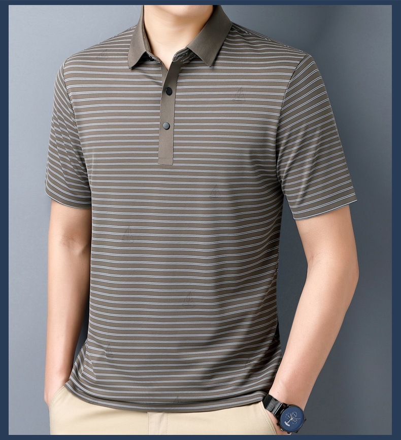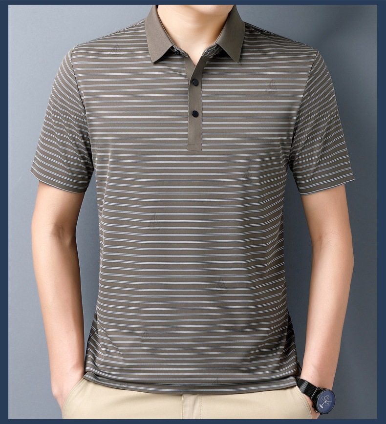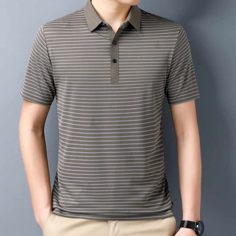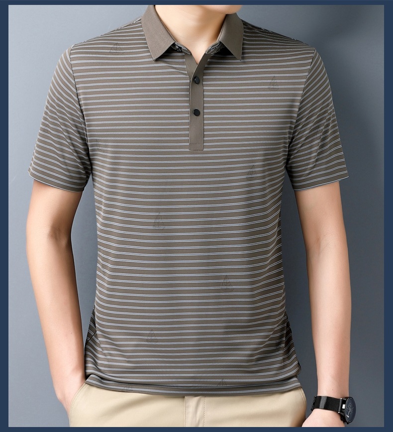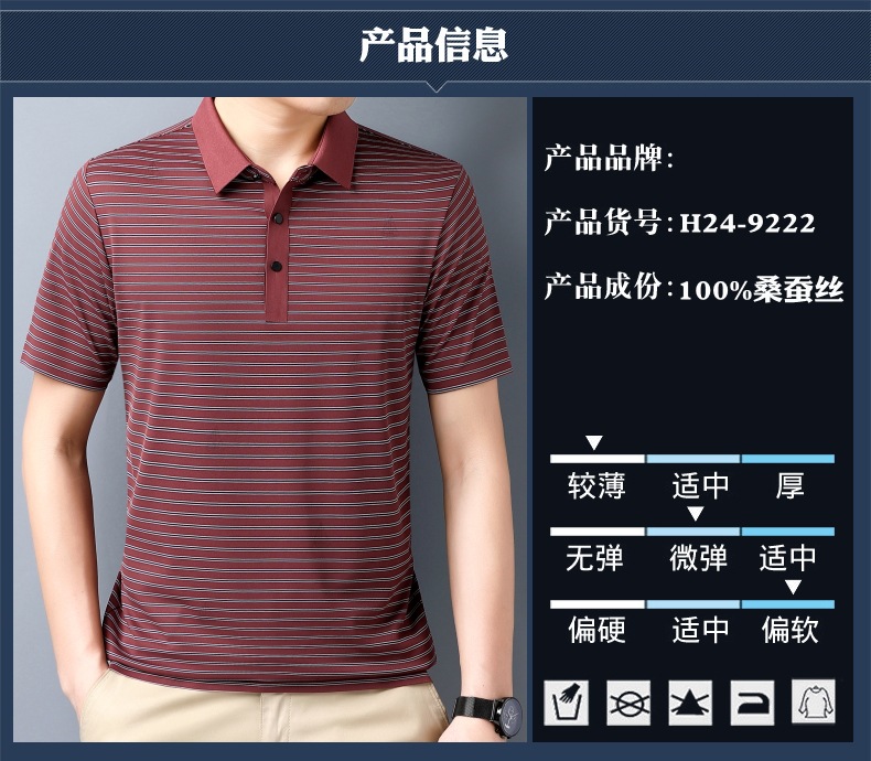 Áo thun cổ bẻ dành cho nam, được dệt hoàn toàn từ sợi tơ tằm tự nhiên. Chất vải mềm mại, thoáng mát và thấm hút mồ hôi tốt, mang lại sự dễ chịu khi mặc vào mùa hè. Kiểu dáng cơ bản, đường may tinh tế tạo cảm giác liền mảnh. Sản phẩm phù hợp cho các dịp sinh hoạt thường ngày, đi làm hay gặp gỡ bạn bè. Giặt nhẹ nhàng bằng nước lạnh và phơi trong bóng râm để giữ form áo lâu bền. | Tên sản phẩm: Áo Thun Nam Chất Liệu Lụa Tơ Tằm Hàng Mùa Hè Trung Niên - Thời Trang Nam | Mã sản phẩm: B9363 - Giá: 2.390.000đ | Mã nhà sản xuất: SHRYCT-G05Hình ảnh sản phẩm