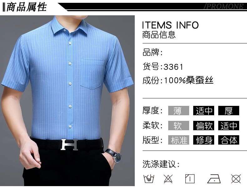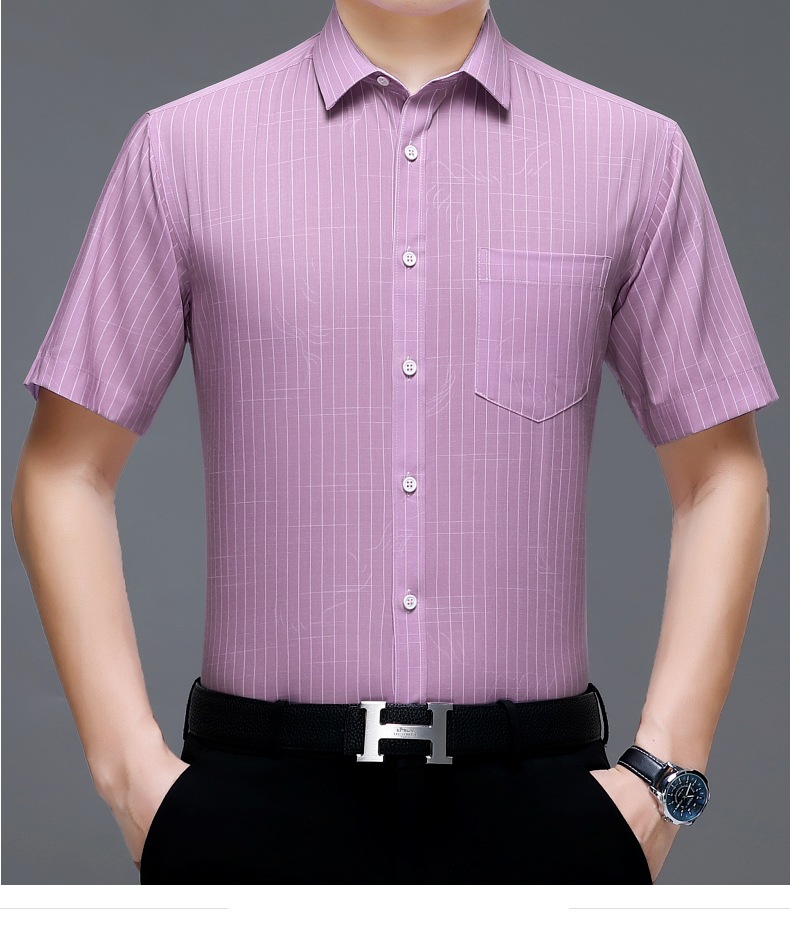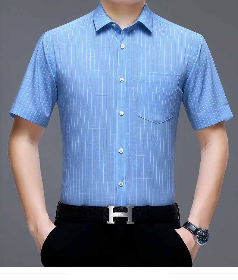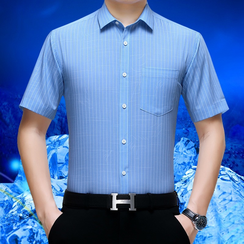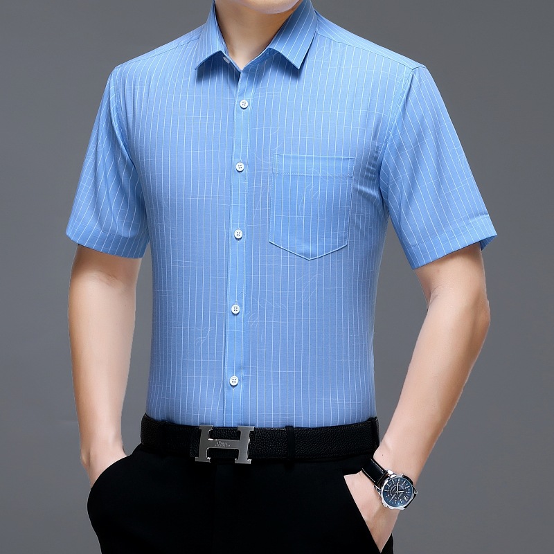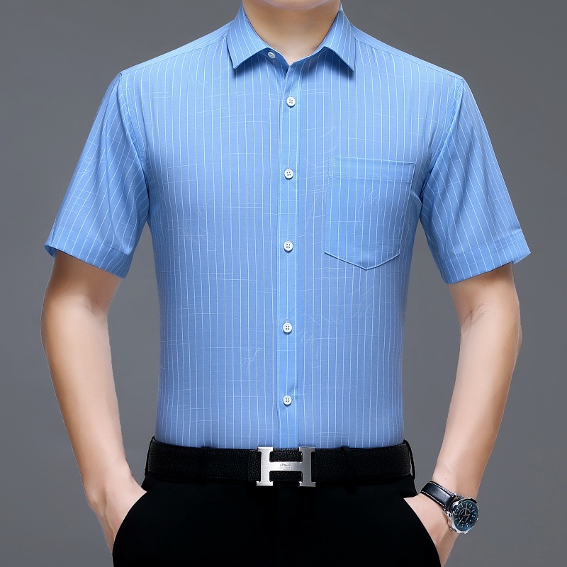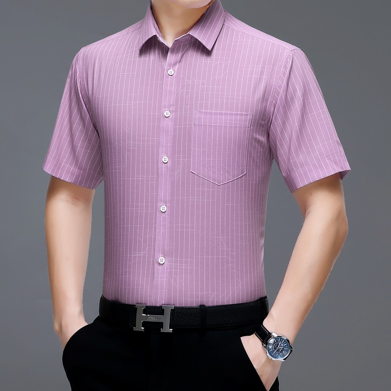 Áo sơ mi nam dành cho mùa hè, được dệt từ sợi tơ tằm tự nhiên, mang đến cảm giác mát mẻ và dễ chịu khi mặc. Điểm nổi bật là khả năng hạn chế nhăn tốt, giữ áo luôn phẳng phiu sau khi giặt, tiết kiệm thời gian ủi. Kiểu dáng thoải mái với túi ngực tiện lợi, phù hợp cho nhiều dịp sinh hoạt hằng ngày. Có thể mặc kết hợp với quần tây hoặc quần âu thông thường. | Tên sản phẩm: Áo Sơ Mi Nam Chất Liệu Lụa Tơ Tằm Hàng Mùa Hè Trung Niên - Thời Trang Nam | Mã sản phẩm: B9392 - Giá: 1.640.000đ | Mã nhà sản xuất: SHRYCT-G05Hình ảnh sản phẩm