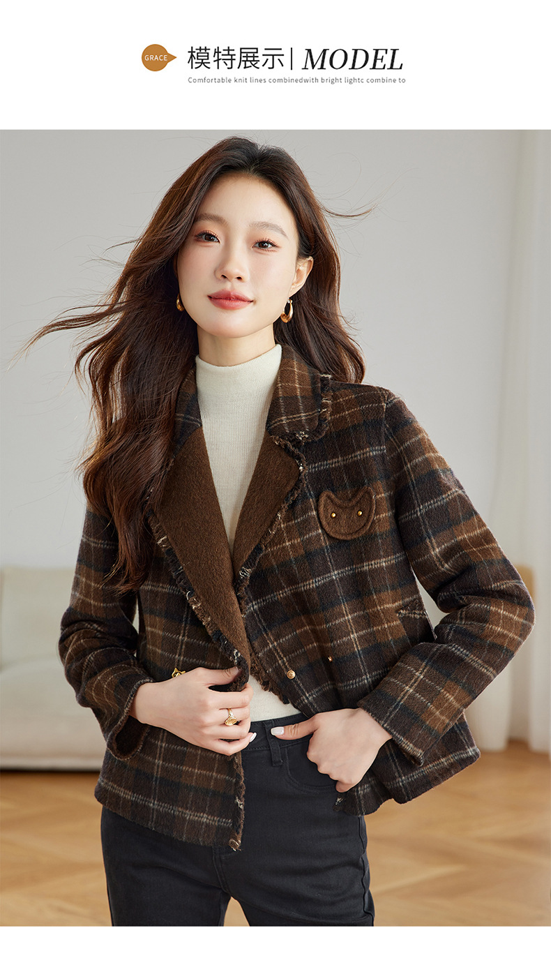 Áo khoác nữ ngắn kiểu dáng ôm với họa tiết kẻ ô vuông, được dệt từ chất liệu len ấm áp, phù hợp cho thời tiết mùa thu. Thiết kế tôn dáng, tạo điểm nhấn thanh lịch và nhẹ nhàng. Có thể kết hợp cùng quần tây hoặc chân váy để tạo nên những bộ trang phục hài hòa. Mặc bên trong áo thun hoặc áo sơ mi đều phù hợp, dễ dàng phối đồ cho nhiều dịp khác nhau. | Tên sản phẩm: Áo Khoác Nữ Dáng Ôm Kẻ Caro Kẻ Caro Hàng Mùa Xuân Thu Đông - Thời Trang Nữ | Mã sản phẩm: B9400 - Giá: 2.410.000đ | Mã nhà sản xuất: HADG-G05Hình ảnh sản phẩm