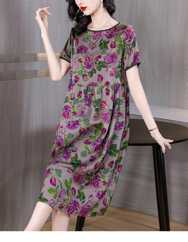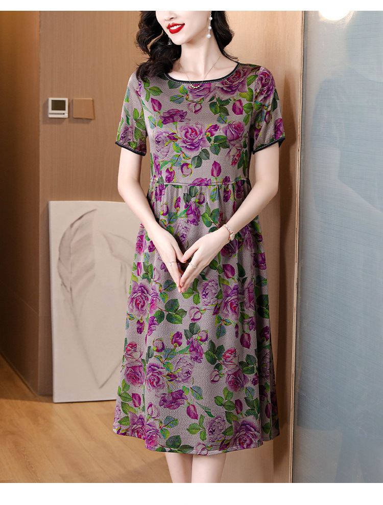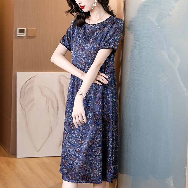 Chiếc váy dành cho phụ nữ trung niên, được dệt từ sợi tơ tằm tự nhiên, mang đến cảm giác mát mẻ và thoải mái khi mặc vào mùa hè. Thiết kế kiểu chữ A với họa tiết in nhẹ nhàng giúp tôn lên dáng người. Sản phẩm phù hợp để mặc trong nhiều dịp khác nhau, từ những buổi gặp mặt thân mật cho đến các sự kiện thường ngày. Bạn chỉ cần giặt nhẹ và phơi khô tự nhiên để giữ chất vải bền đẹp theo thời gian. | Tên sản phẩm: Váy Đầm Liền Thân Nữ Chất Liệu Lụa Tơ Tằm Dáng Chữ A Họa Tiết Hoa Hàng Mùa Hè Trung Niên - Thời Trang Nữ | Mã sản phẩm: B9413 - Giá: 1.810.000đ | Mã nhà sản xuất: SHRYCT-G05Hình ảnh sản phẩm
