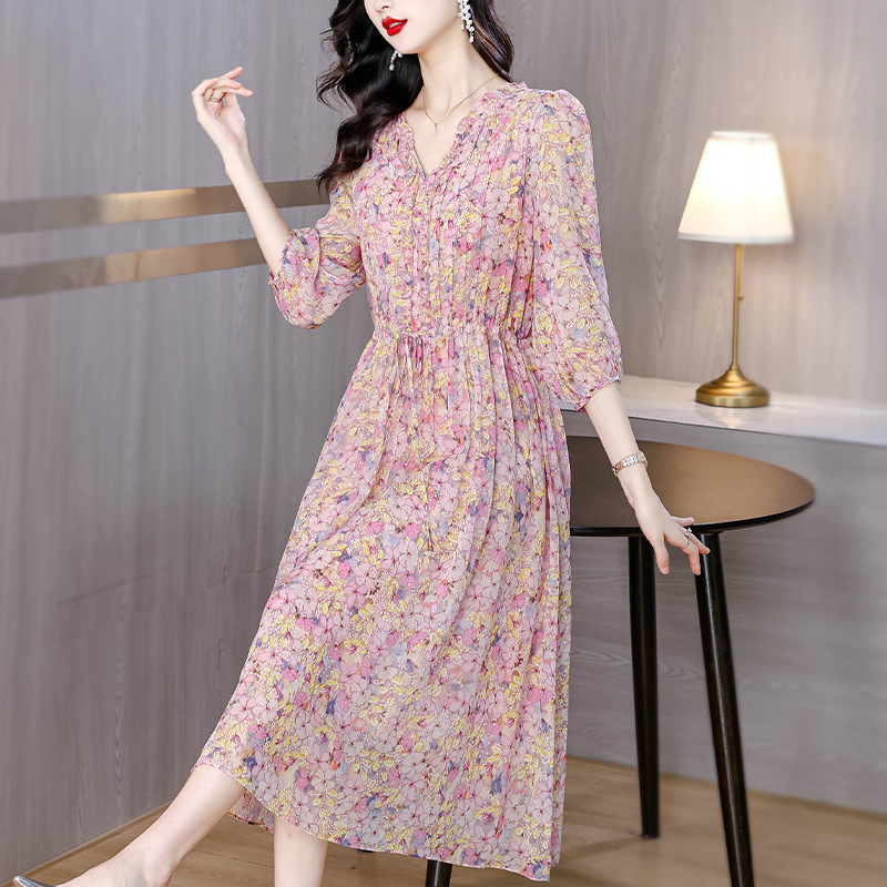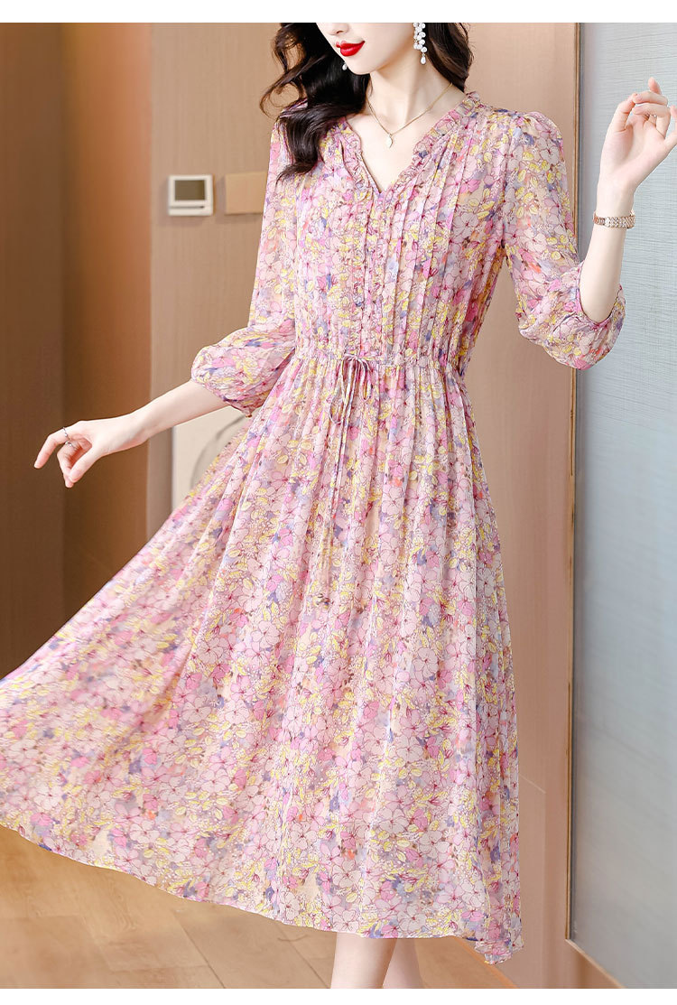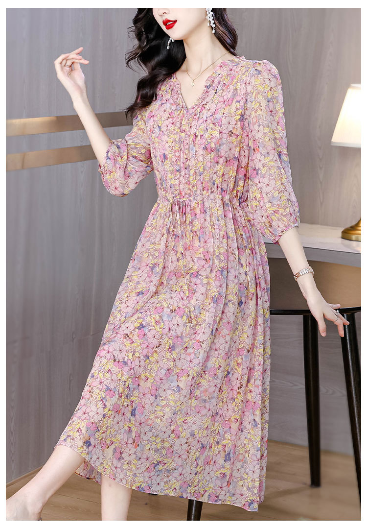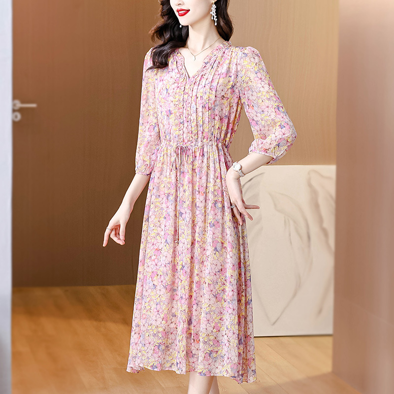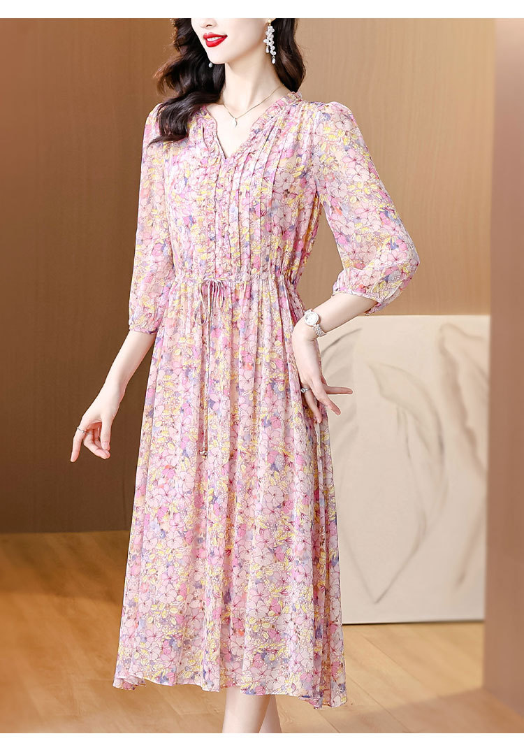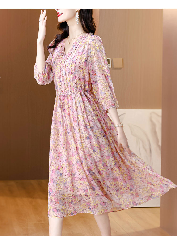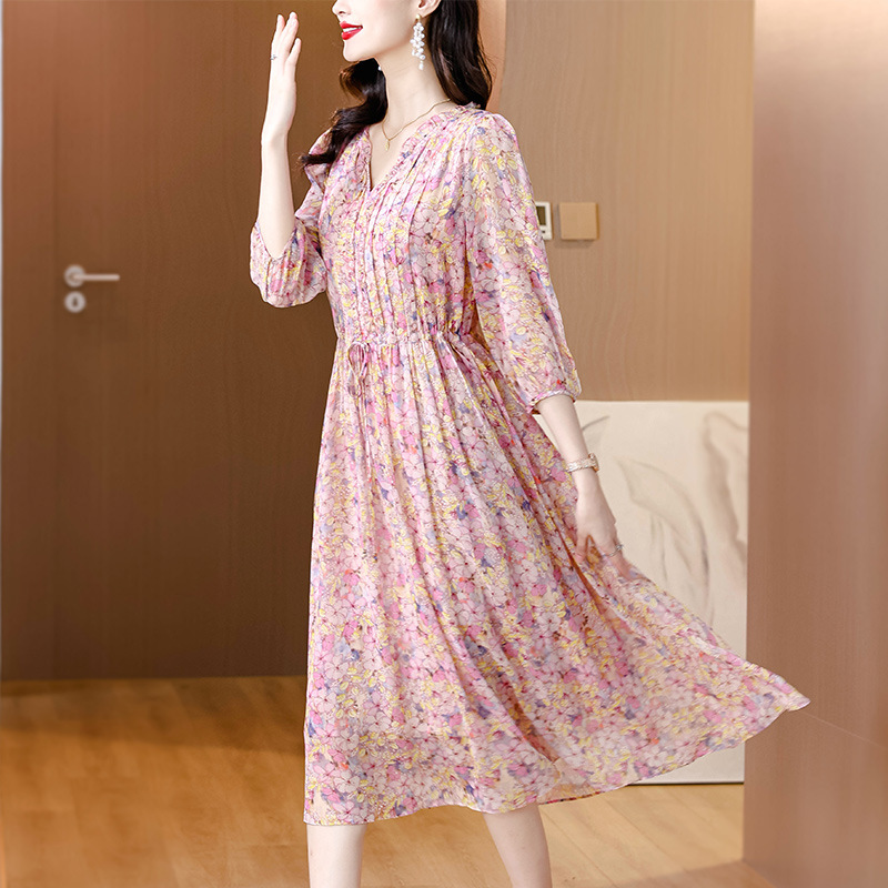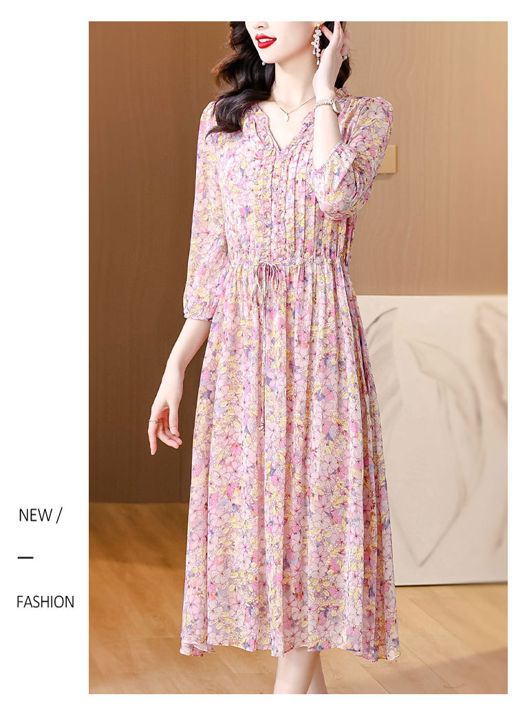 Chiếc váy dành cho phụ nữ trung niên, được làm từ chất liệu tơ tằm tự nhiên, mang đến cảm giác mát mẻ và thoải mái khi mặc vào mùa hè. Thiết kế có dây thắt eo và thân váy ôn hòa, giúp tôn lên dáng người. Hoa văn in trên váy nhẹ nhàng, tạo nên nét đẹp dịu dàng. Sản phẩm phù hợp cho nhiều dịp đi chơi hay các buổi gặp mặt. Có thể giặt bằng tay và phơi trong bóng mát để giữ chất liệu được bền lâu. | Tên sản phẩm: Váy Đầm Liền Thân Nữ Chất Liệu Lụa Tơ Tằm Họa Tiết Hoa Hàng Mùa Hè Trung Niên - Thời Trang Nữ | Mã sản phẩm: B9430 - Giá: 1.900.000đ | Mã nhà sản xuất: SHRYCT-G05Hình ảnh sản phẩm