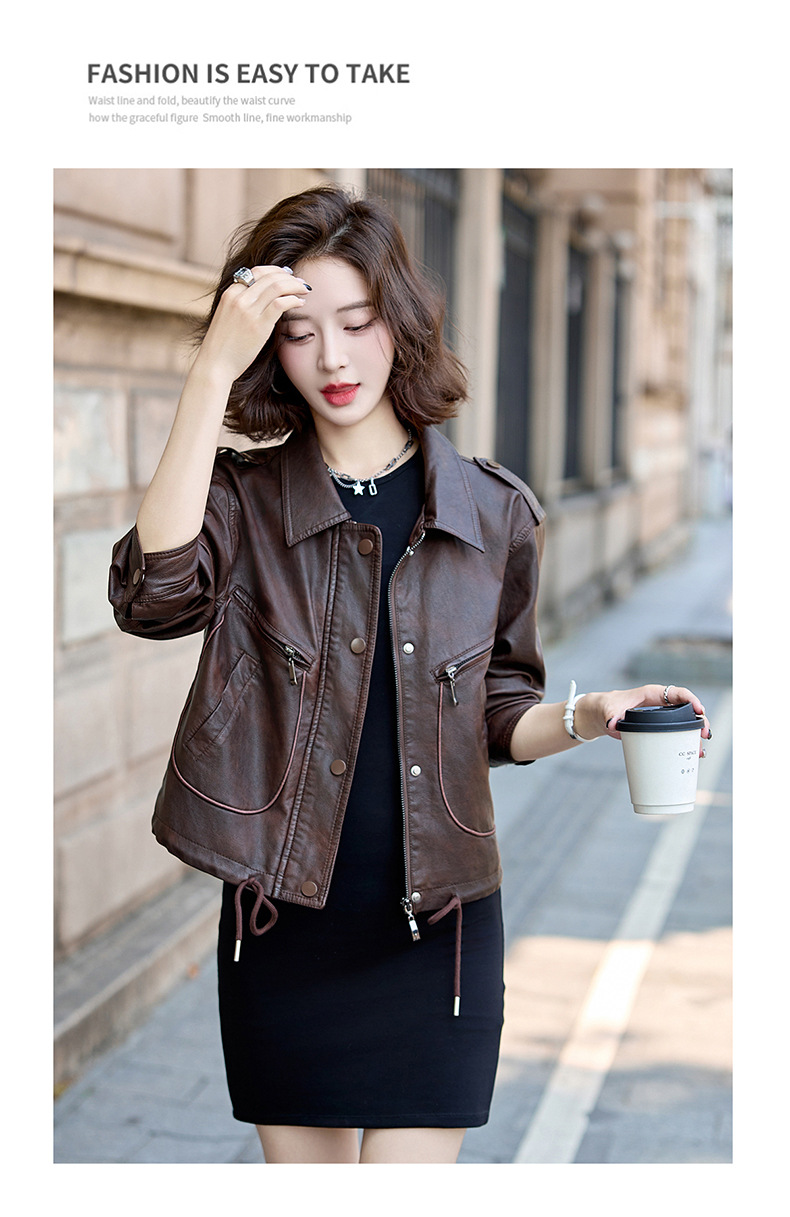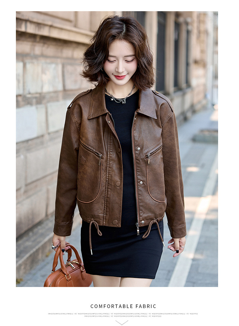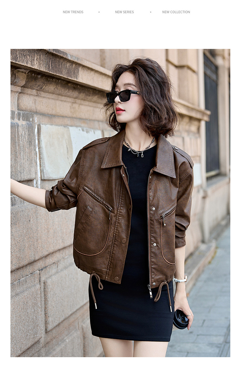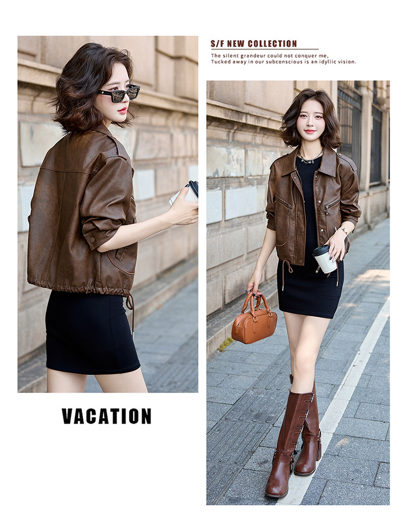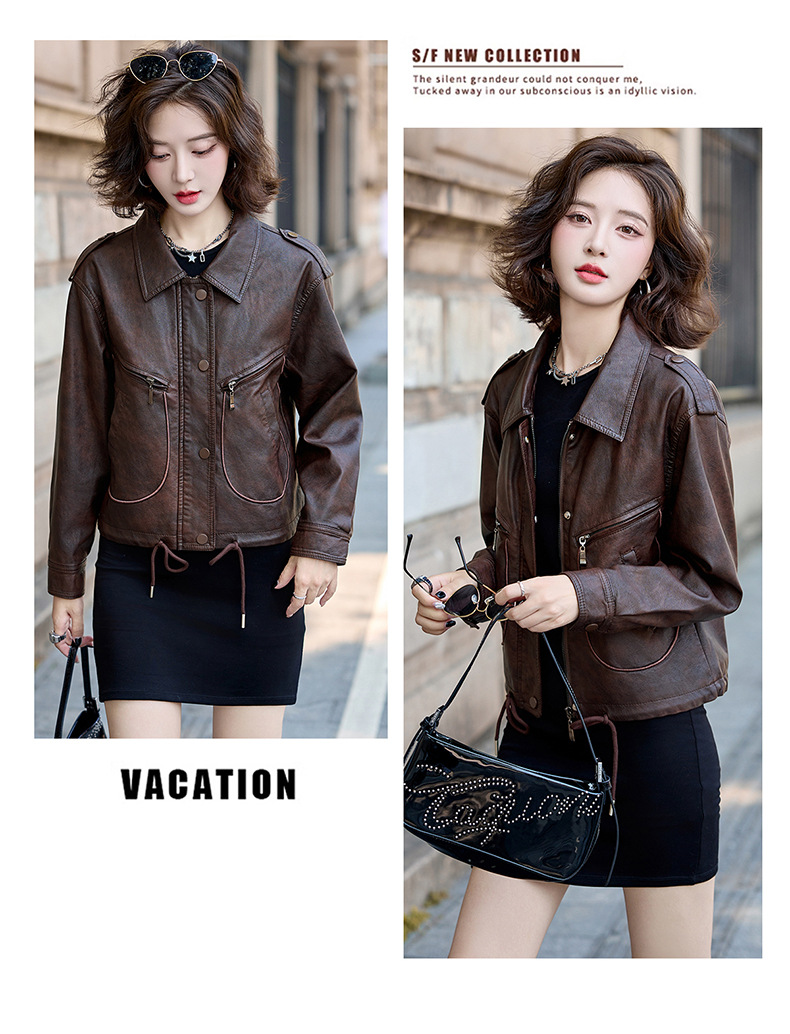 Áo khoác kiểu mẫu mới cho nữ, lấy cảm hứng từ phong cách cổ điển. Chất liệu bền đẹp, kiểu dáng ôm vừa vặn tôn dáng. Thiết kế cổ bẻ và phối khóa kéo mang đến vẻ ngoài cá tính, mạnh mẽ. Sản phẩm dễ dàng phối cùng nhiều trang phục như quần jeans hay váy để tạo nên những bộ trang phục hàng ngày. Mặc kèm áo thun bên trong để có phong cách thoải mái, hoặc kết hợp với đầm để tạo điểm nhấn ấn tượng. | Tên sản phẩm: Áo Da Nữ Hàng Mùa Xuân Thu Đông Phục Cổ Cổ Điển - Thời Trang Nữ | Mã sản phẩm: B9431 - Giá: 1.410.000đ | Mã nhà sản xuất: HADG-G04Hình ảnh sản phẩm