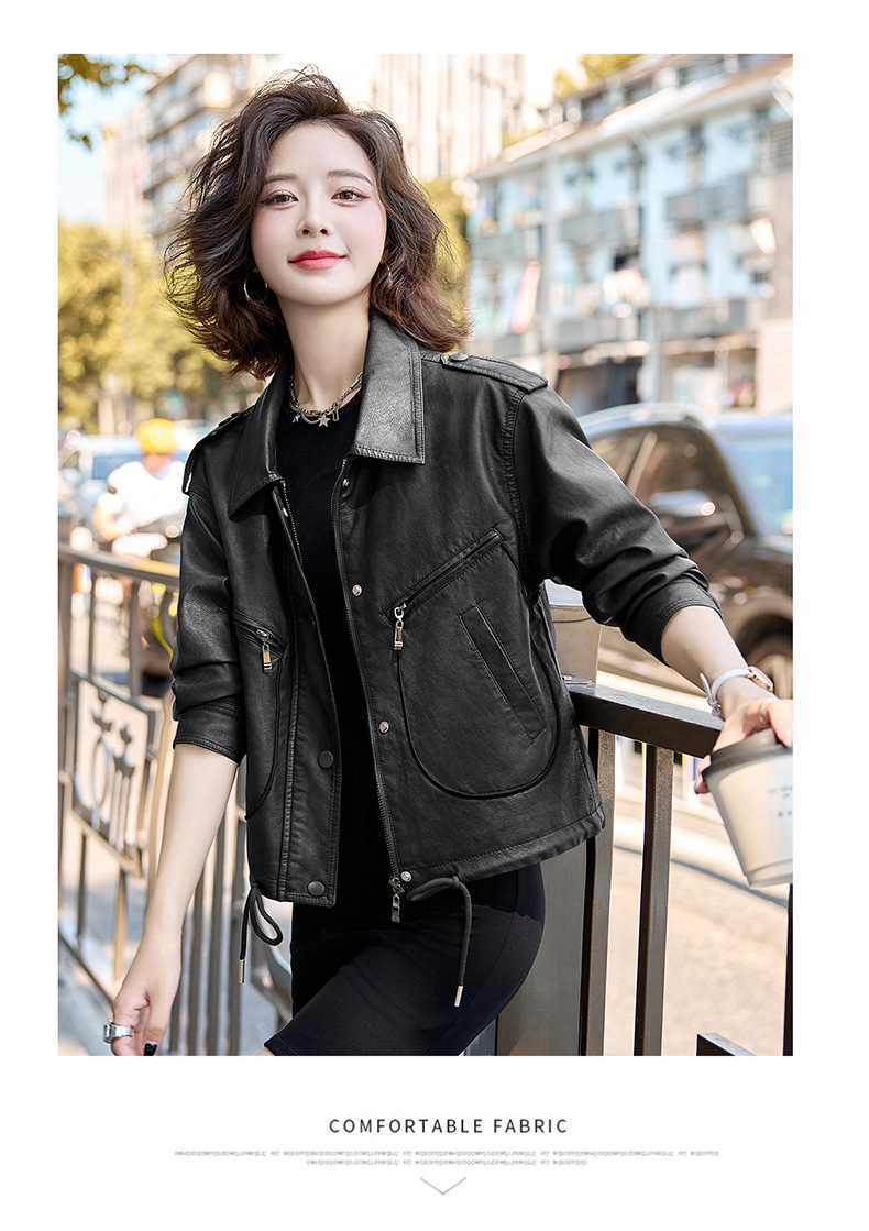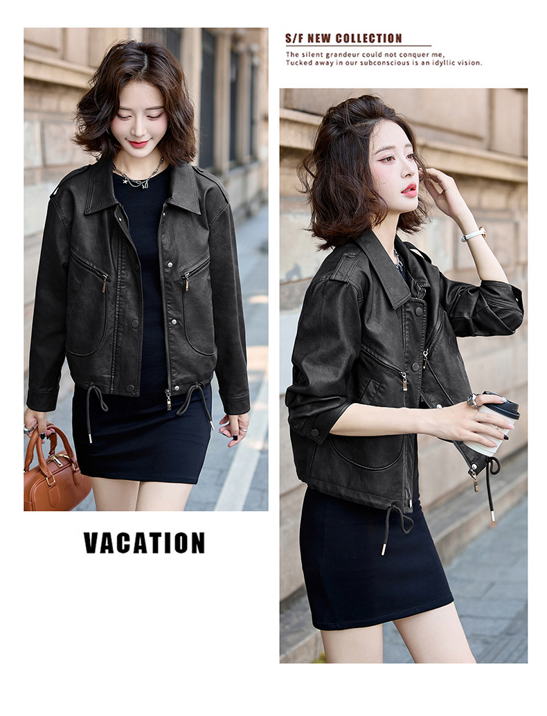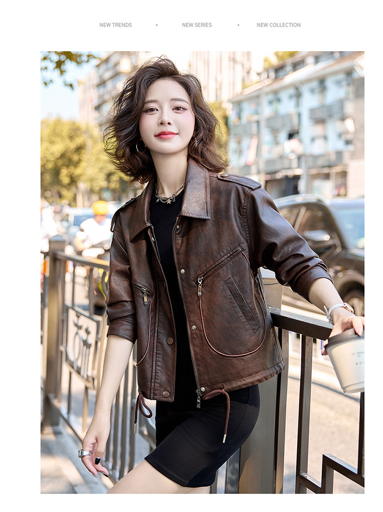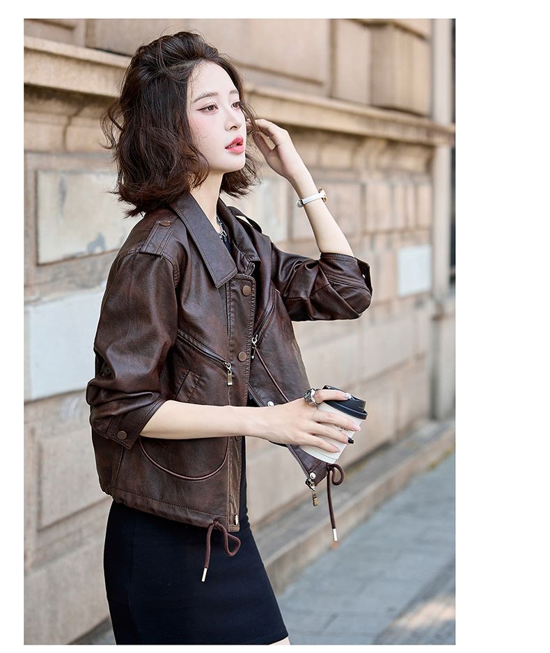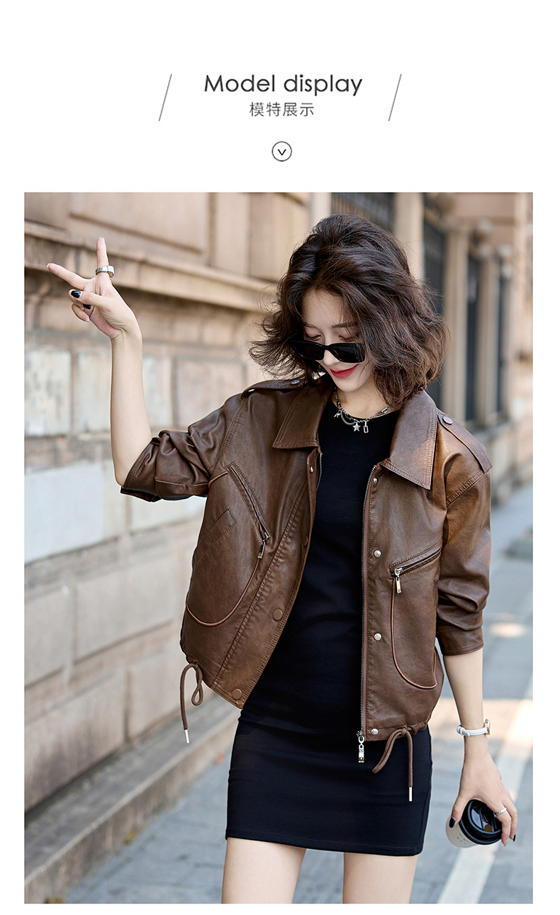 Áo khoác kiểu mẫu mới cho nữ, lấy cảm hứng từ phong cách cổ điển. Chất liệu bền đẹp, kiểu dáng ôm vừa vặn tôn dáng. Thiết kế cổ bẻ và phối khóa kéo mang đến vẻ ngoài cá tính, mạnh mẽ. Sản phẩm dễ dàng phối cùng nhiều trang phục như quần jeans hay váy để tạo nên những bộ trang phục hàng ngày. Mặc kèm áo thun bên trong để có phong cách thoải mái, hoặc kết hợp với đầm để tạo điểm nhấn ấn tượng. | Tên sản phẩm: Áo Da Nữ Hàng Mùa Xuân Thu Đông Phục Cổ Cổ Điển - Thời Trang Nữ | Mã sản phẩm: B9431 - Giá: 1.410.000đ | Mã nhà sản xuất: HADG-G04Hình ảnh sản phẩm