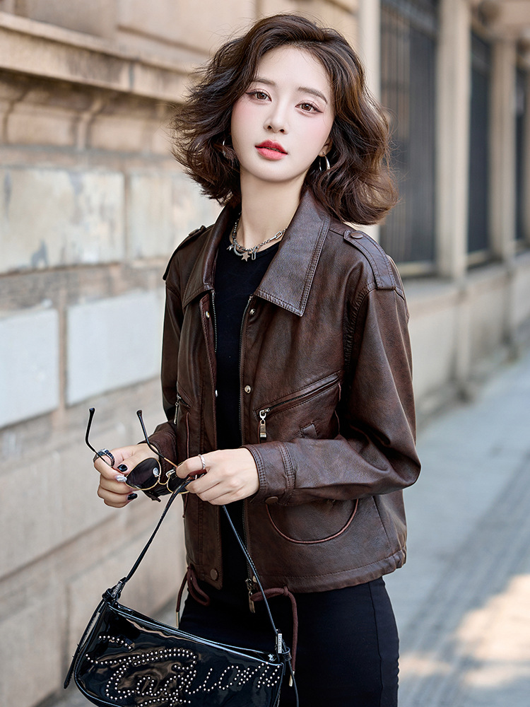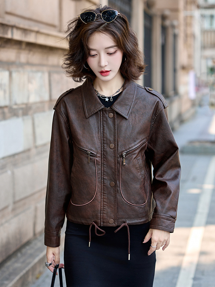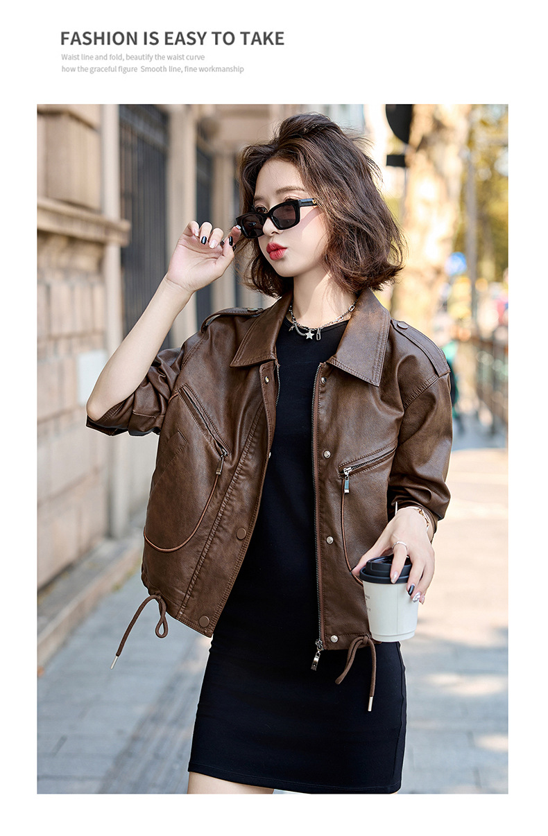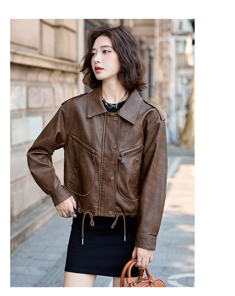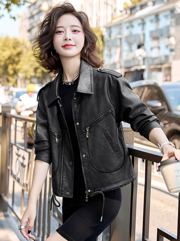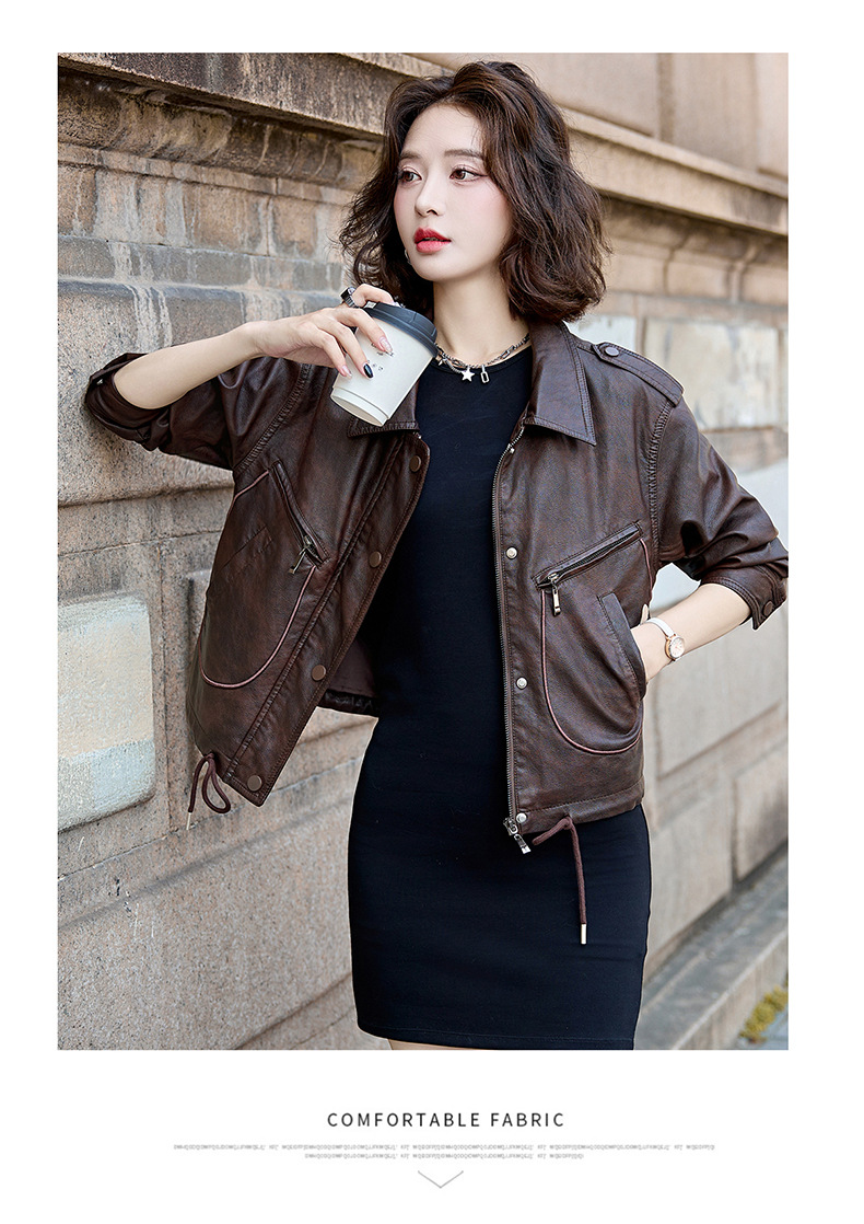 Áo khoác kiểu mẫu mới cho nữ, lấy cảm hứng từ phong cách cổ điển. Chất liệu bền đẹp, kiểu dáng ôm vừa vặn tôn dáng. Thiết kế cổ bẻ và phối khóa kéo mang đến vẻ ngoài cá tính, mạnh mẽ. Sản phẩm dễ dàng phối cùng nhiều trang phục như quần jeans hay váy để tạo nên những bộ trang phục hàng ngày. Mặc kèm áo thun bên trong để có phong cách thoải mái, hoặc kết hợp với đầm để tạo điểm nhấn ấn tượng. | Tên sản phẩm: Áo Da Nữ Hàng Mùa Xuân Thu Đông Phục Cổ Cổ Điển - Thời Trang Nữ | Mã sản phẩm: B9431 - Giá: 1.410.000đ | Mã nhà sản xuất: HADG-G04Hình ảnh sản phẩm