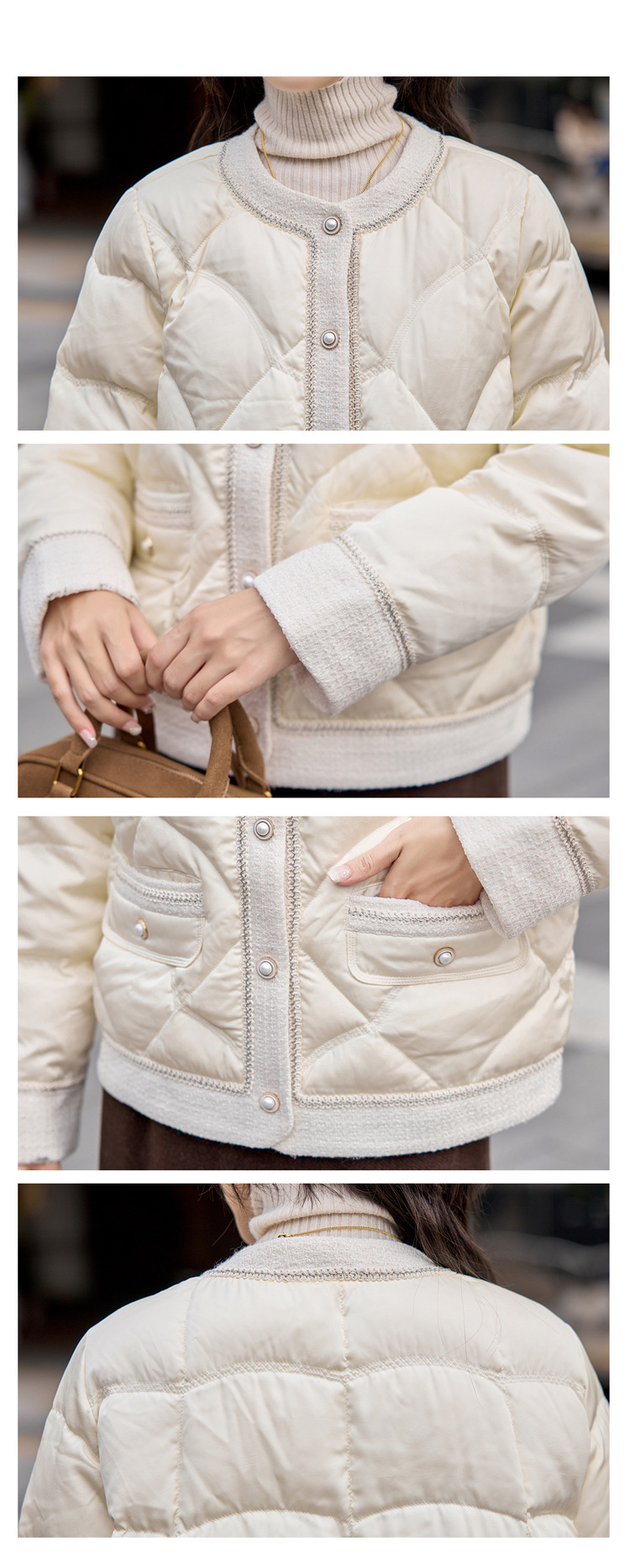 Áo khoác nữ dáng ngắn, kiểu dáng thời trang với họa tiết ô vuông đặc trưng. Sản phẩm được lót bằng lớp lông vũ mỏng nhẹ nhưng ấm áp, phù hợp cho những ngày se lạnh. Cổ áo thiết kế tròn, tạo vẻ thanh lịch và dễ dàng phối cùng nhiều loại trang phục bên trong. Bạn có thể mặc trực tiếp, kết hợp với quần jeans hoặc chân váy để tạo nên những bộ trang phục đẹp mắt hàng ngày. | Tên sản phẩm: Áo Khoác Nữ Kẻ Caro Kẻ Caro Hàng Mùa Xuân Thu Đông - Thời Trang Nữ | Mã sản phẩm: B9446 - Giá: 3.010.000đ | Mã nhà sản xuất: HADG-G06Hình ảnh sản phẩm