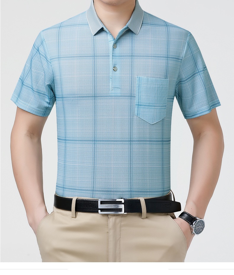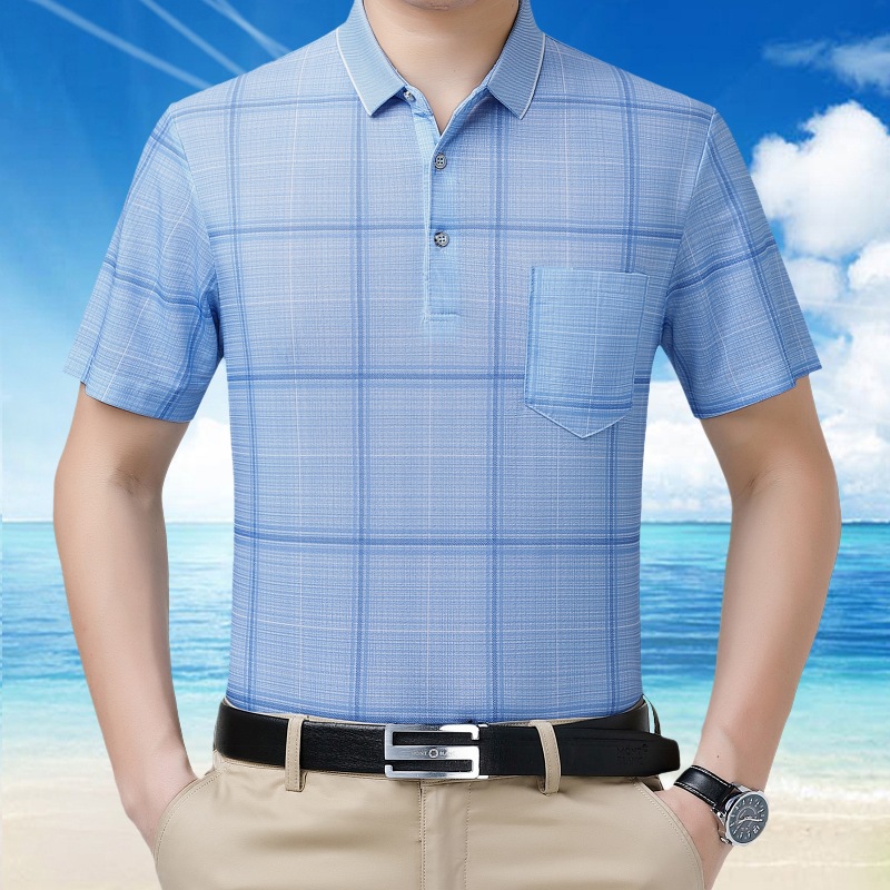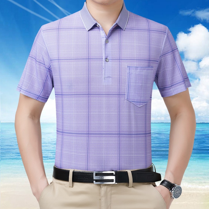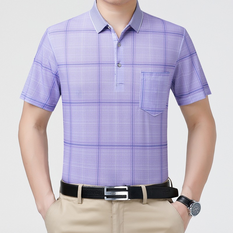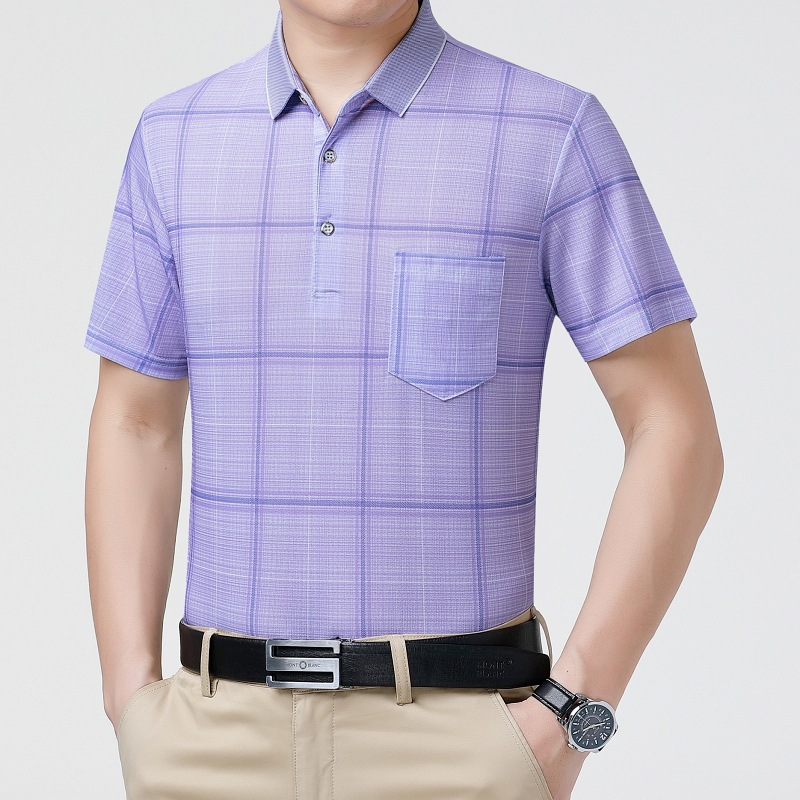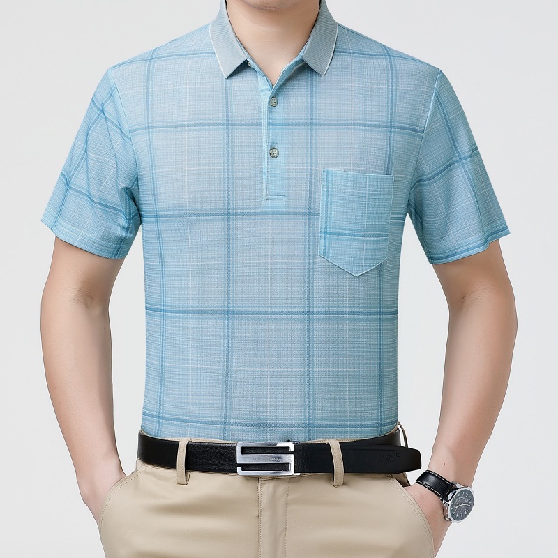 Áo thun nam dành cho mùa hè, có cổ bẻ và họa tiết kẻ ô trên chất vải tơ tằm mát mẻ. Sản phẩm này có kiểu dáng lịch sự, phù hợp cho những dịp mặc thường ngày. Đặc biệt, vải ít nhăn nên rất tiện lợi, giúp bạn giữ phom áo gọn gàng mà không cần ủi nhiều. Mặc thoải mái, dễ dàng phối cùng nhiều loại quần khác nhau. | Tên sản phẩm: Áo Thun Nam Chất Liệu Lụa Tơ Tằm Kẻ Caro Kẻ Caro Kín Cổ Hàng Mùa Hè Trung Niên - Thời Trang Nam | Mã sản phẩm: B9476 - Giá: 1.710.000đ | Mã nhà sản xuất: SHRYCT-G05Hình ảnh sản phẩm