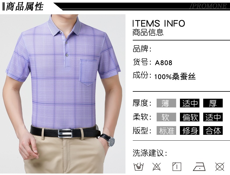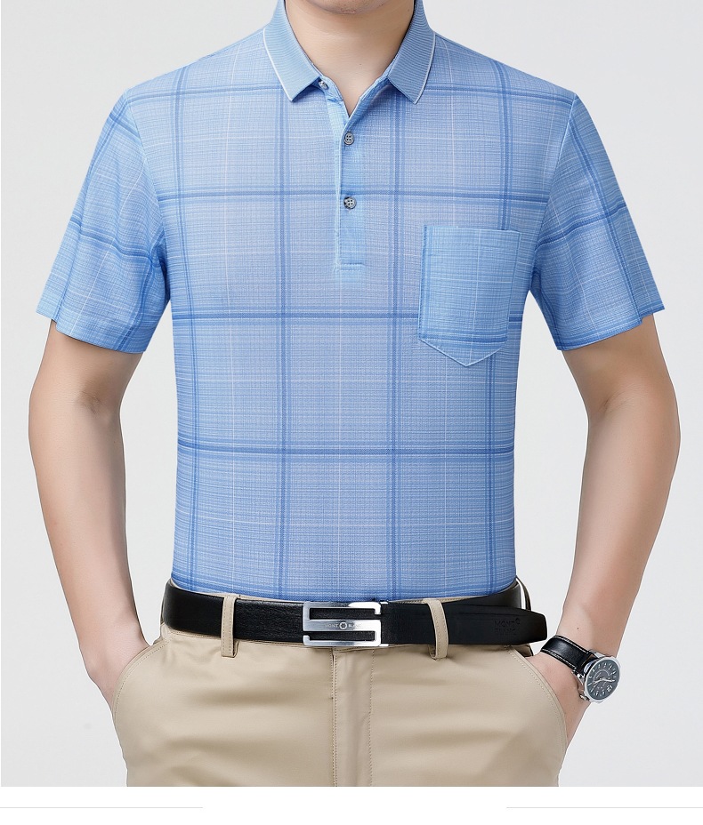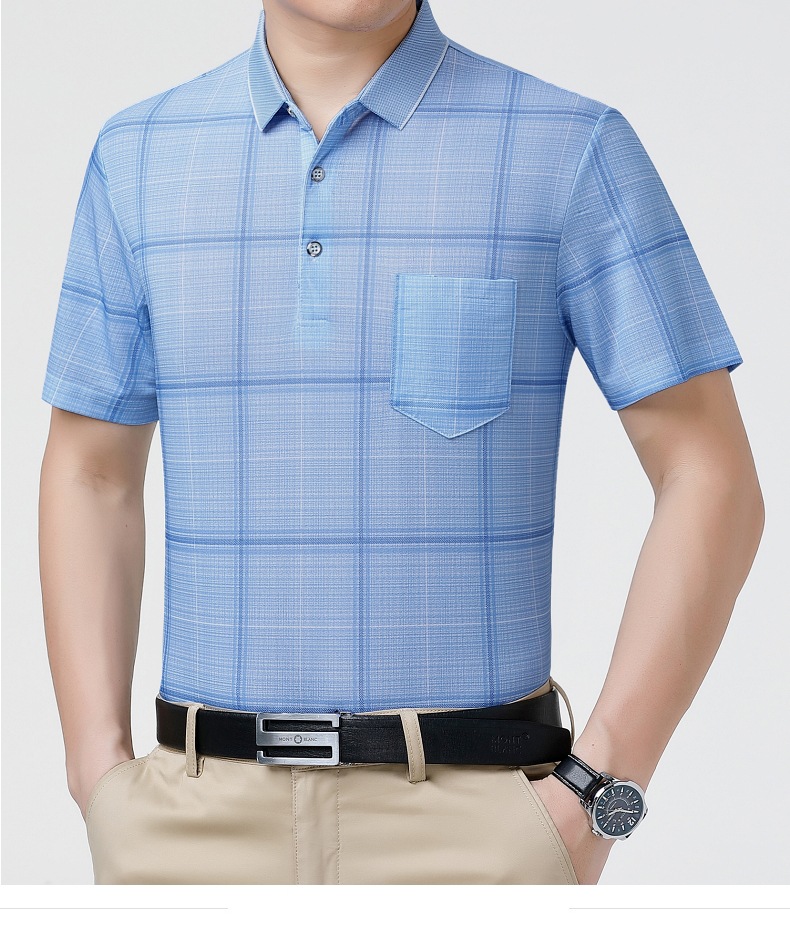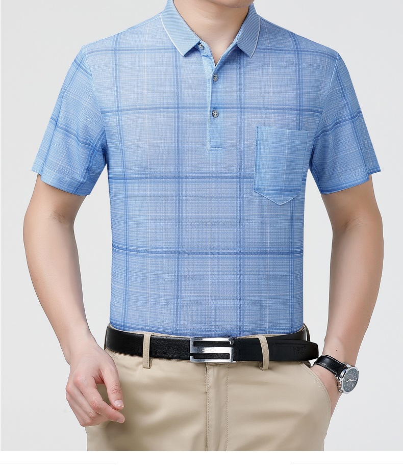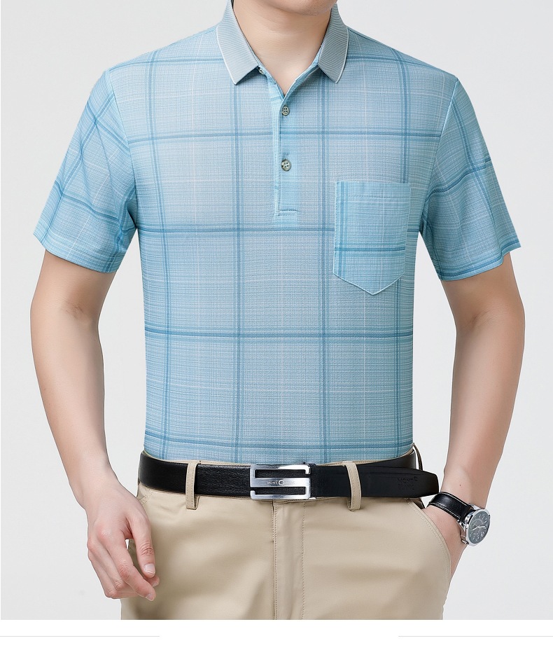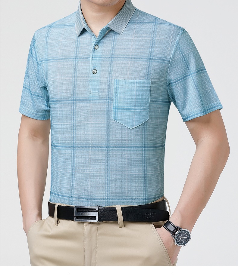 Áo thun nam dành cho mùa hè, có cổ bẻ và họa tiết kẻ ô trên chất vải tơ tằm mát mẻ. Sản phẩm này có kiểu dáng lịch sự, phù hợp cho những dịp mặc thường ngày. Đặc biệt, vải ít nhăn nên rất tiện lợi, giúp bạn giữ phom áo gọn gàng mà không cần ủi nhiều. Mặc thoải mái, dễ dàng phối cùng nhiều loại quần khác nhau. | Tên sản phẩm: Áo Thun Nam Chất Liệu Lụa Tơ Tằm Kẻ Caro Kẻ Caro Kín Cổ Hàng Mùa Hè Trung Niên - Thời Trang Nam | Mã sản phẩm: B9476 - Giá: 1.710.000đ | Mã nhà sản xuất: SHRYCT-G05Hình ảnh sản phẩm