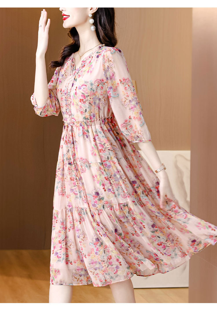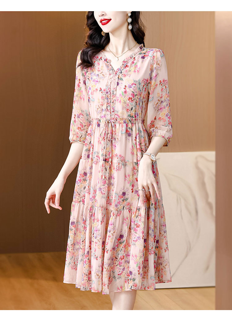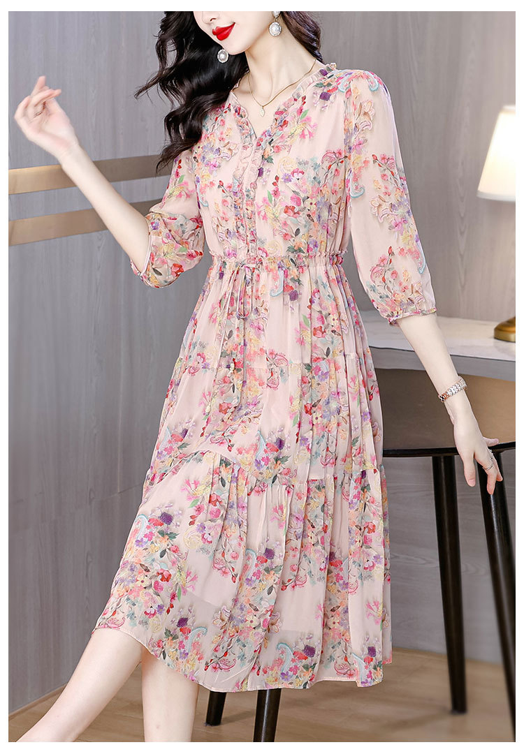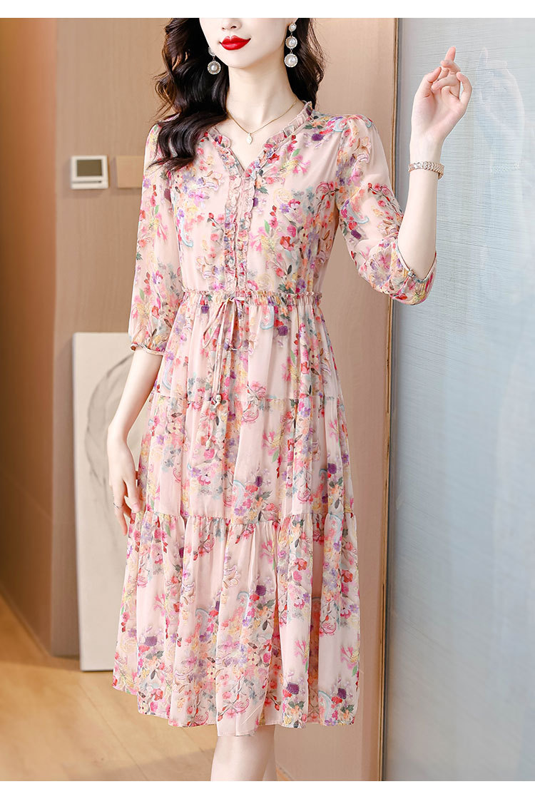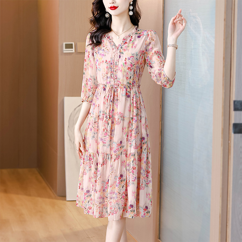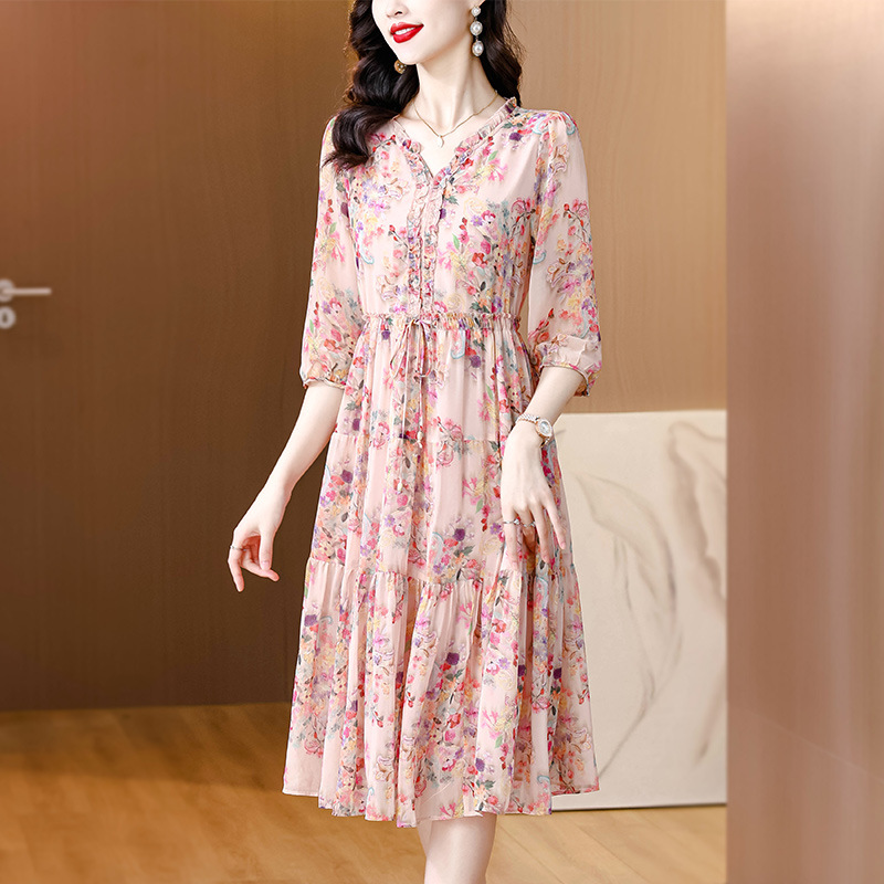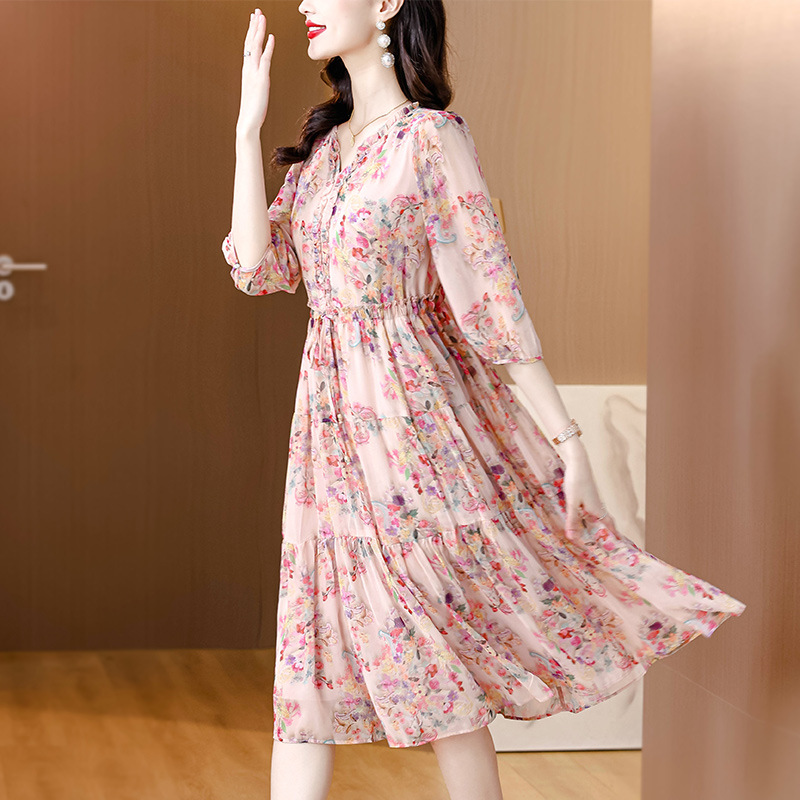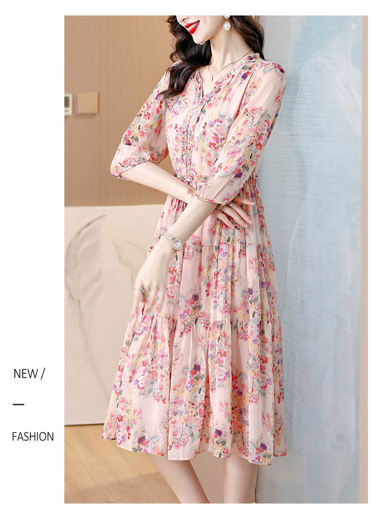 Chiếc áo dành cho các bà mẹ trung niên, được dệt từ chất liệu tơ lụa mềm mại và dày dặn. Hoa văn in trên áo mang phong cách thanh lịch, nhẹ nhàng. Kiểu dáng ôn hòa, tôn lên nét đẹp dịu dàng. Sản phẩm mới cho năm 2024, phù hợp cho nhiều dịp gặp mặt. Khi mặc, bạn nên giặt bằng tay với nước lạnh và phơi ở nơi râm mát để giữ áo được bền lâu. | Tên sản phẩm: Váy Đầm Liền Thân Nữ Chất Liệu Lụa Tơ Tằm Họa Tiết Hoa Trung Niên - Thời Trang Nữ | Mã sản phẩm: B9520 - Giá: 1.900.000đ | Mã nhà sản xuất: SHRYCT-G05Hình ảnh sản phẩm