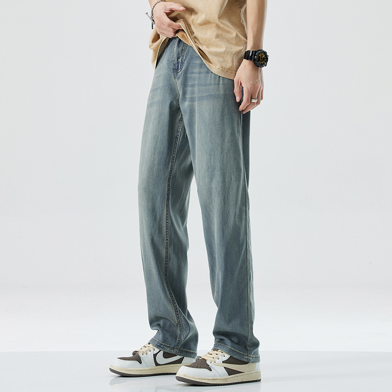 Chiếc quần dài này có kiểu dáng rộng rãi và ống thẳng, mang đến sự thoải mái, dễ chịu. Chất vải mỏng nhẹ và mát mẻ, đặc biệt thích hợp cho thời tiết nóng bức. Thiết kế theo phong cách thời trang hiện đại, phù hợp cho nhiều dịp sinh hoạt hằng ngày. Bạn có thể phối cùng áo thun và giày thể thao để tạo nên vẻ ngoại hình năng động và trẻ trung. | Tên sản phẩm: Quần Nam Chất Liệu Jean Bò Hàng Mùa Hè - Thời Trang Nam | Mã sản phẩm: B9542 - Giá: 650.000đ | Mã nhà sản xuất: GURYNG-G02Hình ảnh sản phẩm