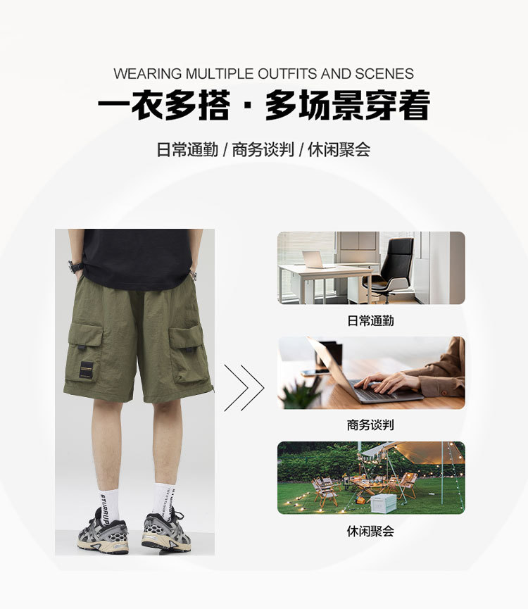 Chiếc quần soóc này mang phong cách lao động cổ điển, thiết kế dáng rộng rãi và thẳng giúp người mặc cảm thấy dễ chịu. Sản phẩm có nhiều túi tiện lợi, phù hợp để đựng các vật dụng cá nhân nhỏ gọn. Chất vải mỏng nhẹ, mặc mát mẻ, rất thích hợp dùng trong thời tiết mùa xuân và hè. Bạn có thể phối cùng áo thun và giày thể thao cho những lần đi chơi, dạo phố hàng ngày. | Tên sản phẩm: Quần Nam Hàng Mùa Hè - Thời Trang Nam | Mã sản phẩm: B9558 - Giá: 710.000đ | Mã nhà sản xuất: GURYNG-G02Hình ảnh sản phẩm