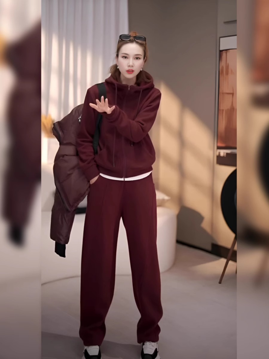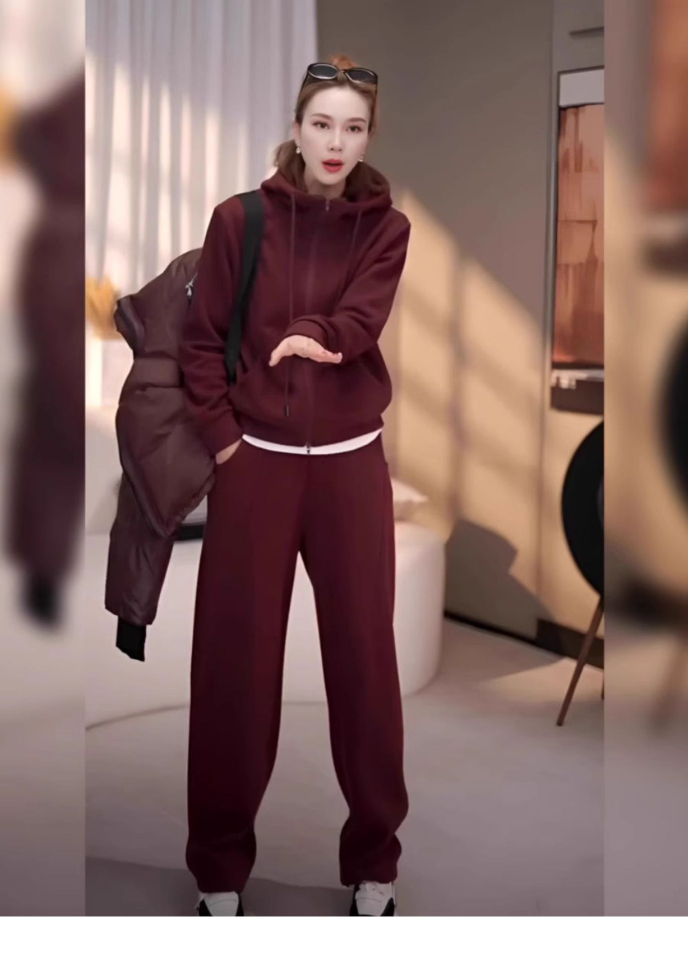 Bộ đồ thể thao nữ này có chất liệu lót bông mềm mại, giữ ấm tốt cho những ngày se lạnh. Thiết kế gồm áo hoodie có nón và quần dài, tạo phong cách năng động, trẻ trung. Form rộng rãi mang lại sự thoải mái tối đa khi mặc ở nhà, đi chơi hay tập luyện nhẹ nhàng. Bạn có thể phối cùng giày thể thao để hoàn thiện vẻ ngoại hình khỏe khoắn, đầy sức sống. | Tên sản phẩm: Đồ Bộ Nữ Mũ Liền Trông Trẻ Hơn Tuổi Hàng Mùa Xuân Thu Đông - Thời Trang Nữ | Mã sản phẩm: B9649 - Giá: 1.380.000đ | Mã nhà sản xuất: AIANOR-G04Hình ảnh sản phẩm