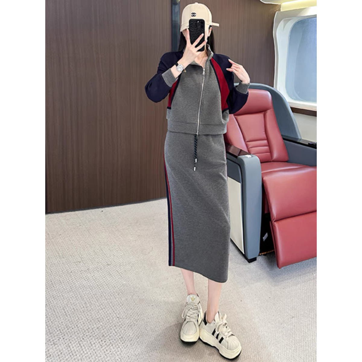 Bộ trang phục hai mảnh này gồm áo nỉ và chân váy, mang đến vẻ ngoại hình trẻ trung và năng động. Kiểu dáng theo phong cách dễ chịu, phù hợp cho các mùa thu, đông. Bạn có thể mặc nguyên bộ để tạo sự chỉn chu, hoặc phối cùng quần jeans cho những dịp thường ngày. Chất vải mềm mại giúp người mặc cảm thấy thoải mái khi vận động nhẹ nhàng hoặc đi làm, đi chơi. | Tên sản phẩm: Đồ Bộ Nữ Cả Bộ 2 Món Trông Trẻ Hơn Tuổi Hàng Mùa Xuân Thu Đông Phong Cách Hàn Quốc - Thời Trang Nữ | Mã sản phẩm: B9662 - Giá: 1.440.000đ | Mã nhà sản xuất: AIANOR-G04Hình ảnh sản phẩm