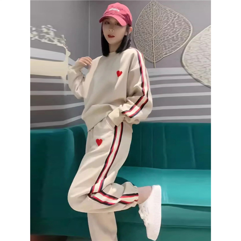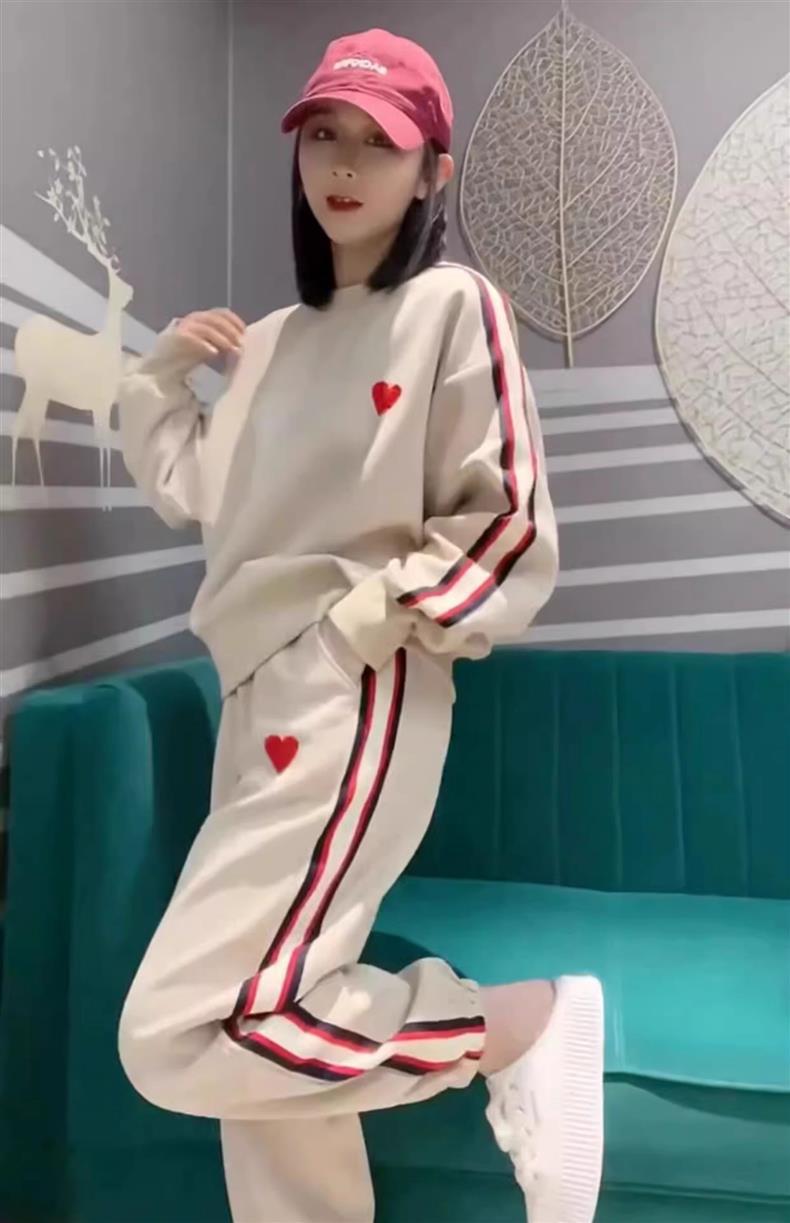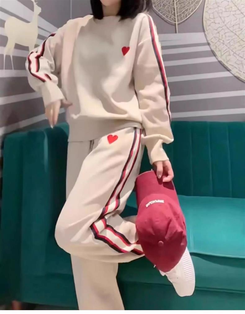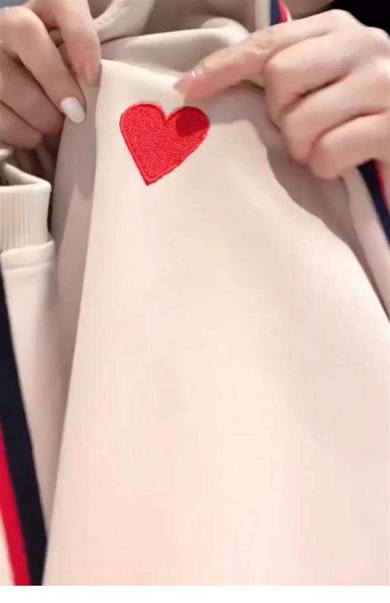 Bộ đồ thể thao nữ dành cho mùa thu, thiết kế hai mảnh gồm áo nỉ và quần. Điểm nhấn đặc biệt là hình thêu trái tim tinh tế trên ngực áo. Chất liệu co giãn nhẹ nhàng, mang lại cảm giác thoải mái, dễ chịu khi mặc. Kiểu dáng năng động, phù hợp cho nhiều hoạt động hằng ngày như đi dạo, tập luyện nhẹ hay mặc ở nhà. Có thể phối mặc nguyên bộ hoặc tách rời để phong cách thêm phần linh hoạt. | Tên sản phẩm: Đồ Bộ Nữ Cả Bộ 2 Món Thêu Họa Tiết Hoa Hàng Mùa Xuân Thu Đông - Thời Trang Nữ | Mã sản phẩm: B9663 - Giá: 1.400.000đ | Mã nhà sản xuất: AIANOR-G04Hình ảnh sản phẩm