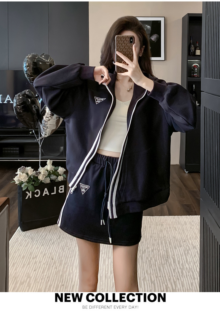 Bộ trang phục thể thao dành cho nữ, gồm áo nỉ và chân váy ngắn, phù hợp mặc vào mùa thu và mùa xuân. Chất liệu co giãn nhẹ nhàng, mang đến sự thoải mái và dễ dàng vận động. Kiểu dáng trẻ trung, năng động với đường cắt may có điểm nhấn riêng. Bạn có thể mặc nguyên bộ để đi dạo, tập luyện nhẹ, hoặc phối cùng các trang phục khác để tạo vẻ ngoài cá tính. | Tên sản phẩm: Đồ Bộ Nữ Cả Bộ 2 Món Hàng Mùa Xuân Thu Đông - Thời Trang Nữ | Mã sản phẩm: B9694 - Giá: 1.350.000đ | Mã nhà sản xuất: AIANOR-G04Hình ảnh sản phẩm