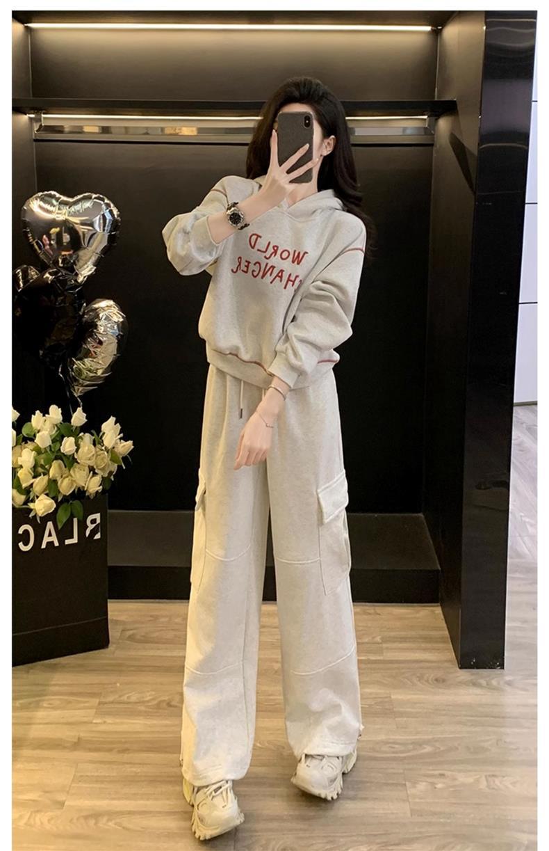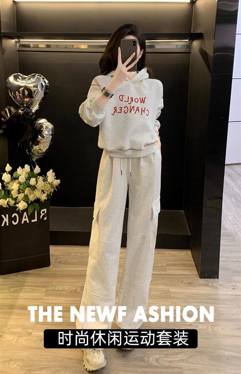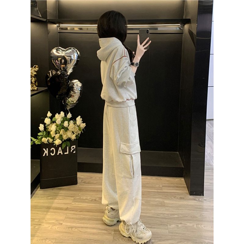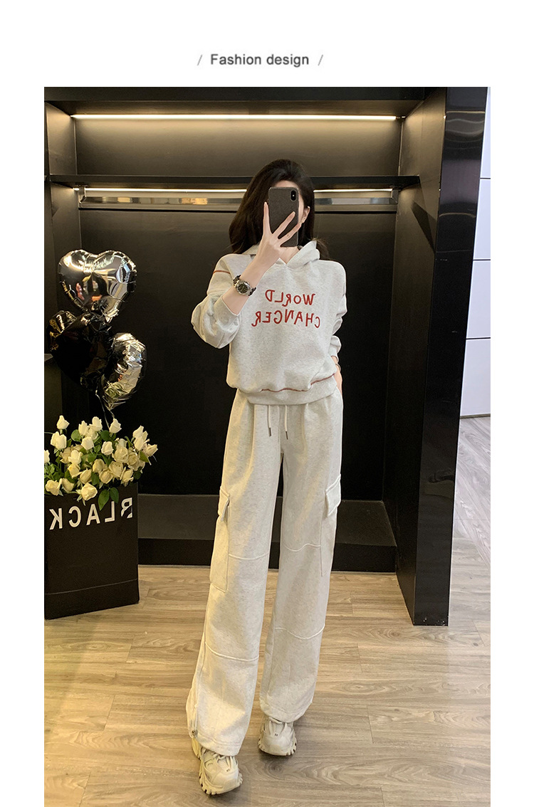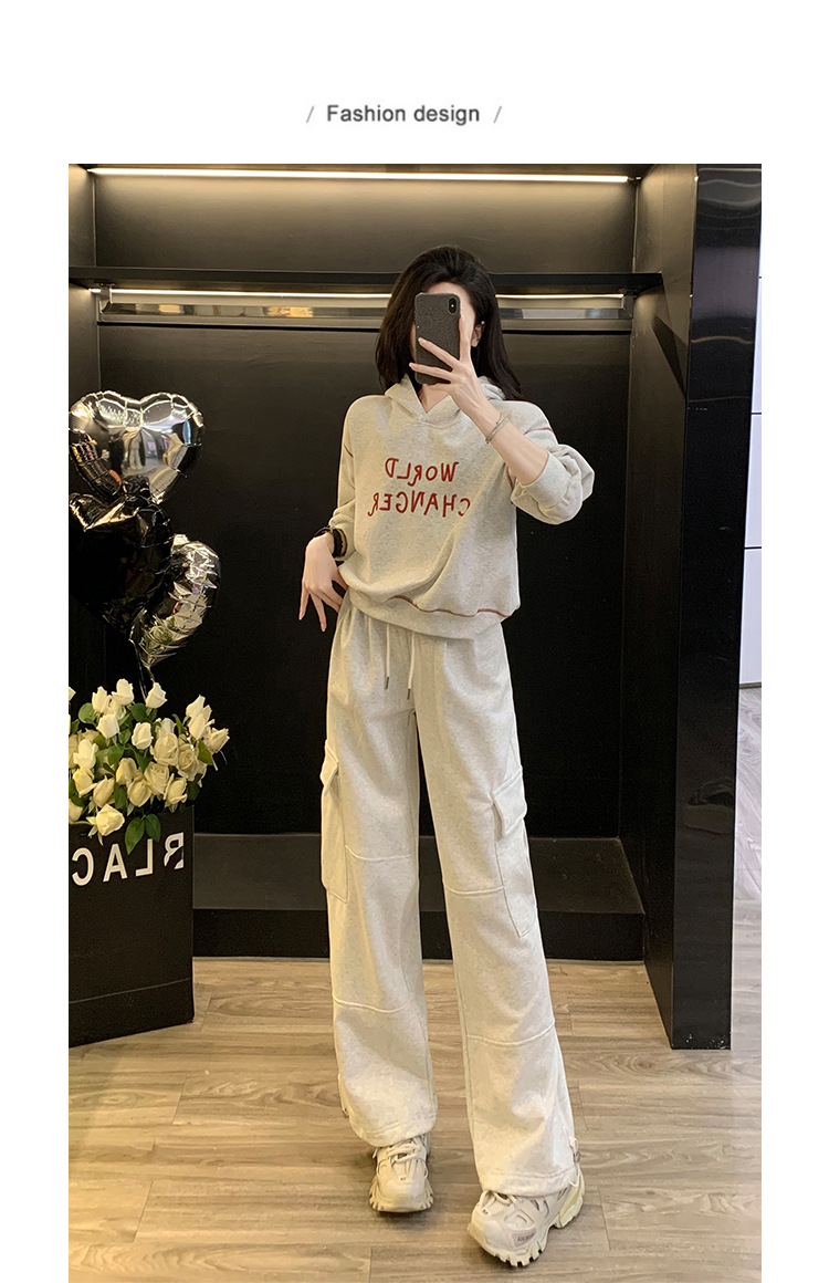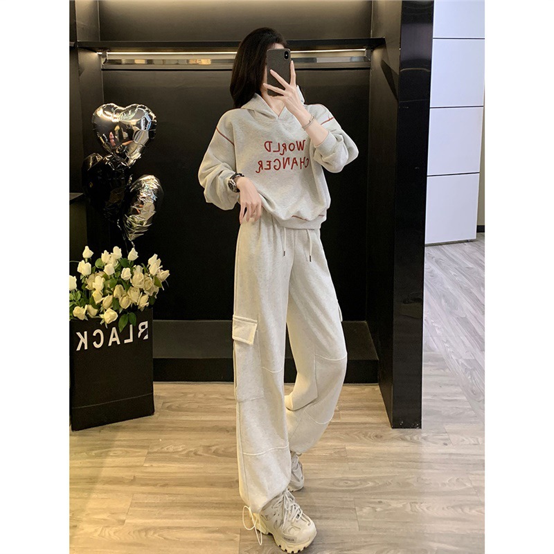 Bộ trang phục thể thao hai mảnh này mang đến phong cách vừa ngọt ngào vừa cá tính. Set đồ gồm áo nỉ có mũ màu xám và quần ống rộng kiểu công sở, tạo cảm giác thoải mái, trẻ trung. Chất liệu co giãn nhẹ nhàng, phù hợp cho các hoạt động hằng ngày hoặc lúc tập luyện. Bạn có thể mặc nguyên bộ để đồng bộ, hoặc phối cùng áo thun bên trong và giày thể thao để thêm năng động. | Tên sản phẩm: Đồ Bộ Nữ Cả Bộ 2 Món Trông Trẻ Hơn Tuổi Hàng Mùa Xuân Thu Đông - Thời Trang Nữ | Mã sản phẩm: B9697 - Giá: 1.220.000đ | Mã nhà sản xuất: AIANOR-G04Hình ảnh sản phẩm