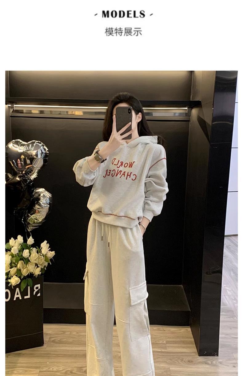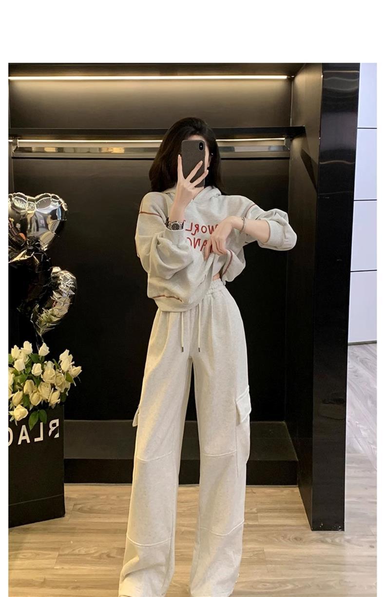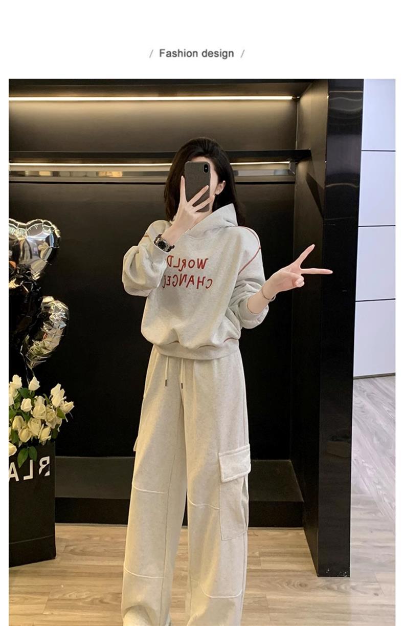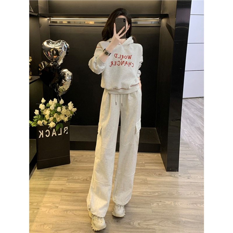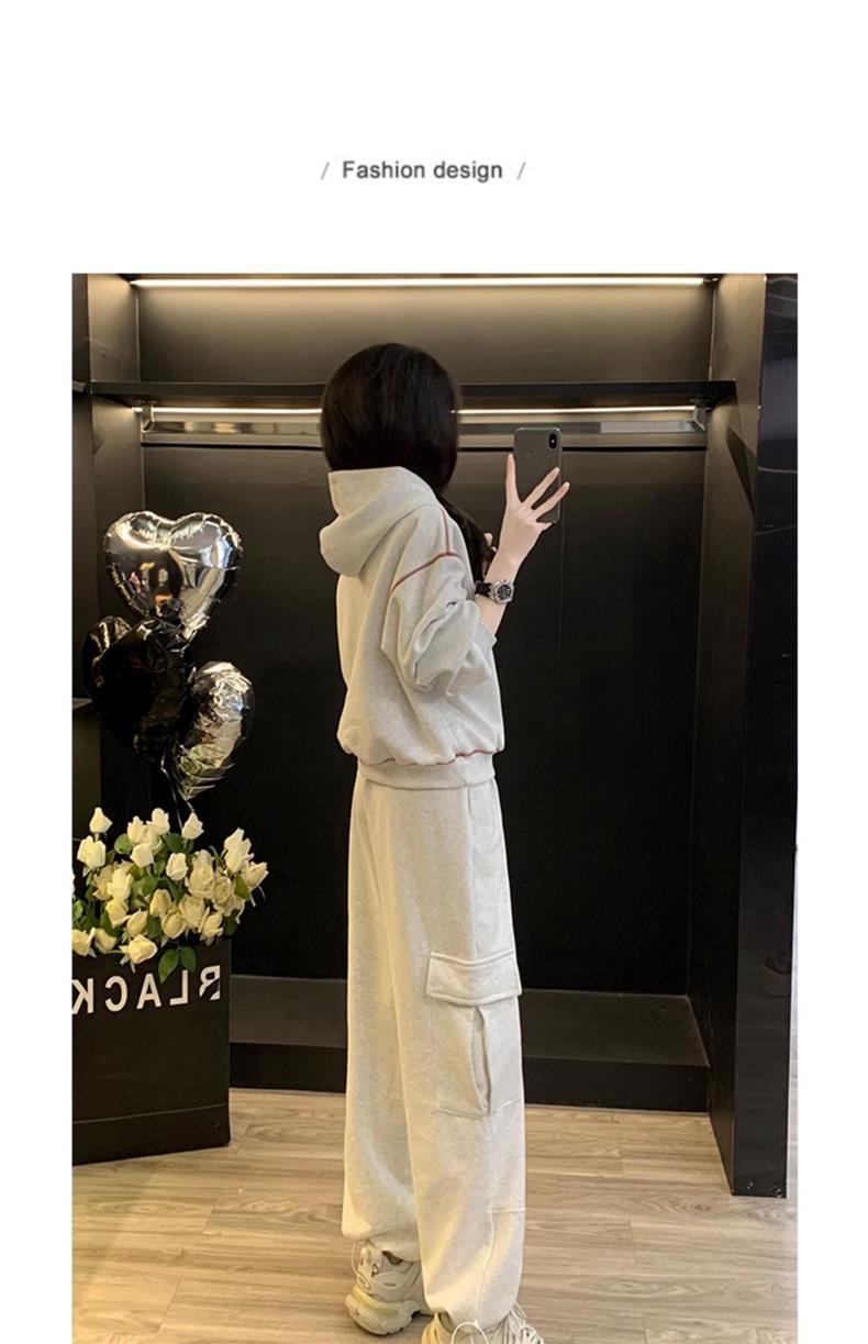 Bộ trang phục thể thao hai mảnh này mang đến phong cách vừa ngọt ngào vừa cá tính. Set đồ gồm áo nỉ có mũ màu xám và quần ống rộng kiểu công sở, tạo cảm giác thoải mái, trẻ trung. Chất liệu co giãn nhẹ nhàng, phù hợp cho các hoạt động hằng ngày hoặc lúc tập luyện. Bạn có thể mặc nguyên bộ để đồng bộ, hoặc phối cùng áo thun bên trong và giày thể thao để thêm năng động. | Tên sản phẩm: Đồ Bộ Nữ Cả Bộ 2 Món Trông Trẻ Hơn Tuổi Hàng Mùa Xuân Thu Đông - Thời Trang Nữ | Mã sản phẩm: B9697 - Giá: 1.220.000đ | Mã nhà sản xuất: AIANOR-G04Hình ảnh sản phẩm