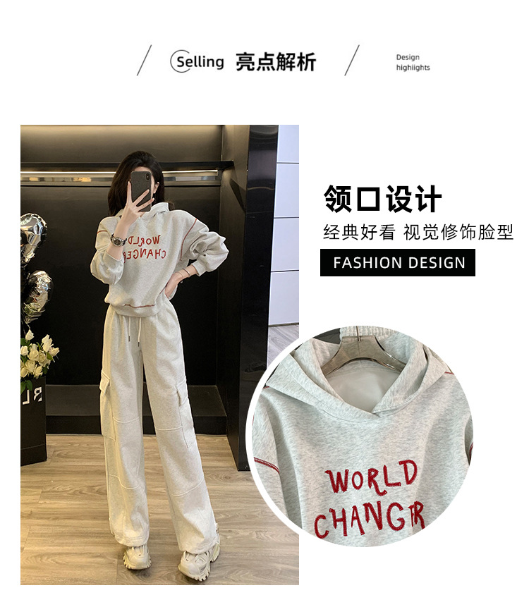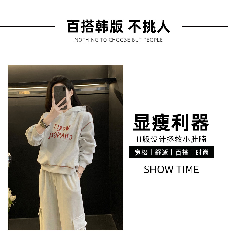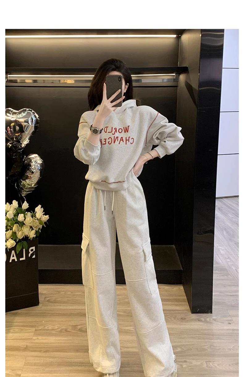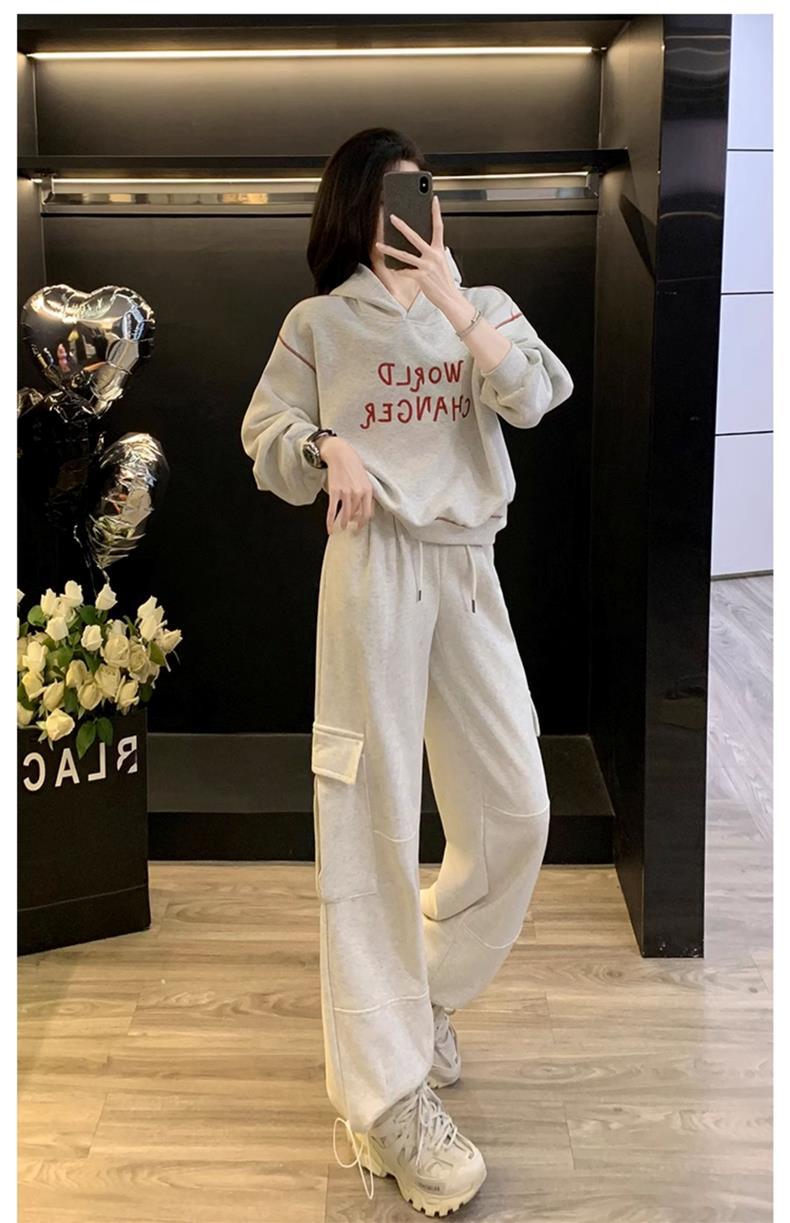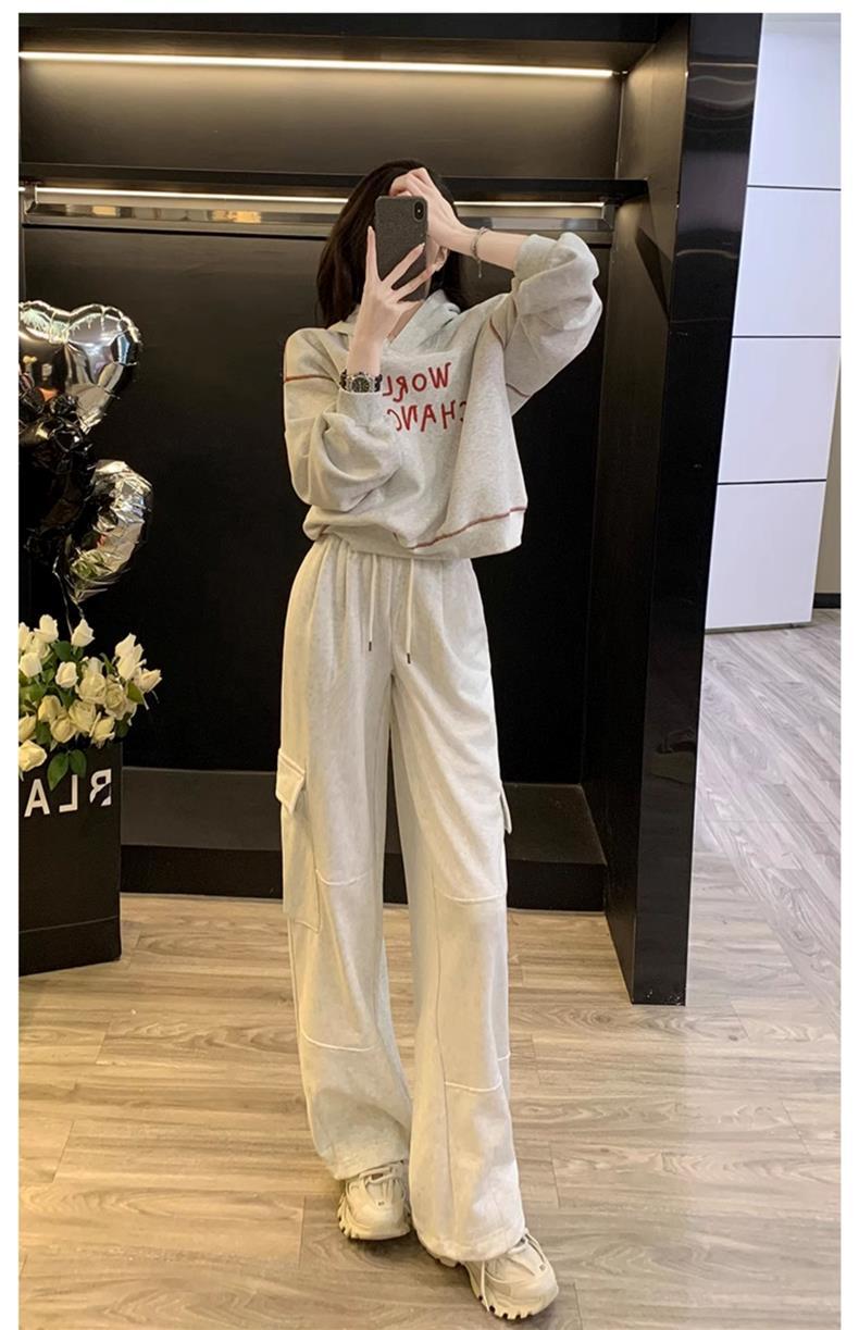 Bộ trang phục thể thao hai mảnh này mang đến phong cách vừa ngọt ngào vừa cá tính. Set đồ gồm áo nỉ có mũ màu xám và quần ống rộng kiểu công sở, tạo cảm giác thoải mái, trẻ trung. Chất liệu co giãn nhẹ nhàng, phù hợp cho các hoạt động hằng ngày hoặc lúc tập luyện. Bạn có thể mặc nguyên bộ để đồng bộ, hoặc phối cùng áo thun bên trong và giày thể thao để thêm năng động. | Tên sản phẩm: Đồ Bộ Nữ Cả Bộ 2 Món Trông Trẻ Hơn Tuổi Hàng Mùa Xuân Thu Đông - Thời Trang Nữ | Mã sản phẩm: B9697 - Giá: 1.220.000đ | Mã nhà sản xuất: AIANOR-G04Hình ảnh sản phẩm