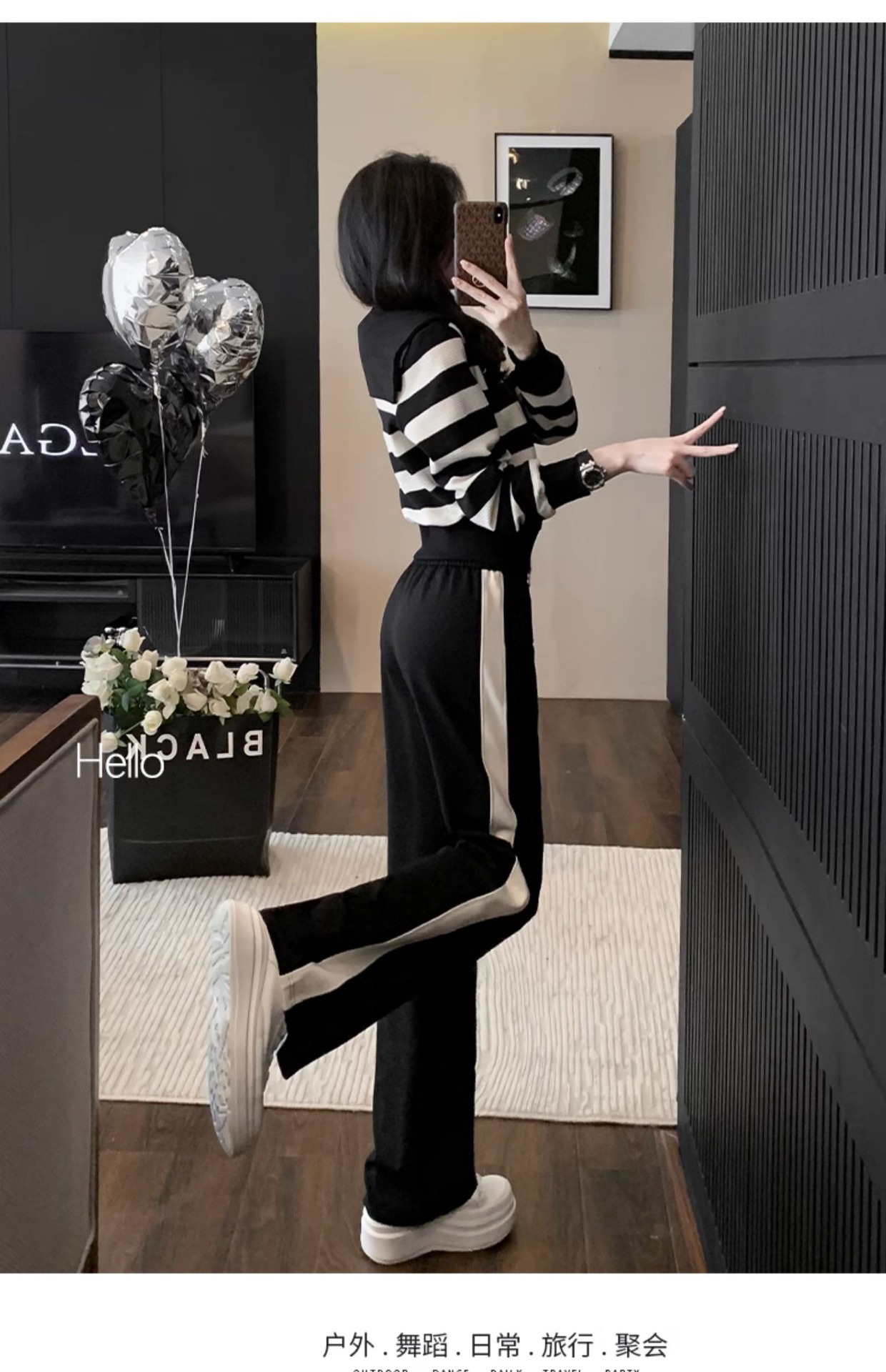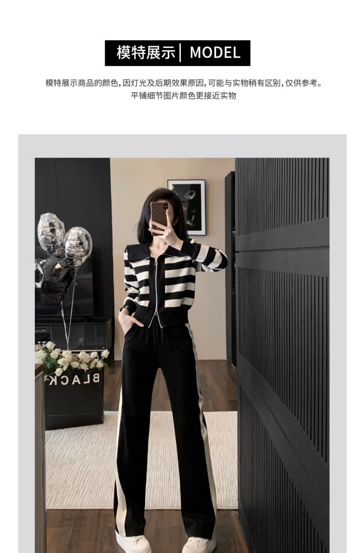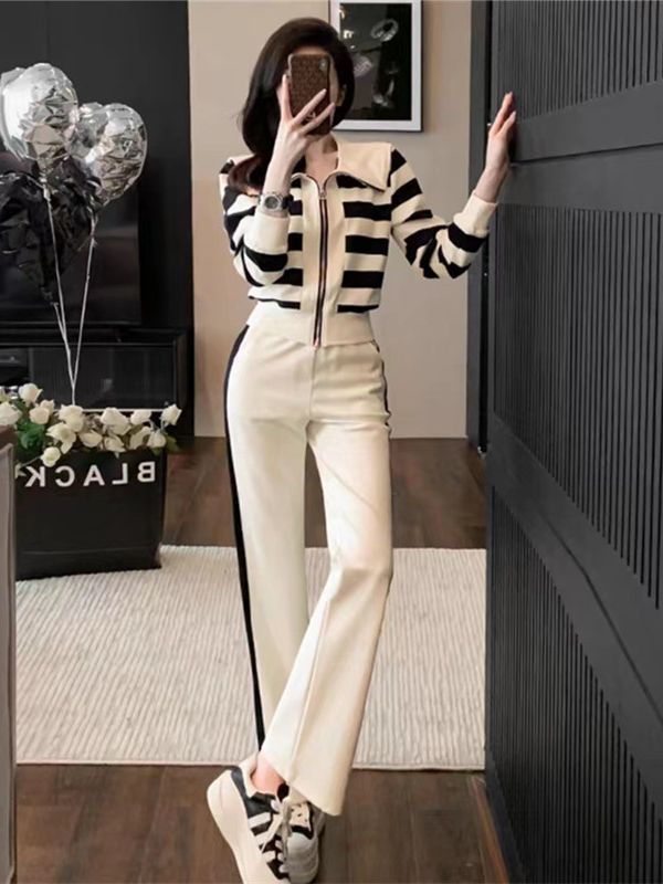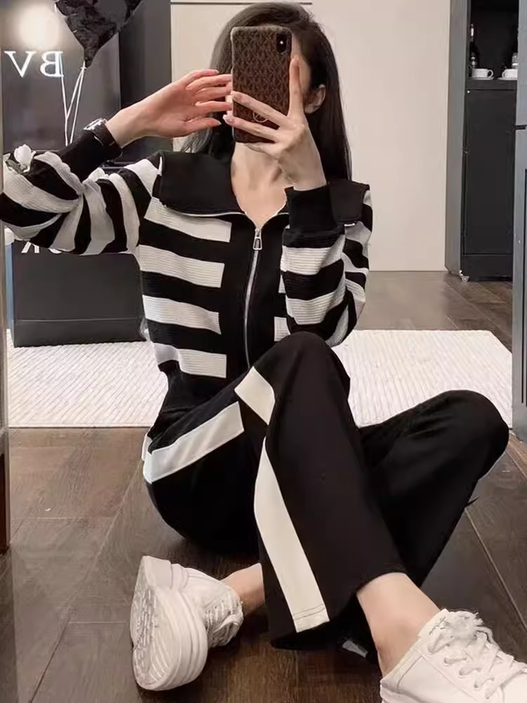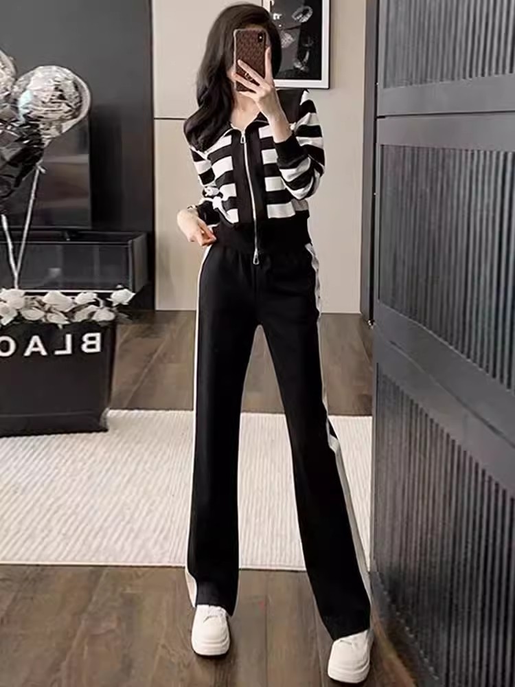 Bộ đồ thể thao dành cho nữ với thiết kế hai mảnh thoải mái, phù hợp cho những ngày xuân ấm áp. Áo khoác dáng dài có hàng kẻ và cổ thuyết thanh lịch, kết hợp cùng quần ống rộng tạo nên sự thoải mái tối đa khi vận động hoặc đi chơi. Chất vải co giãn nhẹ nhàng, mang lại cảm giác dễ chịu cả ngày dài. Có thể mặc nguyên bộ hoặc phối cùng các trang phục khác để tạo nên những phong cách đa dạng. | Tên sản phẩm: Đồ Bộ Nữ Dáng Dộng Cả Bộ 2 Món Hàng Mùa Xuân Thu Đông - Thời Trang Nữ | Mã sản phẩm: B9709 - Giá: 1.380.000đ | Mã nhà sản xuất: AIANOR-G04Hình ảnh sản phẩm