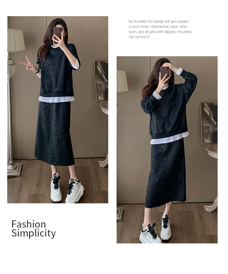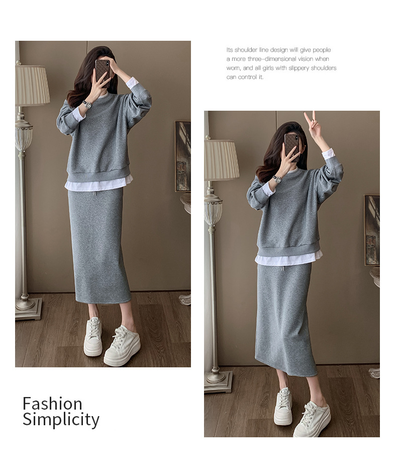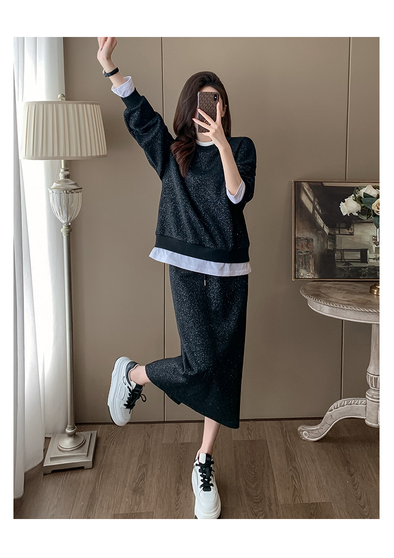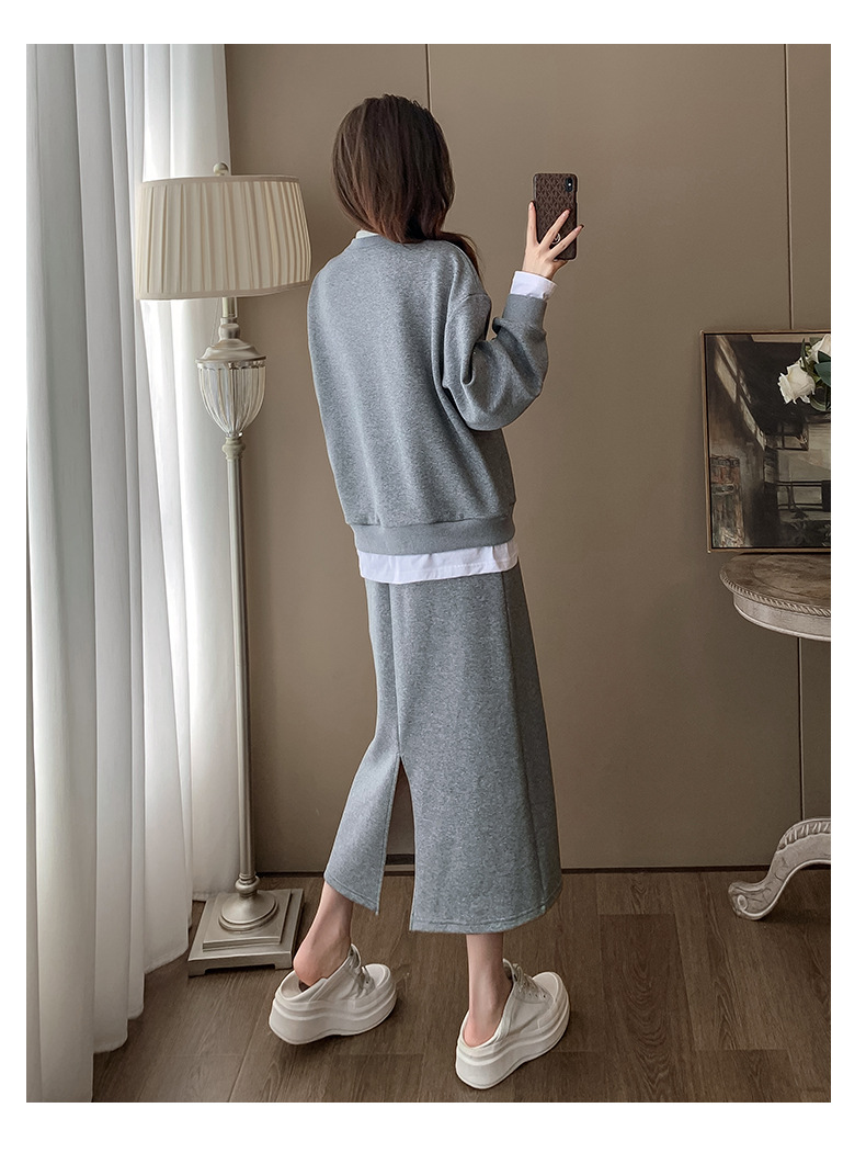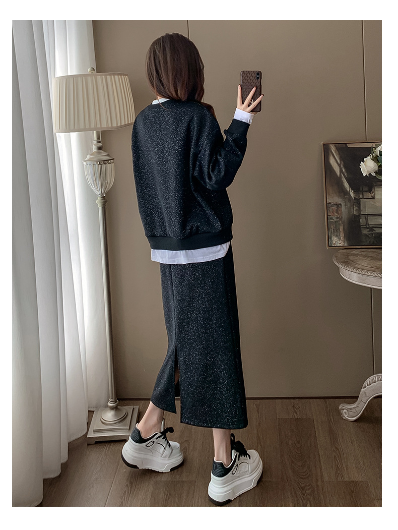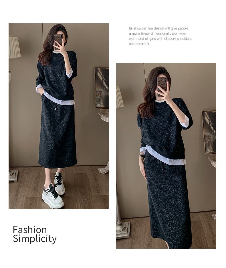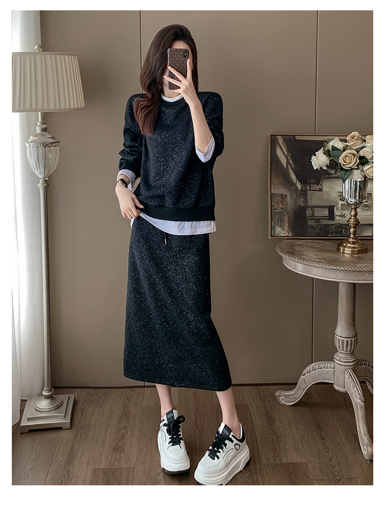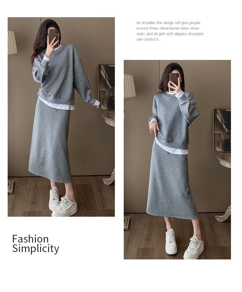 Bộ trang phục hai mảnh này gồm áo nỉ và chân váy, mang phong cách thể thao nhẹ nhàng, phù hợp cho mùa xuân. Chất liệu co giãn mềm mại giúp người mặc thoải mái vận động. Bạn có thể mặc nguyên bộ để tạo vẻ chỉn chu, hoặc tách riêng từng món để phối với các trang phục khác. Đây là lựa chọn tiện lợi cho những ngày bận rộn, dễ dàng tạo nên một diện mạo tươi tắn và năng động. | Tên sản phẩm: Đồ Bộ Nữ Cả Bộ 2 Món Hàng Mùa Xuân Thu Đông - Thời Trang Nữ | Mã sản phẩm: B9717 - Giá: 1.420.000đ | Mã nhà sản xuất: AIANOR-G04Hình ảnh sản phẩm