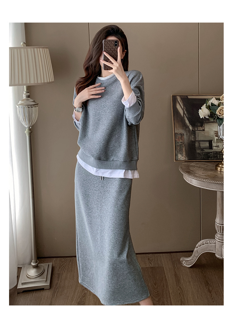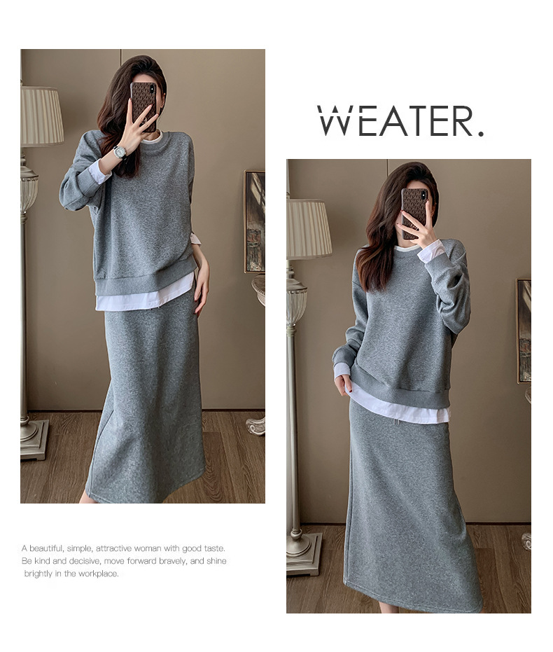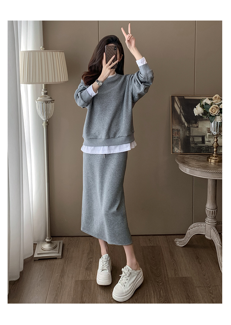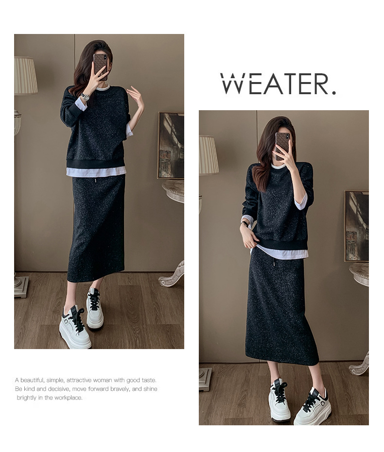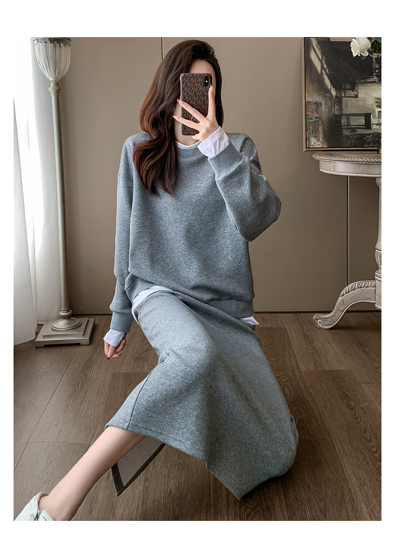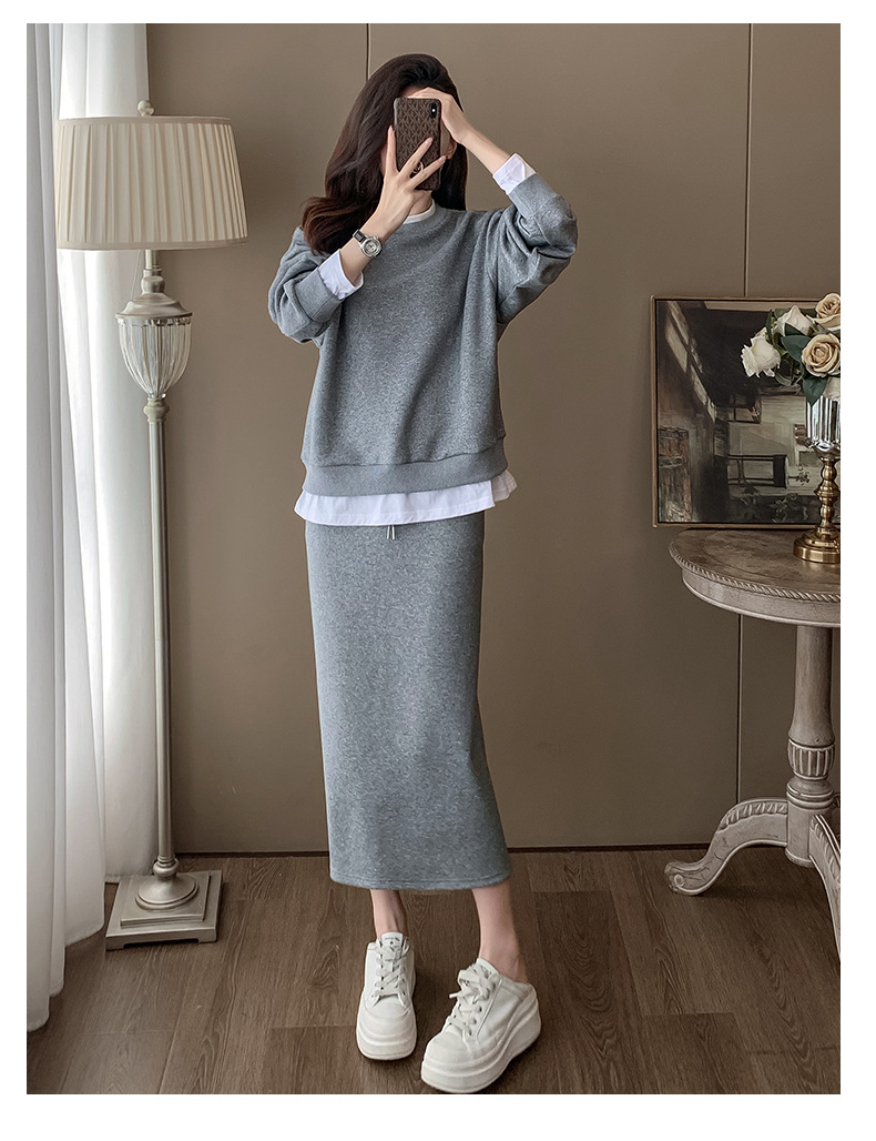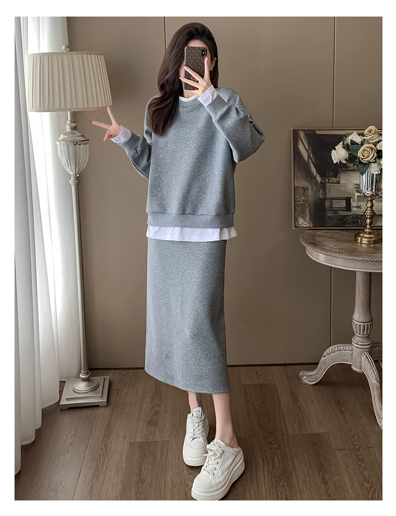Bộ trang phục hai mảnh này gồm áo nỉ và chân váy, mang phong cách thể thao nhẹ nhàng, phù hợp cho mùa xuân. Chất liệu co giãn mềm mại giúp người mặc thoải mái vận động. Bạn có thể mặc nguyên bộ để tạo vẻ chỉn chu, hoặc tách riêng từng món để phối với các trang phục khác. Đây là lựa chọn tiện lợi cho những ngày bận rộn, dễ dàng tạo nên một diện mạo tươi tắn và năng động. | Tên sản phẩm: Đồ Bộ Nữ Cả Bộ 2 Món Hàng Mùa Xuân Thu Đông - Thời Trang Nữ | Mã sản phẩm: B9717 - Giá: 1.420.000đ | Mã nhà sản xuất: AIANOR-G04Hình ảnh sản phẩm