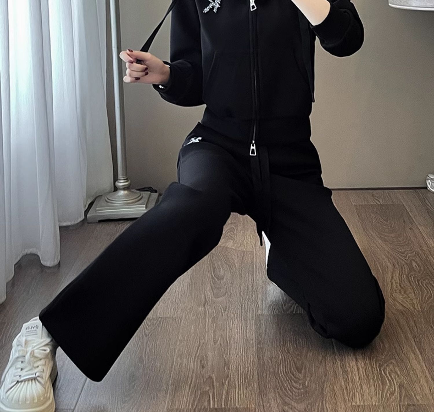 Bộ đồ thể thao nữ này gồm áo nỉ có mũ và quần ống rộng, thiết kế dành riêng cho những bạn có vóc dáng nhỏ nhắn. Chất vải mềm mại, co giãn nhẹ mang lại sự thoải mái tối đa cho các hoạt động hằng ngày hoặc khi vận động nhẹ. Bộ trang phục với màu đen dễ dàng phối đồ, phù hợp mặc trong tiết trời thu mát mẻ. Có thể mặc nguyên bộ hoặc tách rời để phối với các món đồ khác. | Tên sản phẩm: Đồ Bộ Nữ Cả Bộ 2 Món Hàng Mùa Xuân Thu Đông - Thời Trang Nữ | Mã sản phẩm: B9756 - Giá: 1.400.000đ | Mã nhà sản xuất: AIANOR-G04Hình ảnh sản phẩm