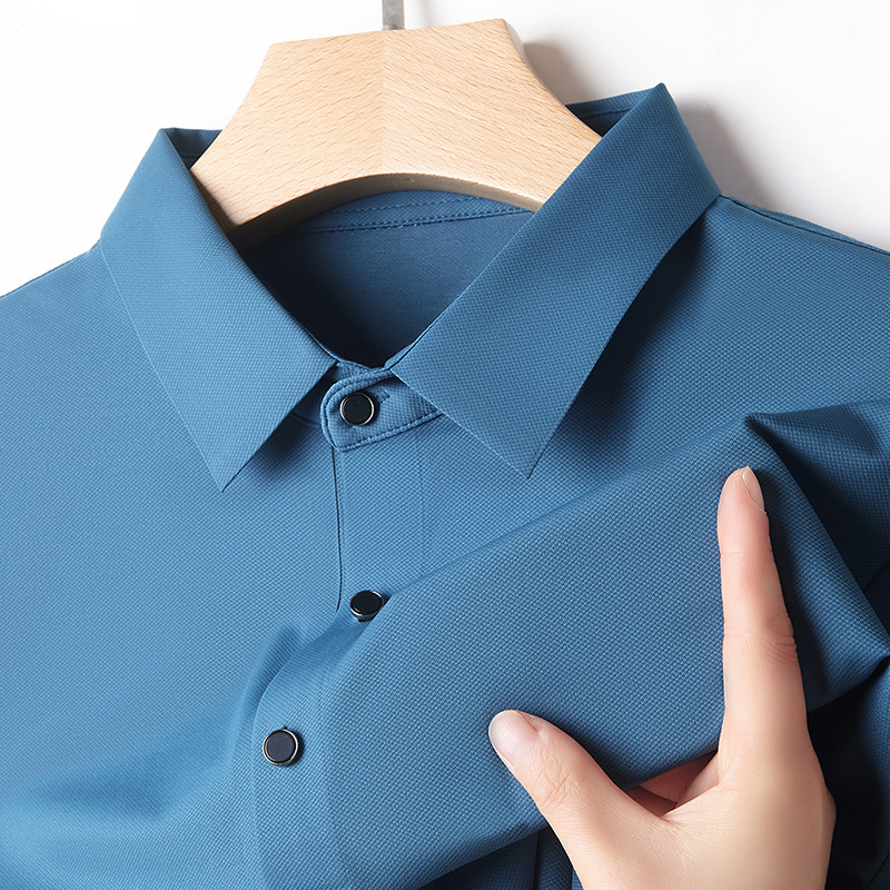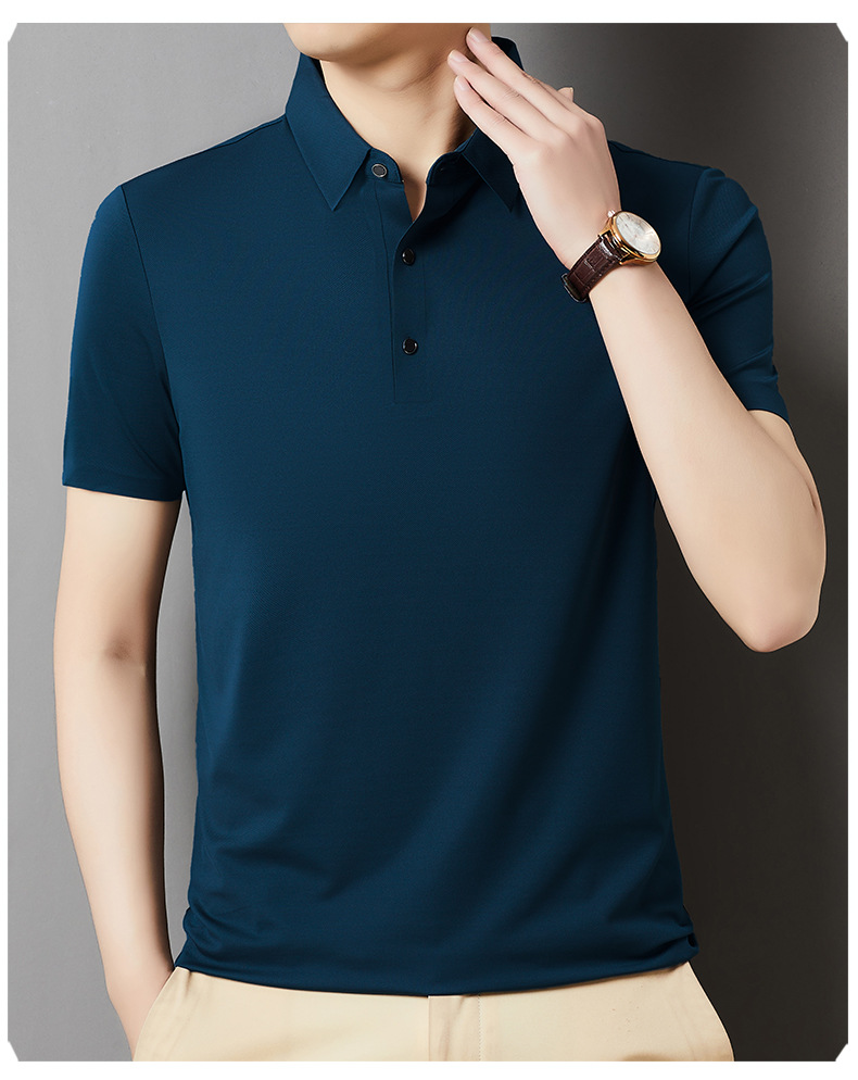 Áo thun cổ bẻ tay ngắn dành cho nam, kiểu dáng công sở lịch sự. Sản phẩm được dệt từ sợi tơ tằm thiên nhiên, mang lại cảm giác mát mẻ, nhẹ nhàng và thoáng khí khi mặc, đặc biệt phù hợp trong thời tiết nóng. Form áo rộng rãi tạo sự thoải mái, đường may tinh tế gần như không thấy. Có thể kết hợp cùng quần tây để tạo phong cách chỉn chu trong công việc hoặc các dịp thông thường. | Tên sản phẩm: Áo Thun Nam Chất Liệu Lụa Tơ Tằm Ngắn Tay Hàng Mùa Hè Trung Niên - Thời Trang Nam | Mã sản phẩm: B9772 - Giá: 1.020.000đ | Mã nhà sản xuất: JIDEN-G03Hình ảnh sản phẩm