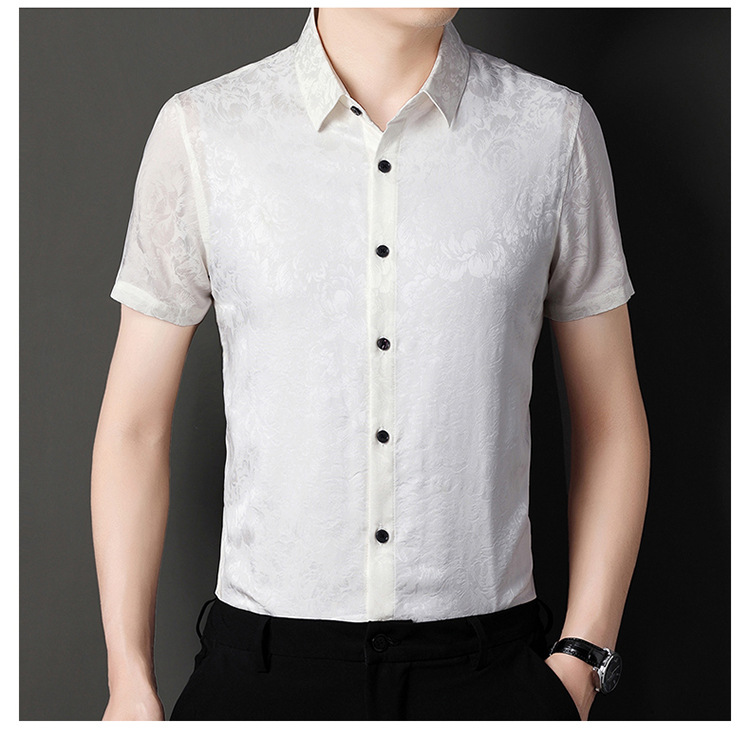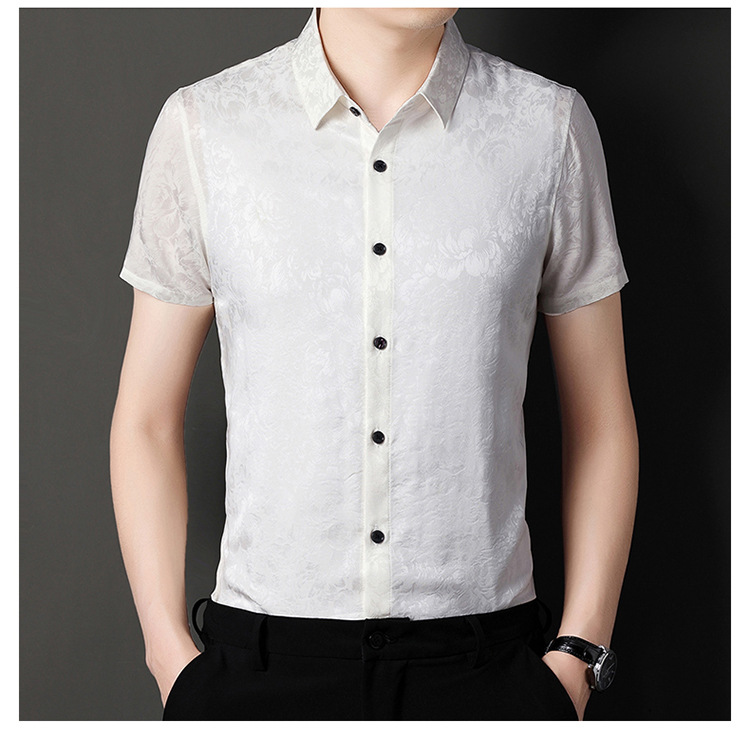 Áo sơ mi ngắn tay dành cho nam, được dệt từ sợi tơ tằm thiên nhiên, mang đến cảm giác mát mẻ và thoải mái khi mặc. Kiểu dáng kết hợp giữa đi làm và dạo phố, phù hợp nhiều hoàn cảnh. Hoa văn trên áo được dệt nổi độc đáo, không cần ủi sau giặt, tiết kiệm thời gian. Mặc cùng quần tây hoặc quần jeans đều rất hợp. | Tên sản phẩm: Áo Thun Nam Chất Liệu Lụa Tơ Tằm Ngắn Tay Họa Tiết Hoa Hàng Mùa Hè Phong Cách Trẻ Trung - Thời Trang Nam | Mã sản phẩm: B9786 - Giá: 2.100.000đ | Mã nhà sản xuất: JIDEN-G05Hình ảnh sản phẩm