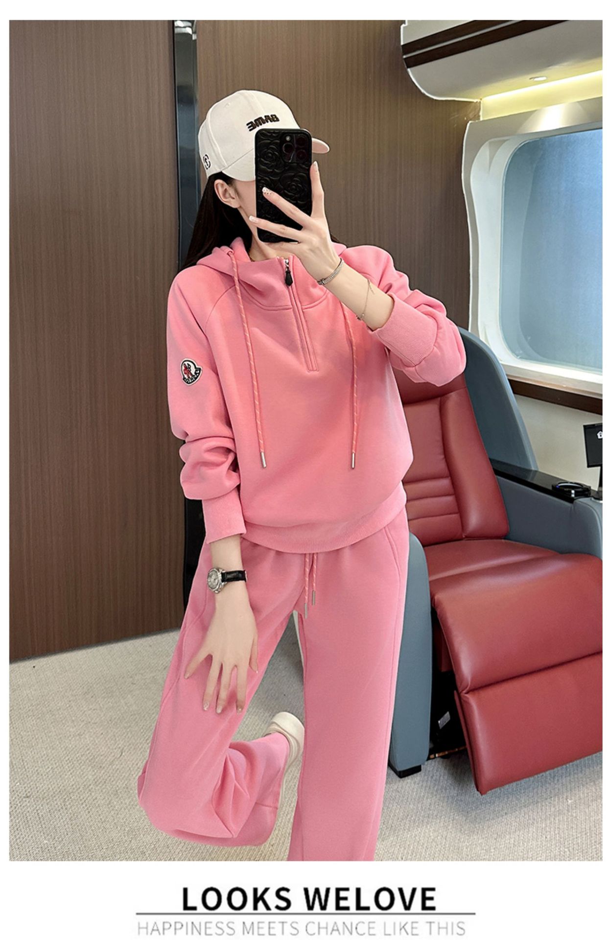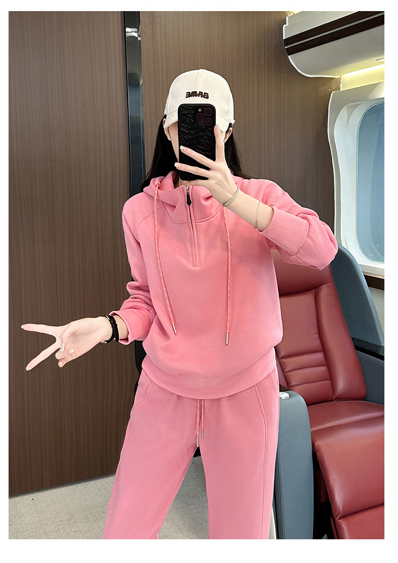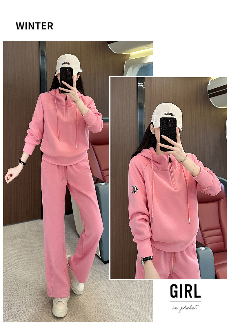 Bộ đồ thể thao nữ màu hồng dành cho mùa thu đông. Sản phẩm là bộ hai món gồm áo nỉ và quần dài. Bên trong được lót một lớp lông mềm mại cùng chất vải dày dặn, giúp giữ ấm tốt trong thời tiết lạnh. Kiểu dáng năng động, thoải mái, dễ dàng phối hợp với giày thể thao để tạo nên phong cách trẻ trung, tiện lợi cho các hoạt động hằng ngày hoặc khi tập luyện nhẹ nhàng. | Tên sản phẩm: Đồ Bộ Nữ Cả Bộ 2 Món Dày Ấm Hàng Mùa Xuân Thu Đông - Thời Trang Nữ | Mã sản phẩm: B9790 - Giá: 1.400.000đ | Mã nhà sản xuất: AIANOR-G04Hình ảnh sản phẩm