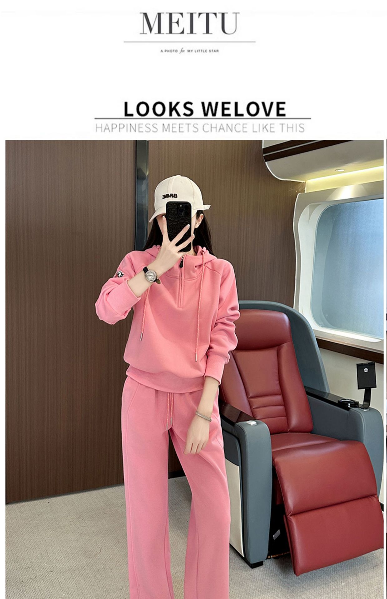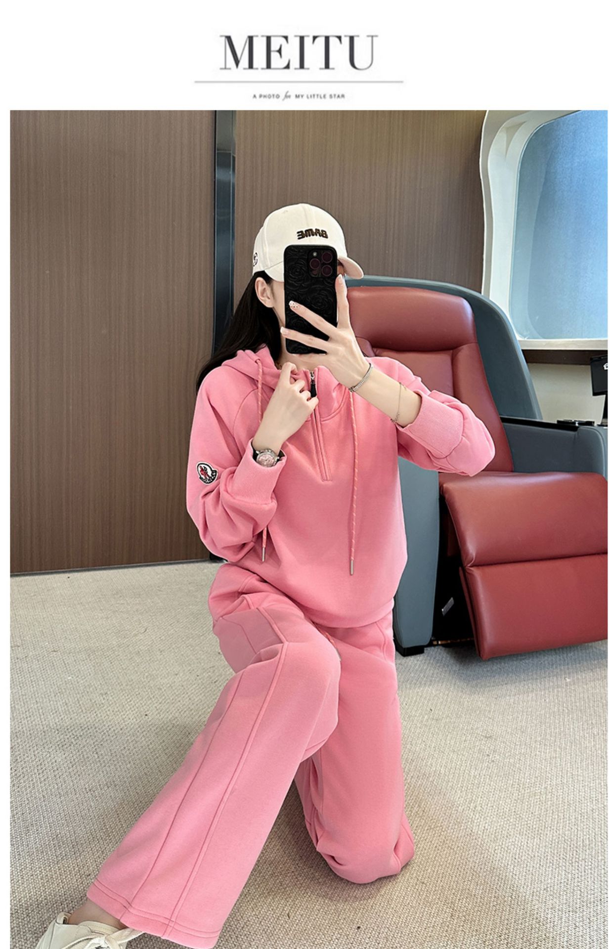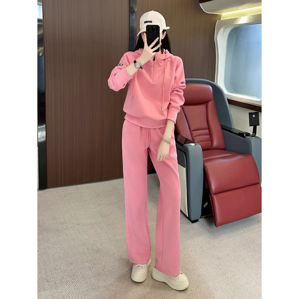 Bộ đồ thể thao nữ màu hồng dành cho mùa thu đông. Sản phẩm là bộ hai món gồm áo nỉ và quần dài. Bên trong được lót một lớp lông mềm mại cùng chất vải dày dặn, giúp giữ ấm tốt trong thời tiết lạnh. Kiểu dáng năng động, thoải mái, dễ dàng phối hợp với giày thể thao để tạo nên phong cách trẻ trung, tiện lợi cho các hoạt động hằng ngày hoặc khi tập luyện nhẹ nhàng. | Tên sản phẩm: Đồ Bộ Nữ Cả Bộ 2 Món Dày Ấm Hàng Mùa Xuân Thu Đông - Thời Trang Nữ | Mã sản phẩm: B9790 - Giá: 1.400.000đ | Mã nhà sản xuất: AIANOR-G04Hình ảnh sản phẩm