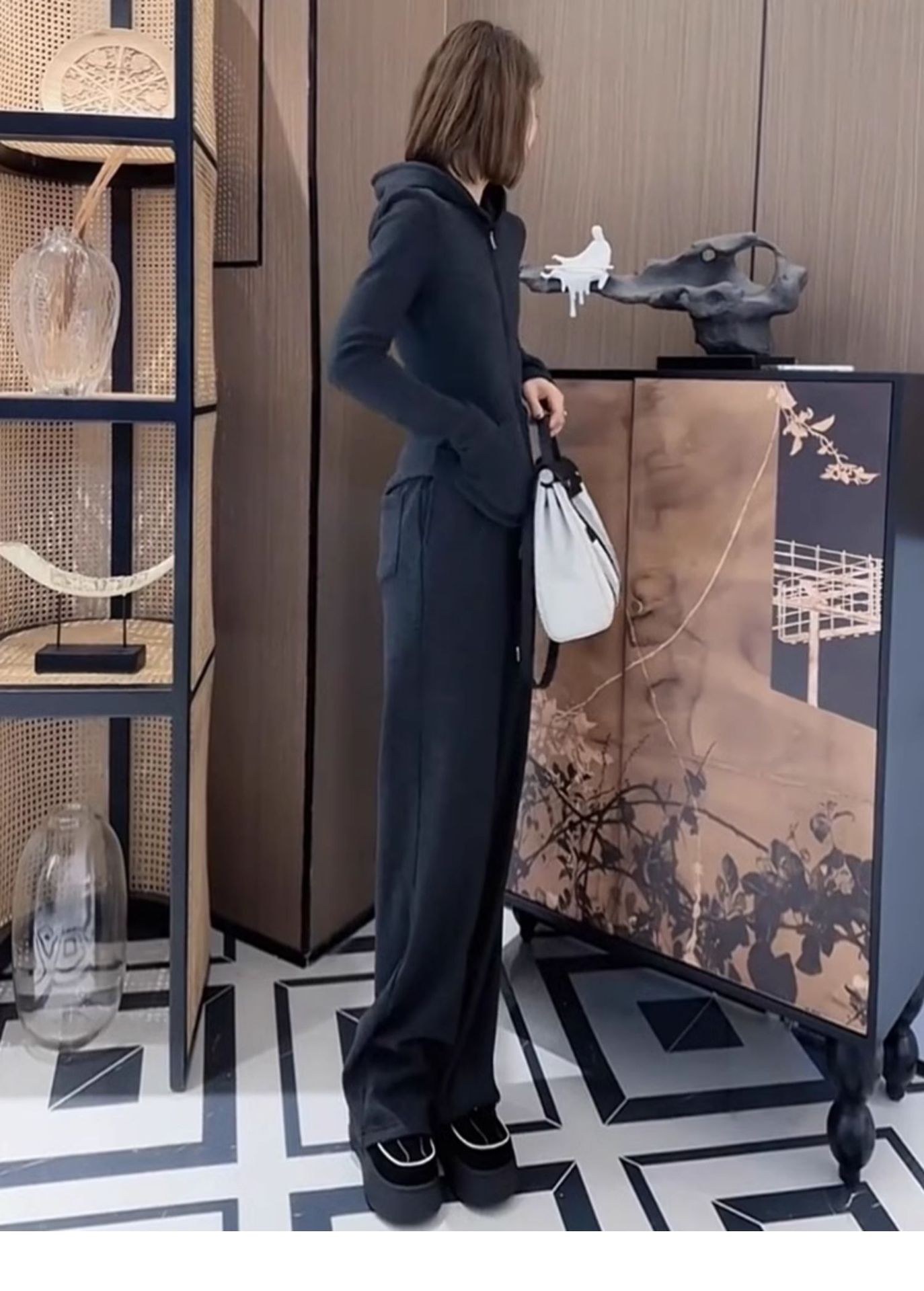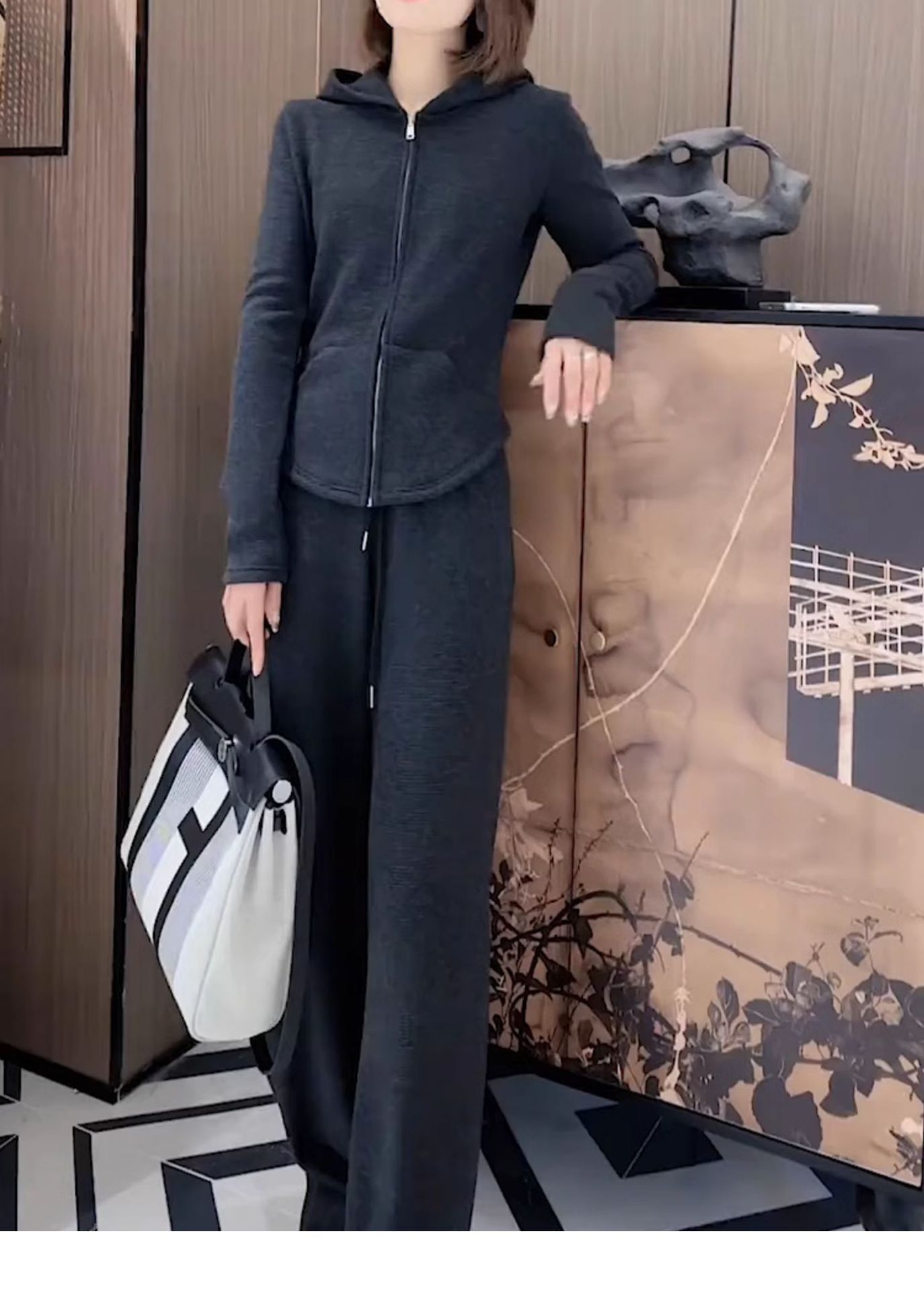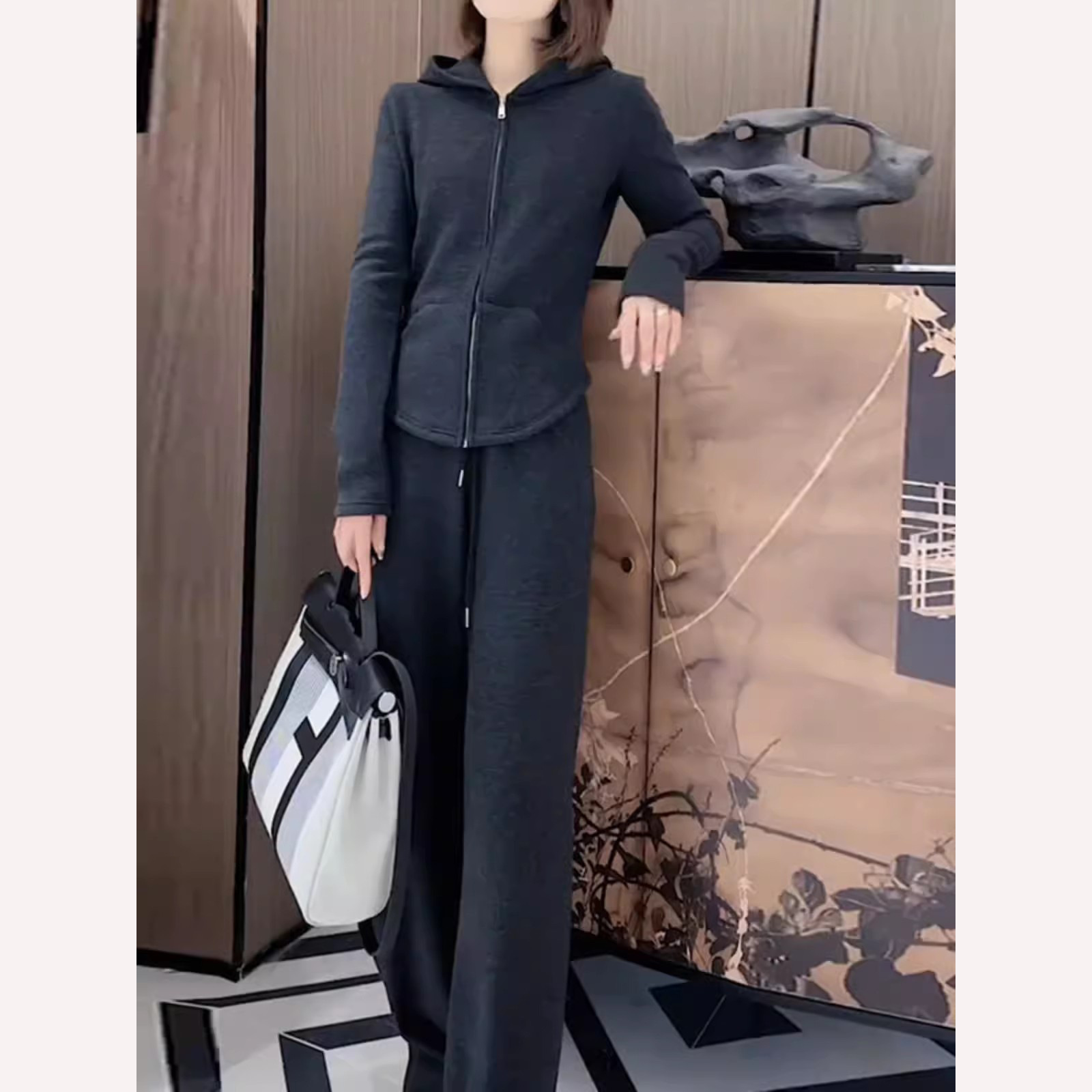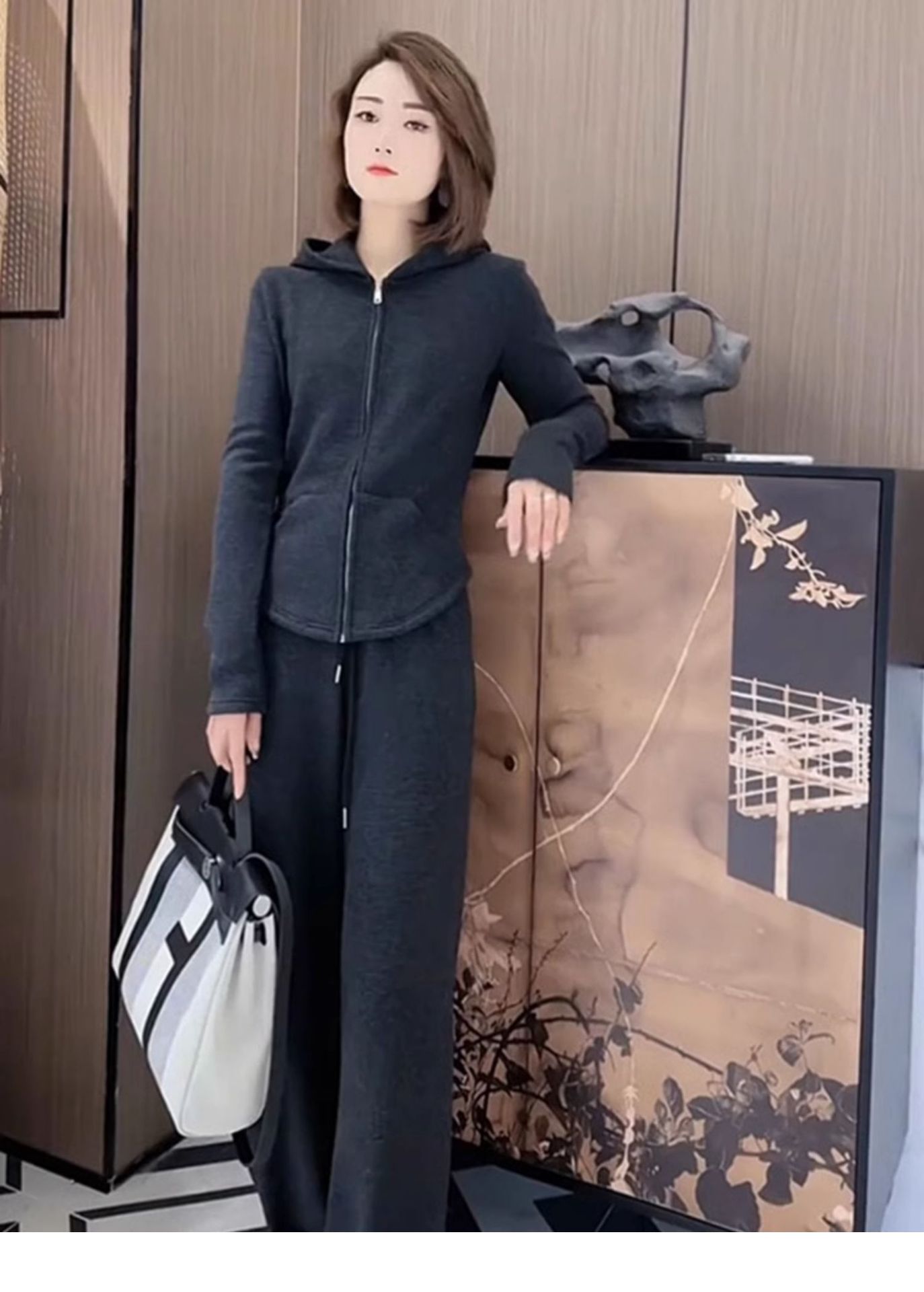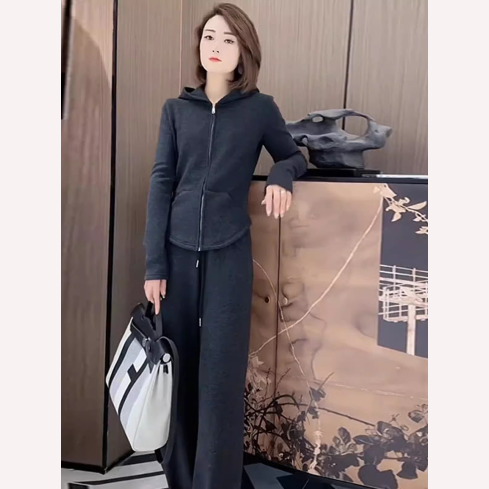 Bộ trang phục thể thao dành cho nữ, thiết kế gồm hai món đầy phong cách. Chất vải mềm mại, co giãn nhẹ mang đến sự thoải mái tối đa khi vận động hoặc mặc trong những ngày thu mát mẻ. Kiểu dáng rộng rãi, đặc biệt là phần ống quần suông thoáng, tạo cảm giác thư thái. Có thể mặc nguyên bộ như một set đồ đồng bộ, hoặc phối cùng các áo phông, áo thun khác nhau để đa dạng phong cách hàng ngày. | Tên sản phẩm: Đồ Bộ Nữ Cả Bộ 2 Món Hàng Mùa Xuân Thu Đông - Thời Trang Nữ | Mã sản phẩm: B9798 - Giá: 1.440.000đ | Mã nhà sản xuất: AIANOR-G04Hình ảnh sản phẩm