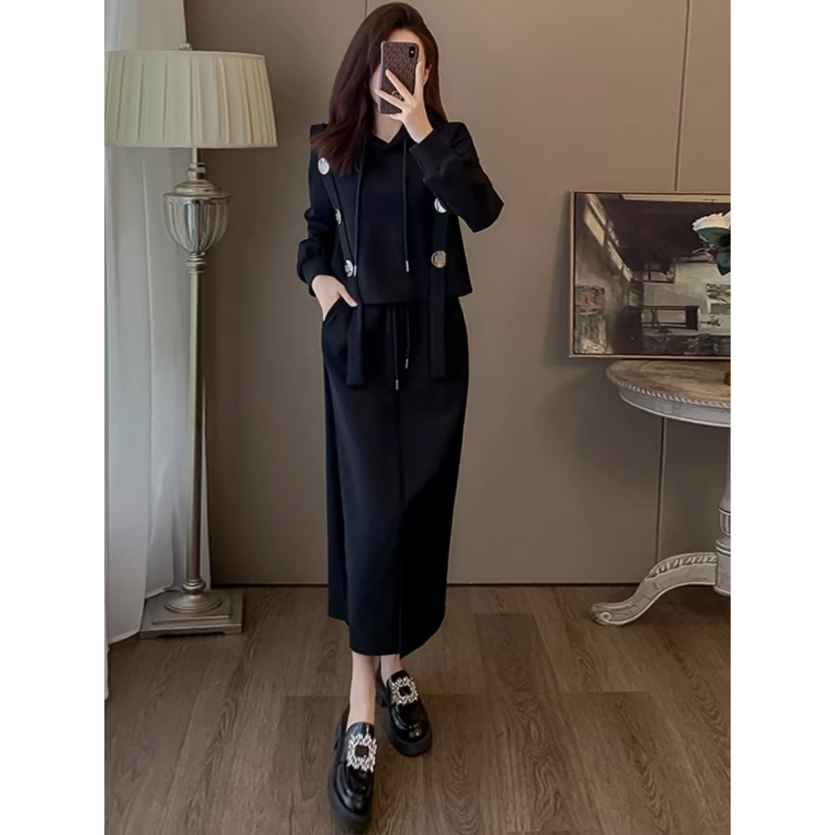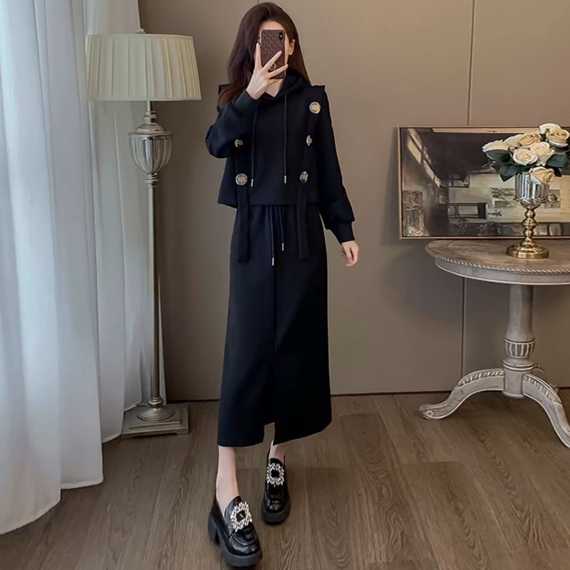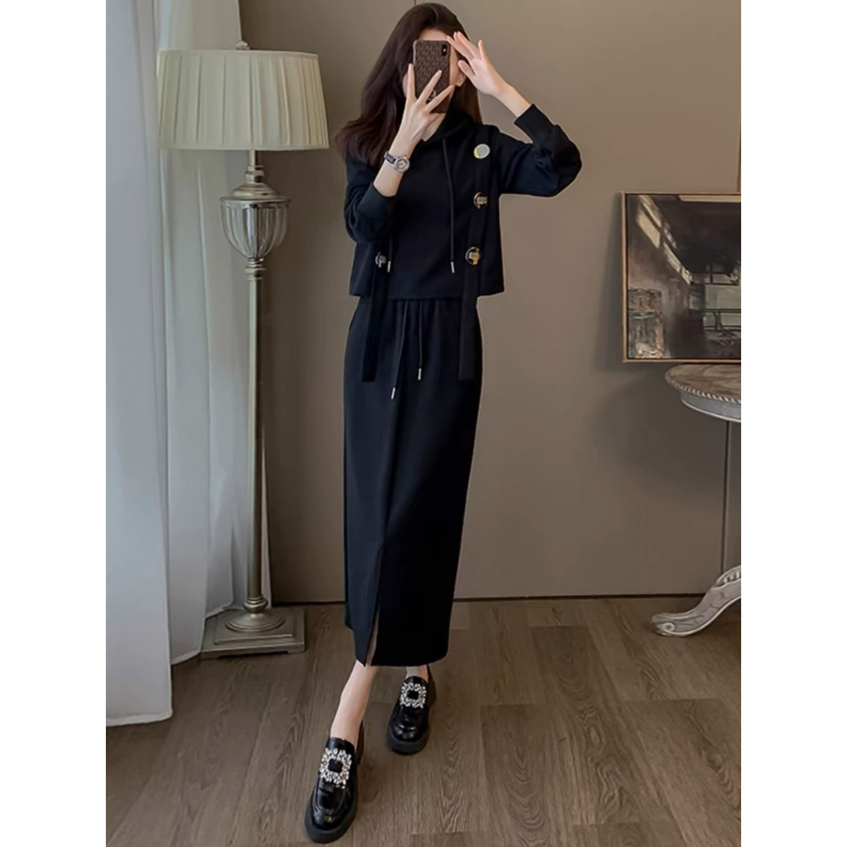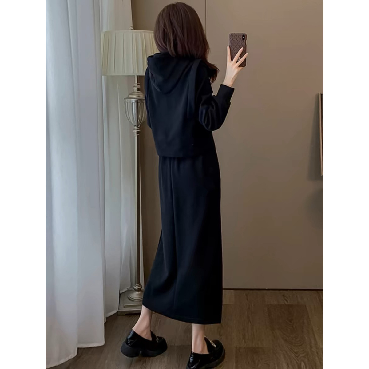 Bộ trang phục thể thao dành cho nữ với áo nỉ có mũ và chân váy dáng dài. Chất vải mềm mại, co giãn nhẹ mang lại sự thoải mái cho các hoạt động hằng ngày. Thiết kế một màu đen dễ dàng phối đồ, tạo vẻ gọn gàng. Có thể mặc nguyên bộ hoặc tách rời để phù hợp với nhiều dịp khác nhau. Phù hợp mặc trong tiết trời mát mẻ. | Tên sản phẩm: Đồ Bộ Nữ Cả Bộ 2 Món Hàng Mùa Xuân Thu Đông - Thời Trang Nữ | Mã sản phẩm: B9803 - Giá: 1.280.000đ | Mã nhà sản xuất: AIANOR-G04Hình ảnh sản phẩm