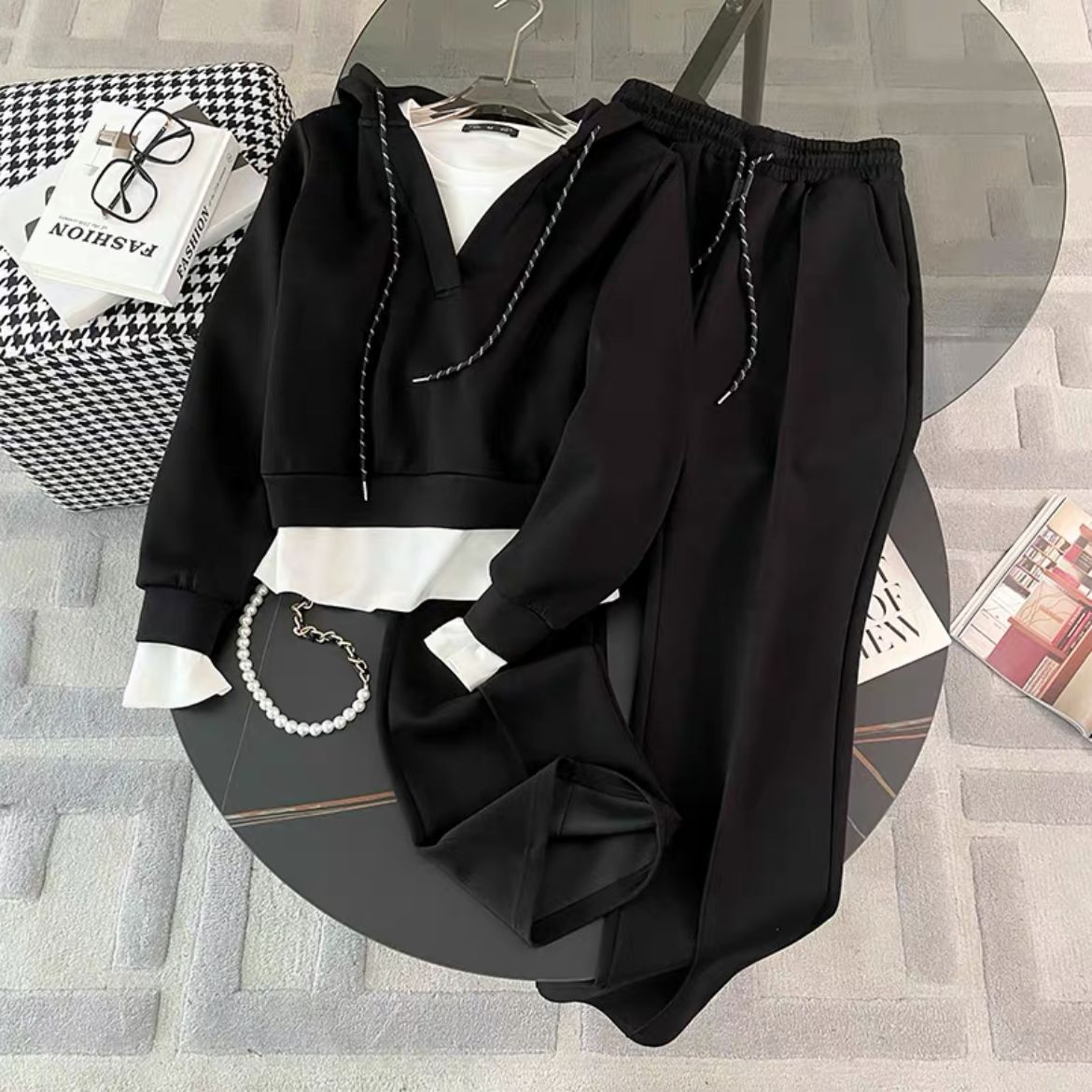 Bộ trang phục ba món này mang phong cách nhẹ nhàng, năng động. Áo thun dài tay cổ chữ V và áo nỉ mỏng giúp mặc cùng nhau dễ dàng. Quần ống rộng tạo cảm giác thoải mái, phù hợp cho các hoạt động hằng ngày. Bạn có thể mặc nguyên bộ hoặc phối với các món đồ khác. Chất vải mềm mại, co giãn nhẹ giúp người mặc dễ chịu khi vận động. Kiểu dáng giúp tôn dáng một cách tự nhiên, thích hợp dùng đi chơi, đi học hay tập thể dục nhẹ. | Tên sản phẩm: Đồ Bộ Nữ Dài Tay Cả Bộ 3 Món Cổ Chữ V Hàng Mùa Xuân Thu Đông - Thời Trang Nữ | Mã sản phẩm: B9830 - Giá: 1.490.000đ | Mã nhà sản xuất: AIANOR-G04Hình ảnh sản phẩm