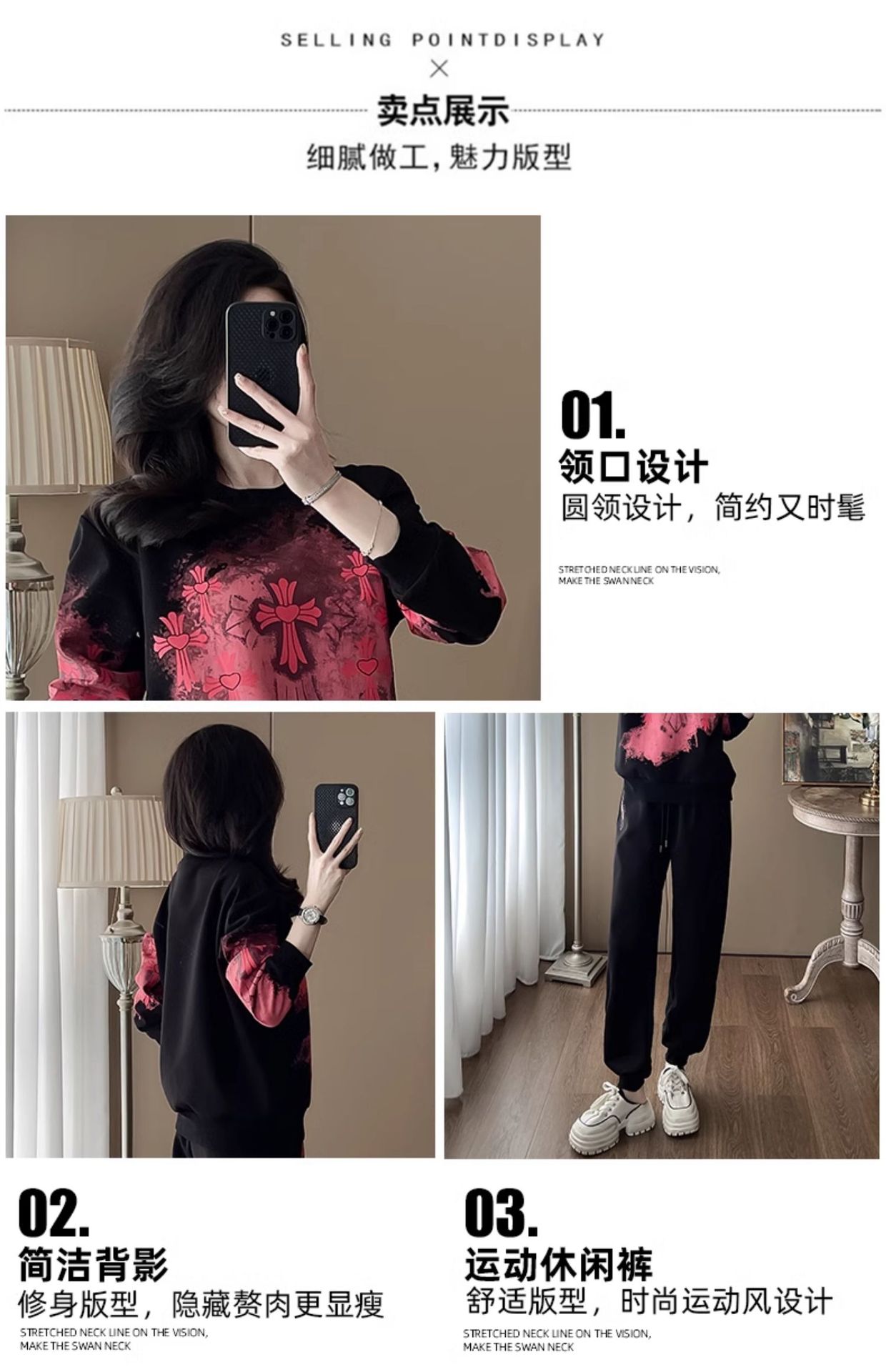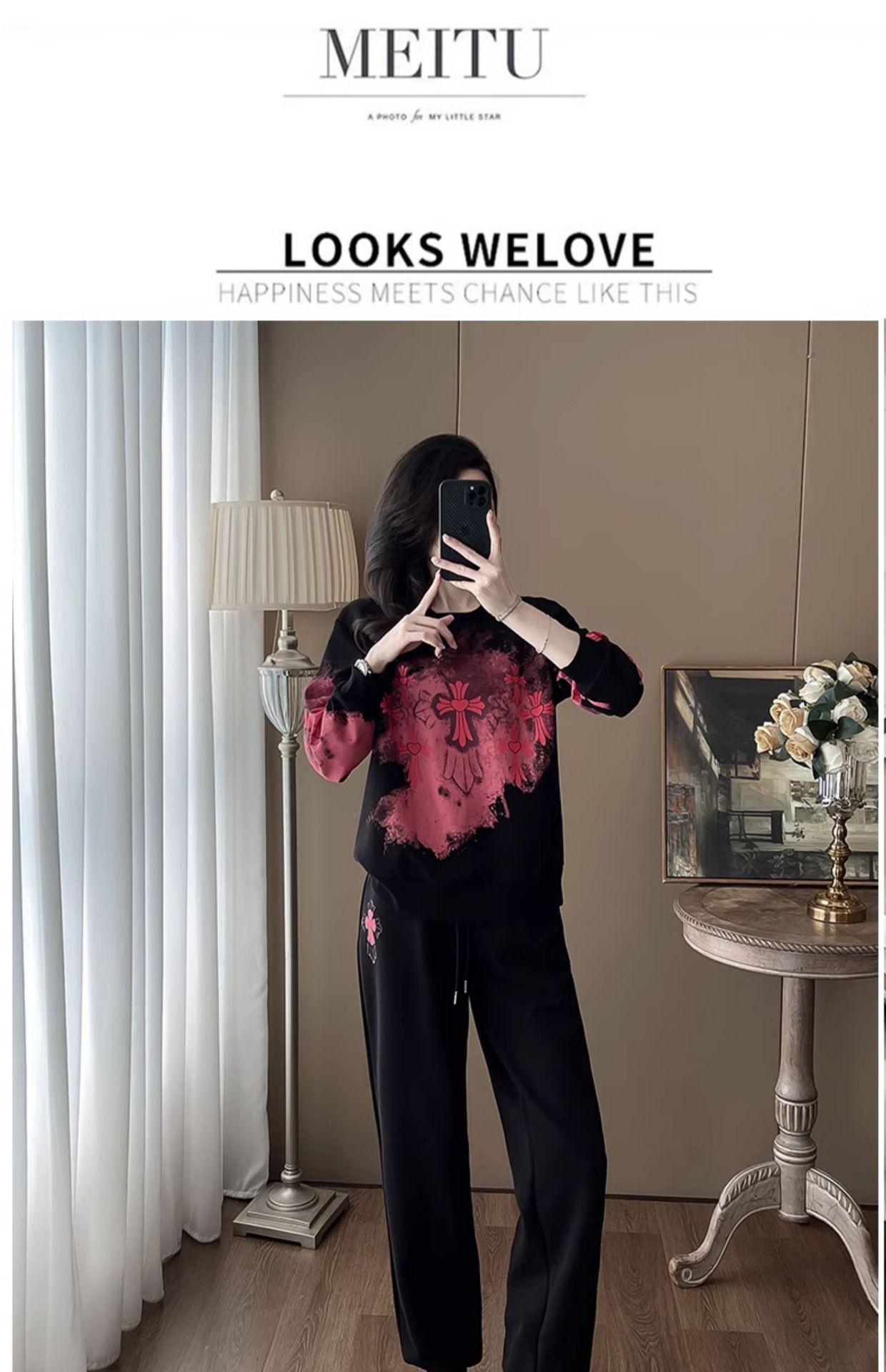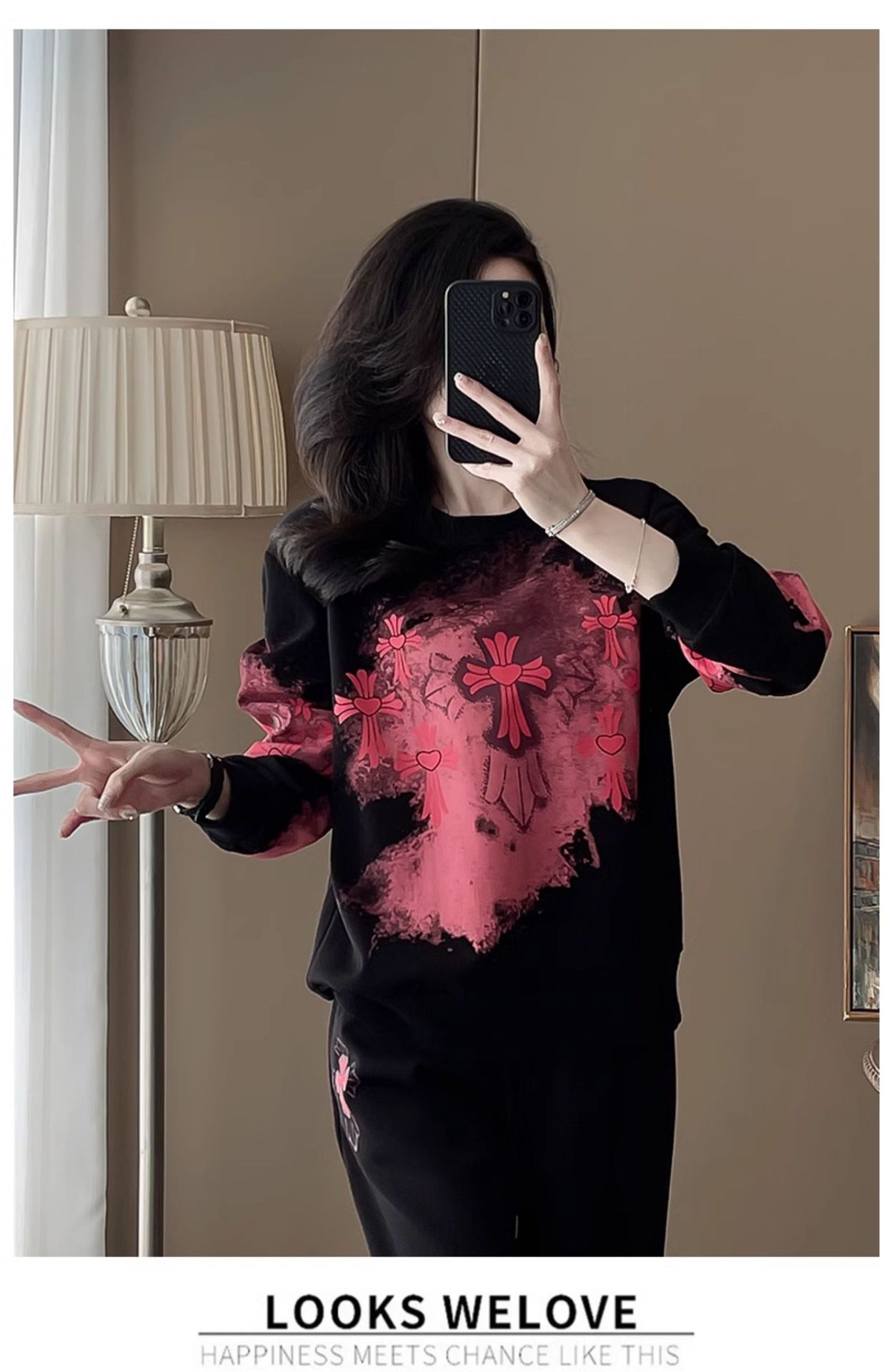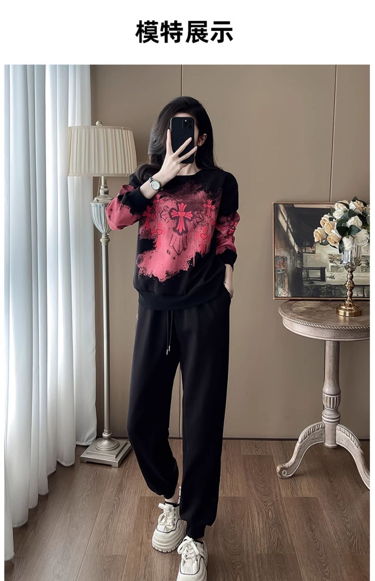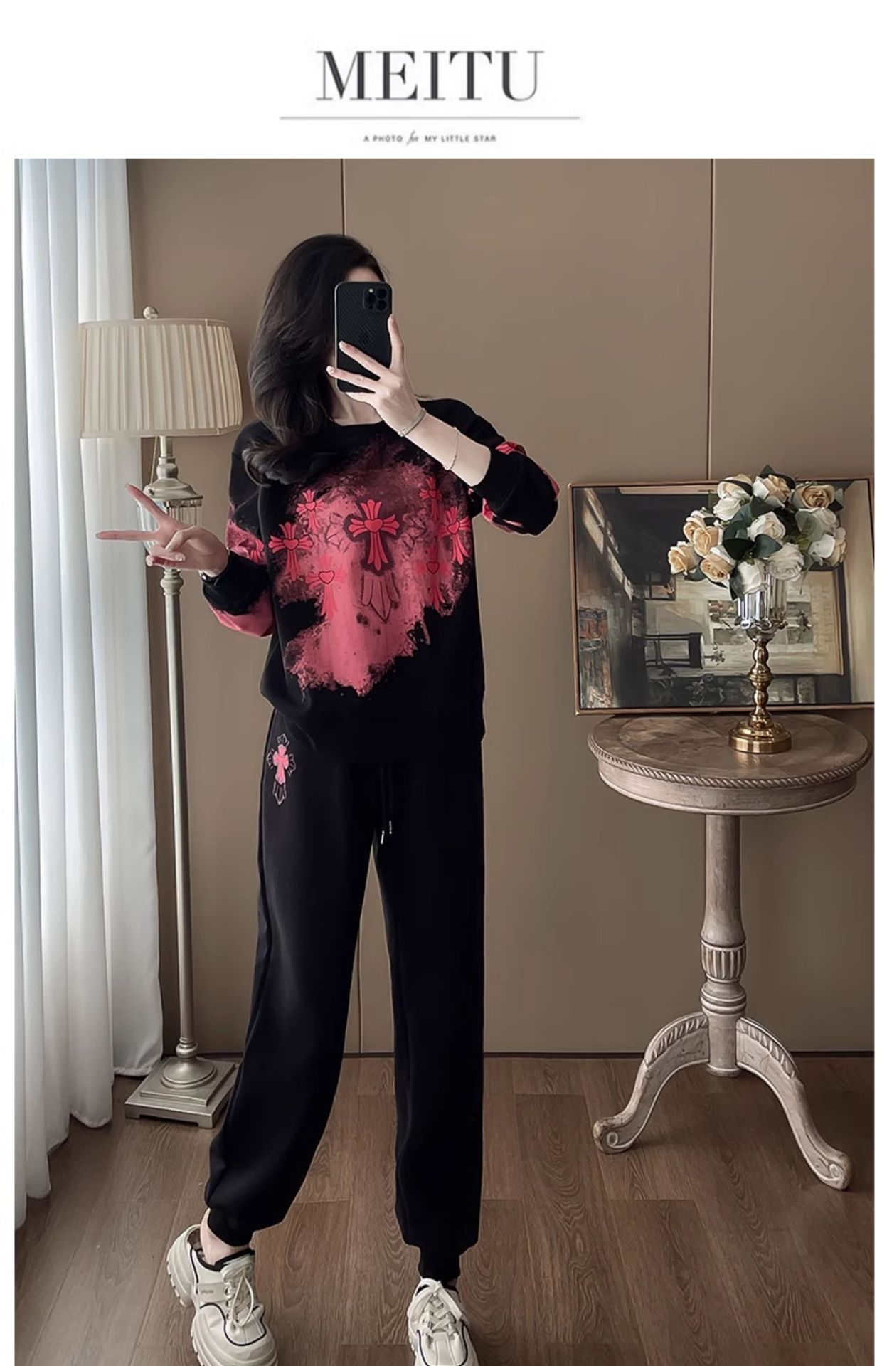 Bộ đồ thể thao hai mảnh dành cho nữ, thiết kế kiểu dáng năng động và thoải mái. Áo nỉ bên trong được làm ấm bằng lớp lót mềm mại, phù hợp cho thời tiết mát mẻ. Trên nền màu đen, điểm nhấn là các họa tiết in nổi bật, tạo nên vẻ trẻ trung và cá tính. Bạn có thể mặc nguyên bộ để đi chơi, tập luyện nhẹ nhàng hoặc phối cùng các trang phục khác. Chất vải co giãn nhẹ, mang lại cảm giác dễ chịu cho mọi hoạt động hằng ngày. | Tên sản phẩm: Đồ Bộ Nữ Cả Bộ 2 Món Họa Tiết Hoa Hàng Mùa Xuân Thu Đông - Thời Trang Nữ | Mã sản phẩm: B9880 - Giá: 1.250.000đ | Mã nhà sản xuất: AIANOR-G04Hình ảnh sản phẩm