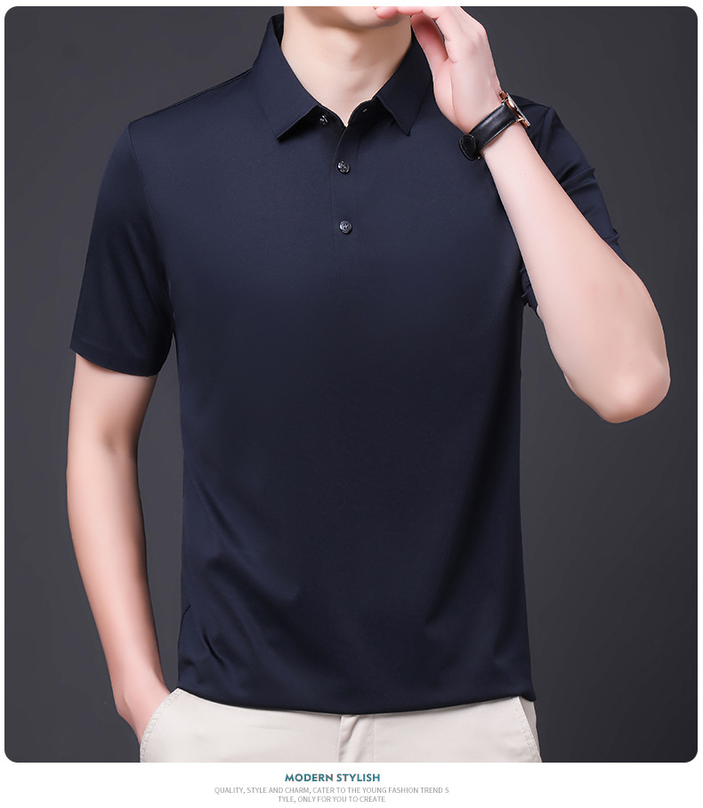 Áo thun ngắn tay dành cho nam, kiểu dáng polo cổ bẻ với màu sắc thuần nhất. Sản phẩm được dệt từ sợi tơ tằa mềm mại, mang lại cảm giác mát mẻ, dễ chịu khi mặc vào mùa hè. Thiết kế này phù hợp cho cả công sở và những dịp sinh hoạt thường ngày. Bạn có thể kết hợp cùng quần tây hoặc quần short để có được phong cách lịch sự và thoải mái. | Tên sản phẩm: Áo Thun Nam Chất Liệu Lụa Tơ Tằm Ngắn Tay Kín Cổ Hàng Mùa Hè Trung Niên - Thời Trang Nam | Mã sản phẩm: B9889 - Giá: 1.220.000đ | Mã nhà sản xuất: JIDEN-G04Hình ảnh sản phẩm