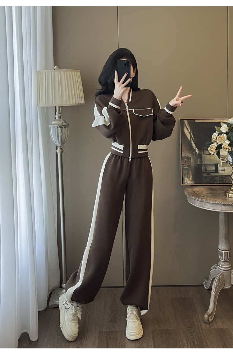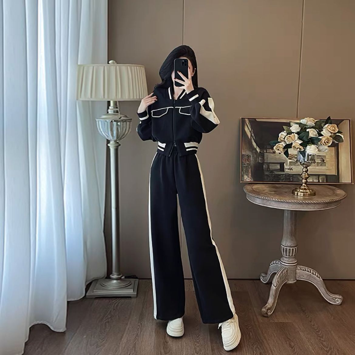 Bộ trang phục thể thao dành cho nữ, mang phong cách hiện đại và năng động. Thiết kế gồm áo khoác ngoài và quần ống rộng, tạo sự thoải mái và dễ chịu khi mặc. Chất vải mềm mại, co giãn nhẹ, phù hợp cho các hoạt động thường ngày hoặc lúc tập luyện nhẹ nhàng. Bạn có thể mặc nguyên bộ để có vẻ đồng bộ, hoặc phối với các áo phông bên trong để đa dạng phong cách. Đây là lựa chọn tiện lợi cho những ngày thu đông. | Tên sản phẩm: Áo Khoác Nữ Cả Bộ 2 Món Hàng Mùa Xuân Thu Đông - Thời Trang Nữ | Mã sản phẩm: B9907 - Giá: 1.730.000đ | Mã nhà sản xuất: AIANOR-G05Hình ảnh sản phẩm