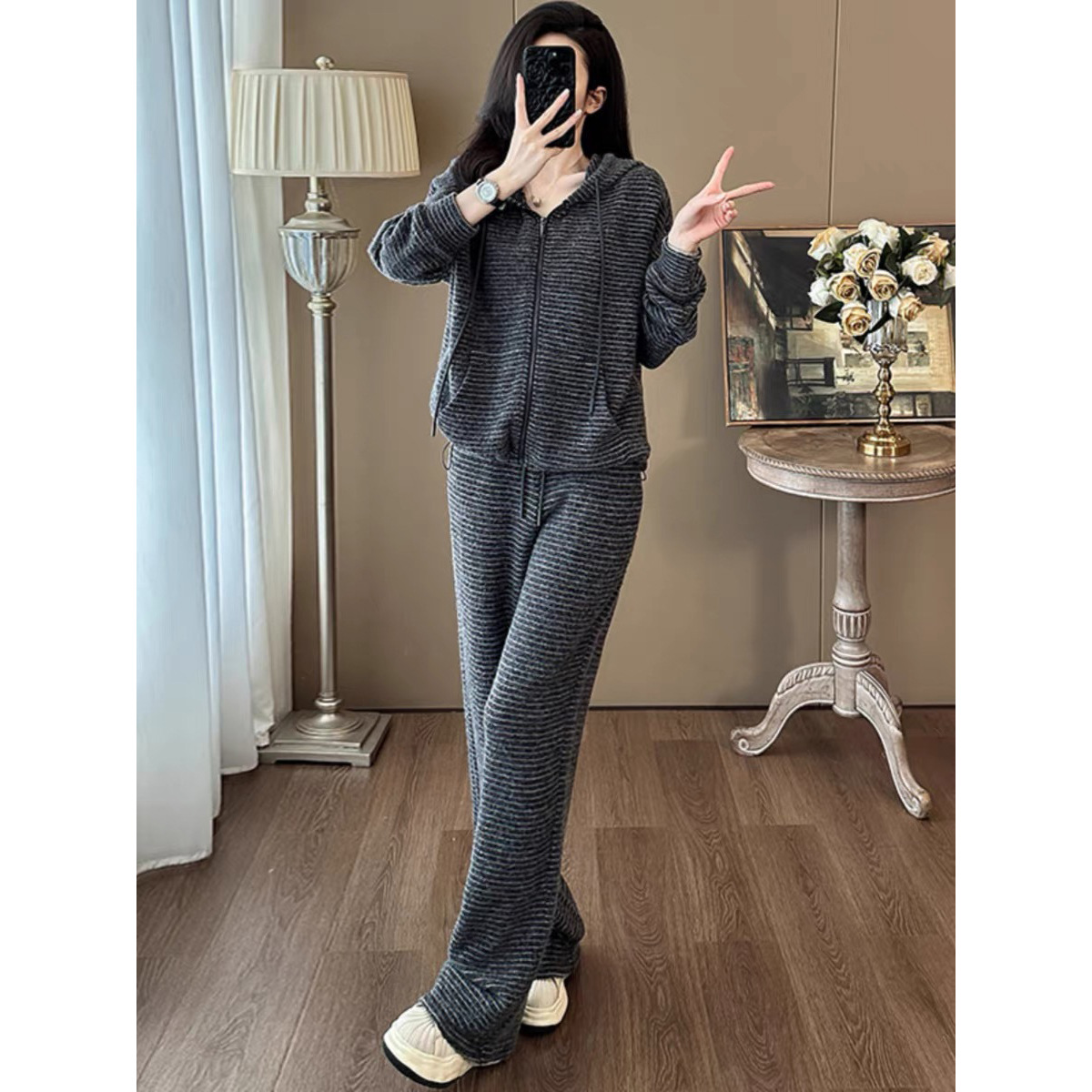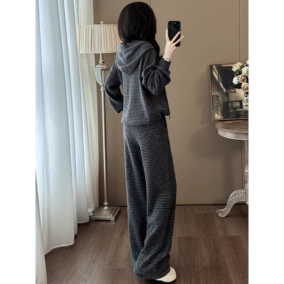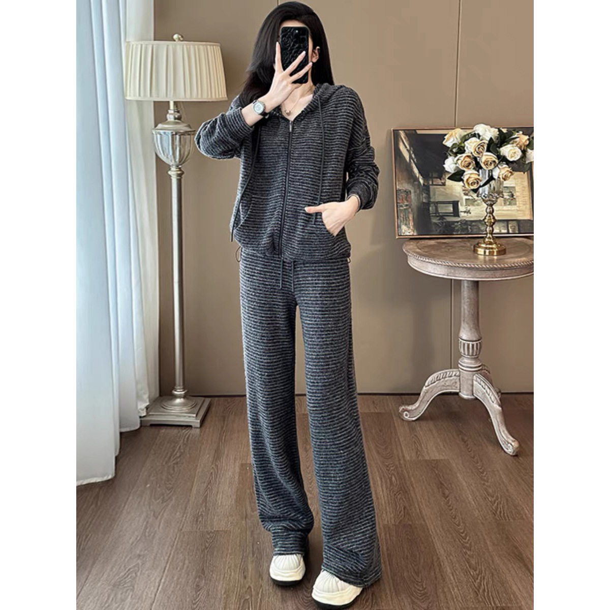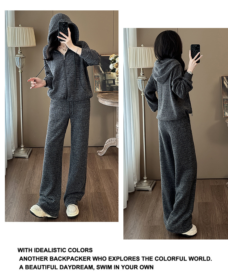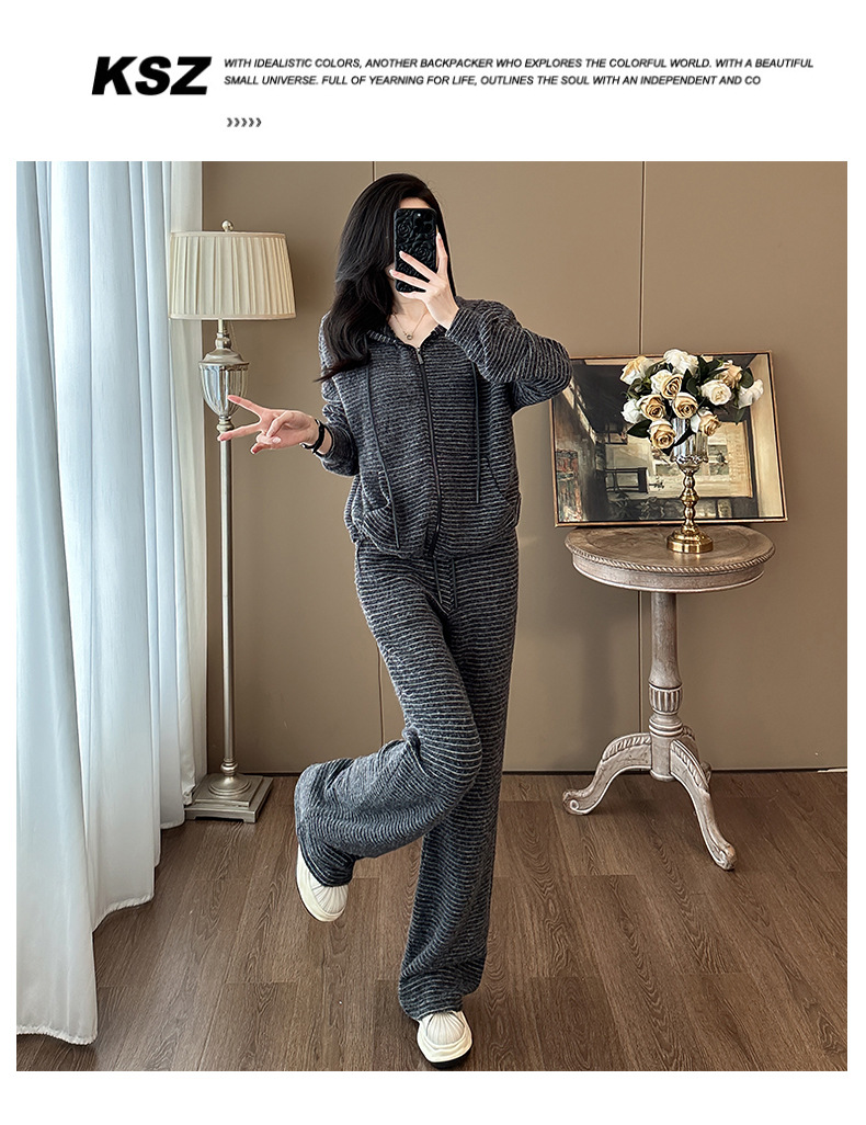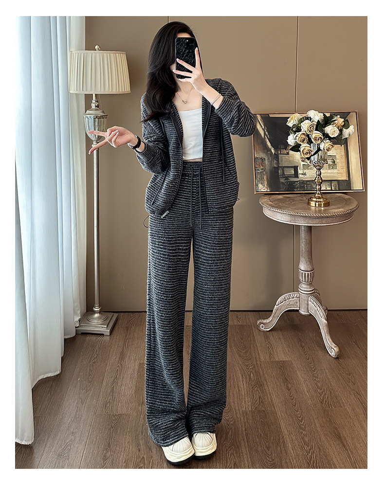 Bộ trang phục hai mảnh này mang phong cách trẻ trung, năng động. Áo khoác dáng rộng có họa tiết sọc và được lót lớp lông mềm mại giữ ấm tốt. Kết hợp cùng chiếc quần ống rộng thoải mái, tạo nên một bộ đồ hoàn chỉnh. Bạn có thể mặc bộ này khi đi chơi, đi học hay dạo phố. Chất vải co giãn nhẹ, mang lại cảm giác dễ chịu cho mọi hoạt động hằng ngày. | Tên sản phẩm: Áo Khoác Nữ Cả Bộ 2 Món Trông Trẻ Hơn Tuổi Hàng Mùa Xuân Thu Đông - Thời Trang Nữ | Mã sản phẩm: B9920 - Giá: 1.680.000đ | Mã nhà sản xuất: AIANOR-G05Hình ảnh sản phẩm