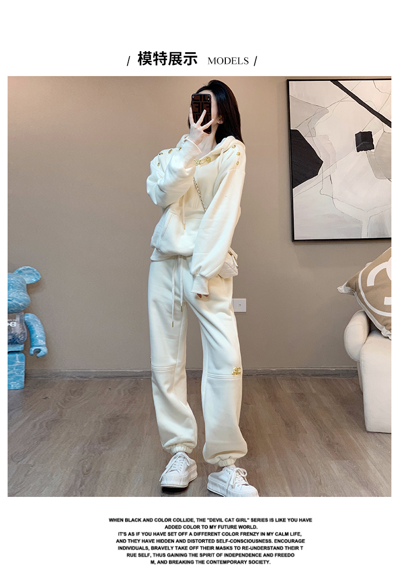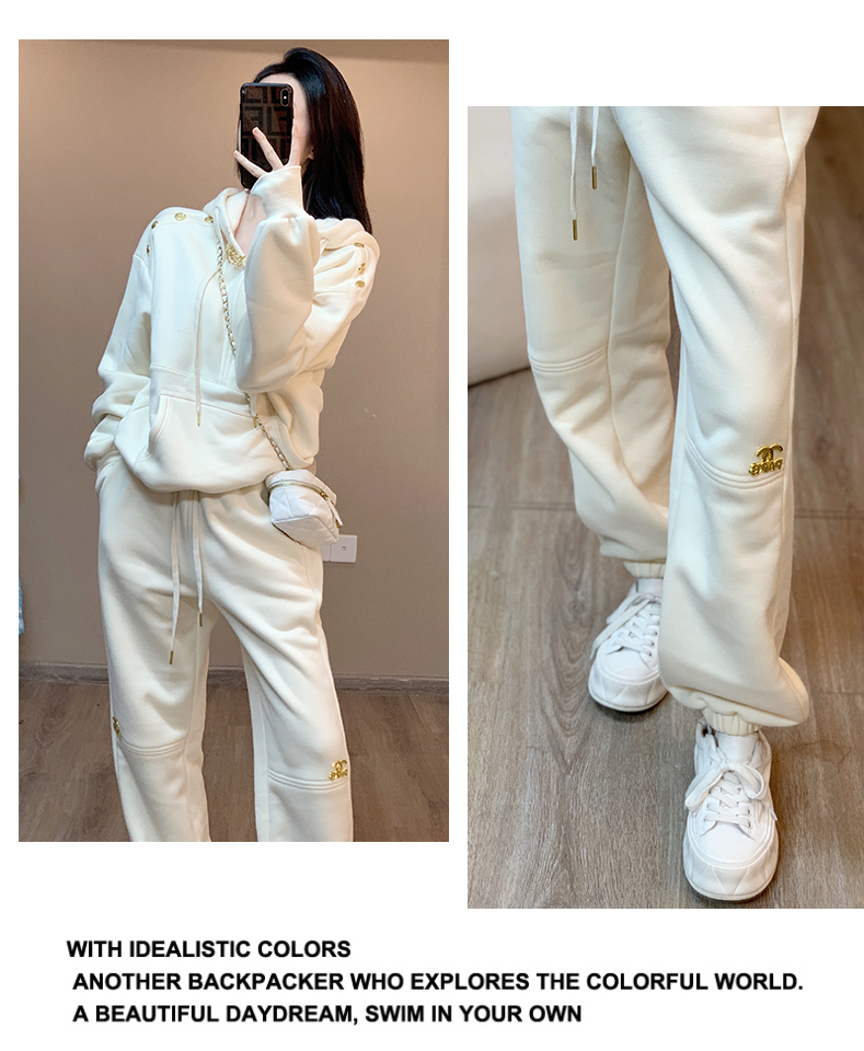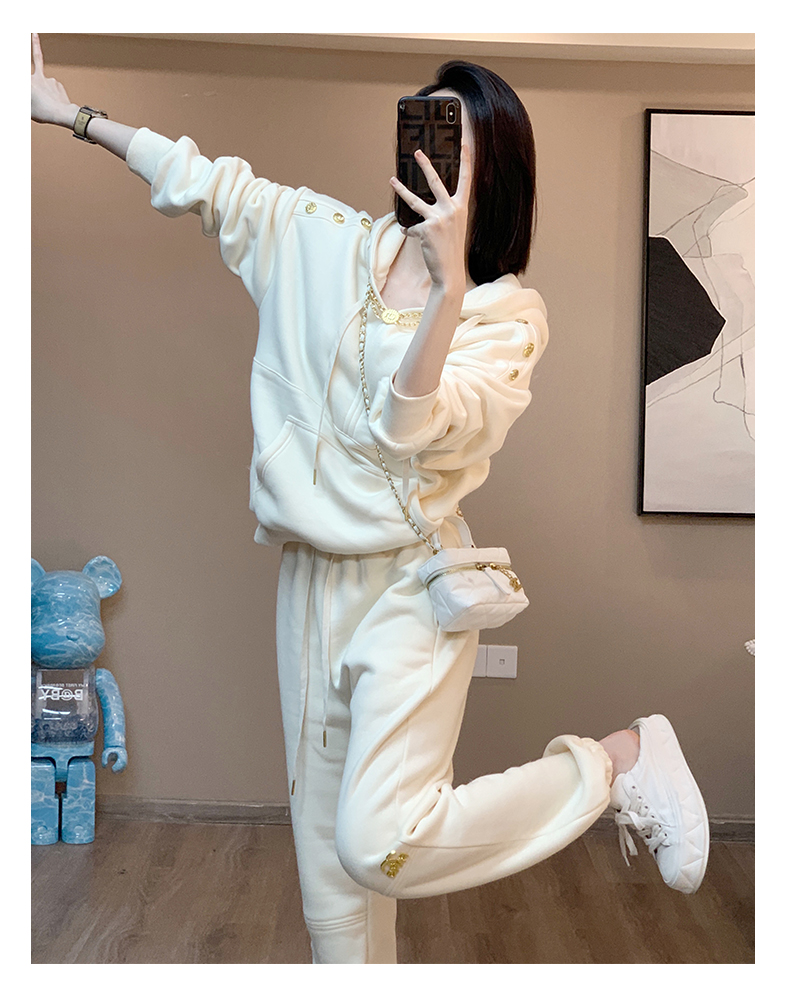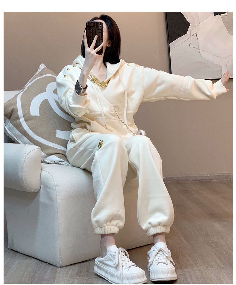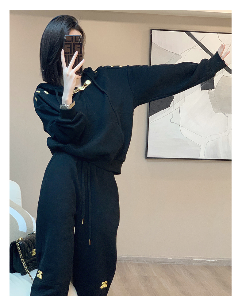 Bộ trang phục thể thao hai mảnh này mang đến sự kết hợp giữa nét năng động và sự thanh lịch nhẹ nhàng. Áo hoodie có mũ trùm tiện lợi, mặc cùng quần dáng thoải mái, tạo nên một bộ đồ đồng bộ. Chất vải mềm mại, co giãn tốt, cho bạn cảm giác dễ chịu khi vận động hoặc mặc trong mùa thu đông. Bạn có thể mặc nguyên bộ để đi dạo, tập luyện nhẹ, hoặc phối cùng các trang phục khác. Kiểu dáng trẻ trung, dễ phối đồ và phù hợp cho nhiều hoạt động hằng ngày. | Tên sản phẩm: Đồ Bộ Nữ Cả Bộ 2 Món Hàng Mùa Xuân Thu Đông - Thời Trang Nữ | Mã sản phẩm: B9933 - Giá: 1.520.000đ | Mã nhà sản xuất: AIANOR-G04Hình ảnh sản phẩm