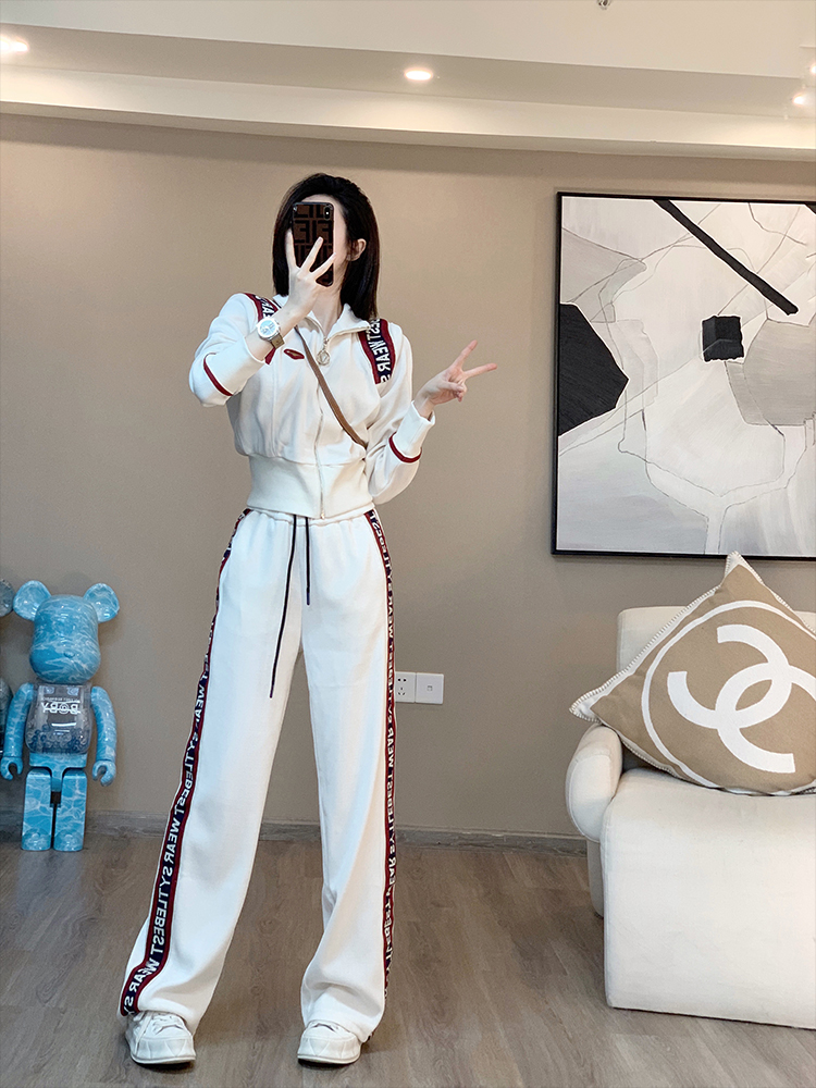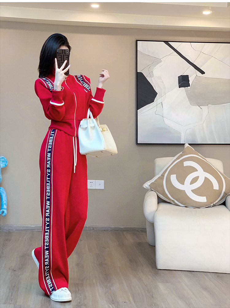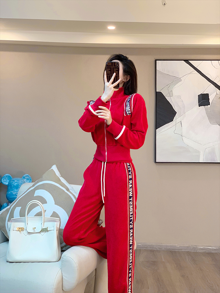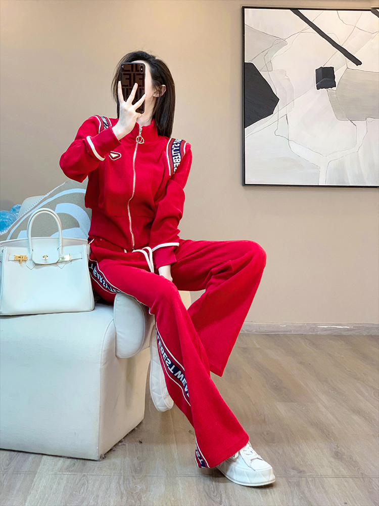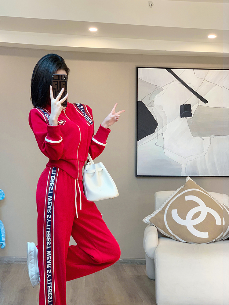 Bộ trang phục thể thao hai mảnh này gồm áo khoác kiểu bóng chày và quần ống rộng. Chất liệu áo được lót thêm lớp bông mềm mại giữ ấm tốt, phù hợp cho thời tiết se lạnh. Phong cách thiết kế trẻ trung, năng động, dễ dàng phối đồ cho nhiều dịp sinh hoạt hằng ngày. Có thể mặc nguyên bộ hoặc tách riêng từng món để phối với các trang phục khác. Màu đỏ rực rỡ của quần tạo điểm nhấn nổi bật, giúp người mặc thêm phần tự tin. | Tên sản phẩm: Đồ Bộ Nữ Cả Bộ 2 Món Hàng Mùa Xuân Thu Đông - Thời Trang Nữ | Mã sản phẩm: B9946 - Giá: 1.390.000đ | Mã nhà sản xuất: AIANOR-G04Hình ảnh sản phẩm