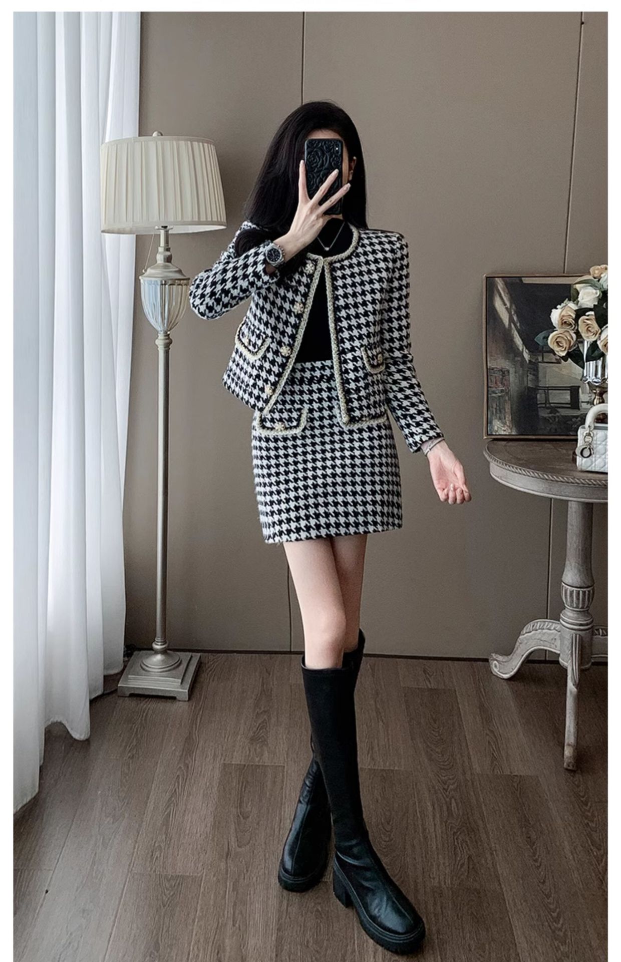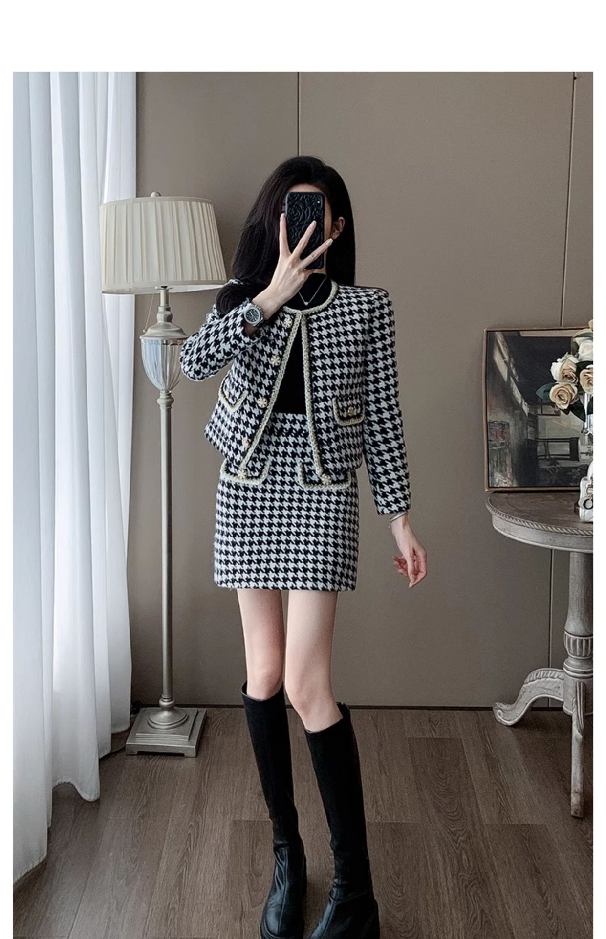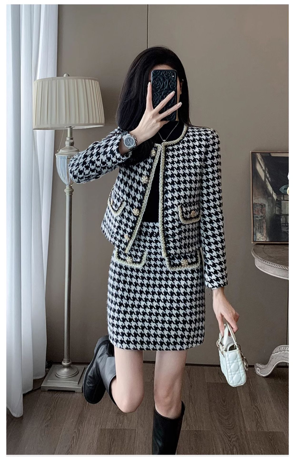 Bộ trang phục hai mảnh này gồm áo khoác mỏng cài nút và chân váy ngắn, mang đến vẻ ngoại hình trẻ trung, thanh lịch. Kiểu dáng phù hợp cho những ngày thu đông, dễ dàng phối đồ đi làm hay dạo phố. Chỉ cần mặc nguyên bộ là đã có set đồ hoàn chỉnh, hoặc tách riêng từng món để kết hợp với các trang phục khác. Chất vải mềm mại giúp người mặc cảm thấy dễ chịu và thoải mái cả ngày. | Tên sản phẩm: Đồ Bộ Nữ Dáng Dộng Cả Bộ 2 Món Trông Trẻ Hơn Tuổi Hàng Mùa Xuân Thu Đông - Thời Trang Nữ | Mã sản phẩm: B9970 - Giá: 1.420.000đ | Mã nhà sản xuất: AIANOR-G04Hình ảnh sản phẩm