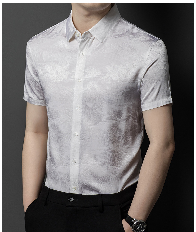 Áo sơ mi ngắn tay dành cho nam, được dệt từ sợi tơ tự nhiên, mang đến cảm giác mát mẻ và thoải mái suốt ngày dài. Kiểu dáng kết hợp hài hòa giữa phong cách thường ngày và công sở. Trên nền vải là những họa tiết dệt nổi tinh tế, tăng thêm điểm nhấn. Sản phẩm dễ dàng phối cùng quần tây hoặc quần âu. Giặt nhẹ bằng nước lạnh và phơi trong bóng râm để giữ form áo. | Tên sản phẩm: Áo Sơ Mi Nam Chất Liệu Lụa Tơ Tằm Ngắn Tay Họa Tiết Hoa Hàng Mùa Hè - Thời Trang Nam | Mã sản phẩm: B9979 - Giá: 2.760.000đ | Mã nhà sản xuất: JIDEN-G06Hình ảnh sản phẩm