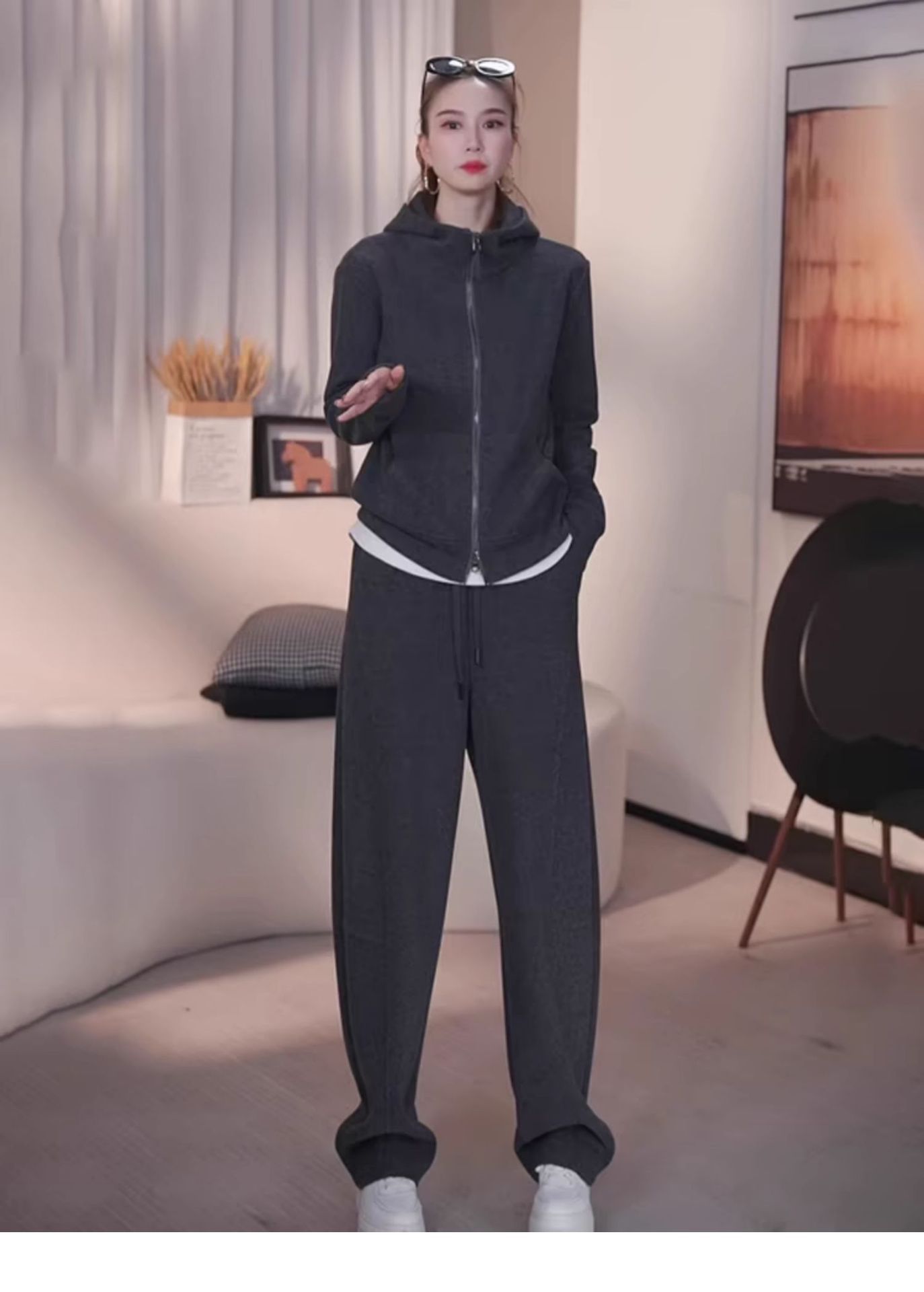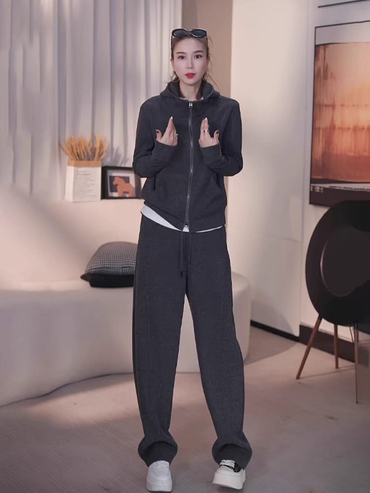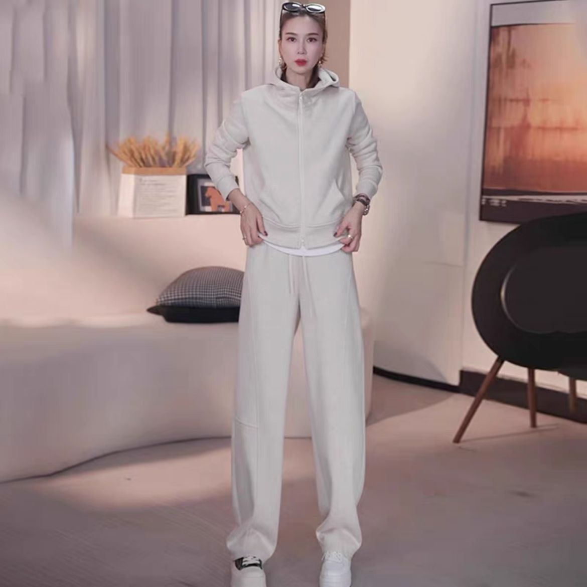 Bộ trang phục thể thao hai mảnh này có áo khoác ngoài có mũ và kéo khóa, kết hợp cùng quần ống rộng. Chất vải dày dặn, mềm mại giúp giữ ấm tốt, phù hợp cho những ngày thu đông. Kiểu dáng năng động, dễ dàng phối đồ cho nhiều hoạt động hằng ngày. Bạn có thể mặc nguyên bộ khi tập luyện hoặc đi chơi, cũng có thể tách riêng từng món để phối với các trang phục khác. | Tên sản phẩm: Đồ Bộ Nữ Cả Bộ 2 Món Hàng Mùa Xuân Thu Đông - Thời Trang Nữ | Mã sản phẩm: B9983 - Giá: 1.620.000đ | Mã nhà sản xuất: AIANOR-G05Hình ảnh sản phẩm