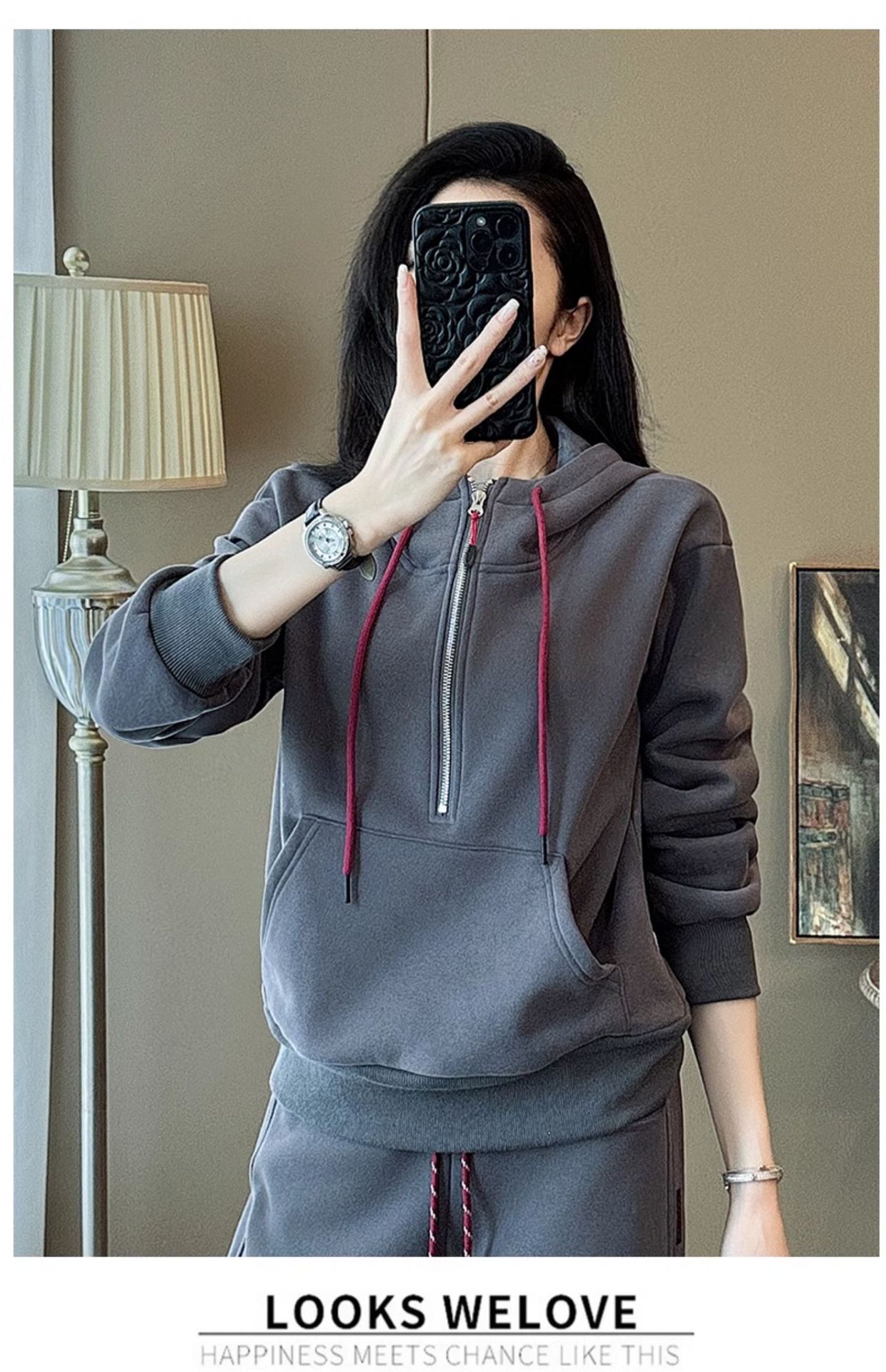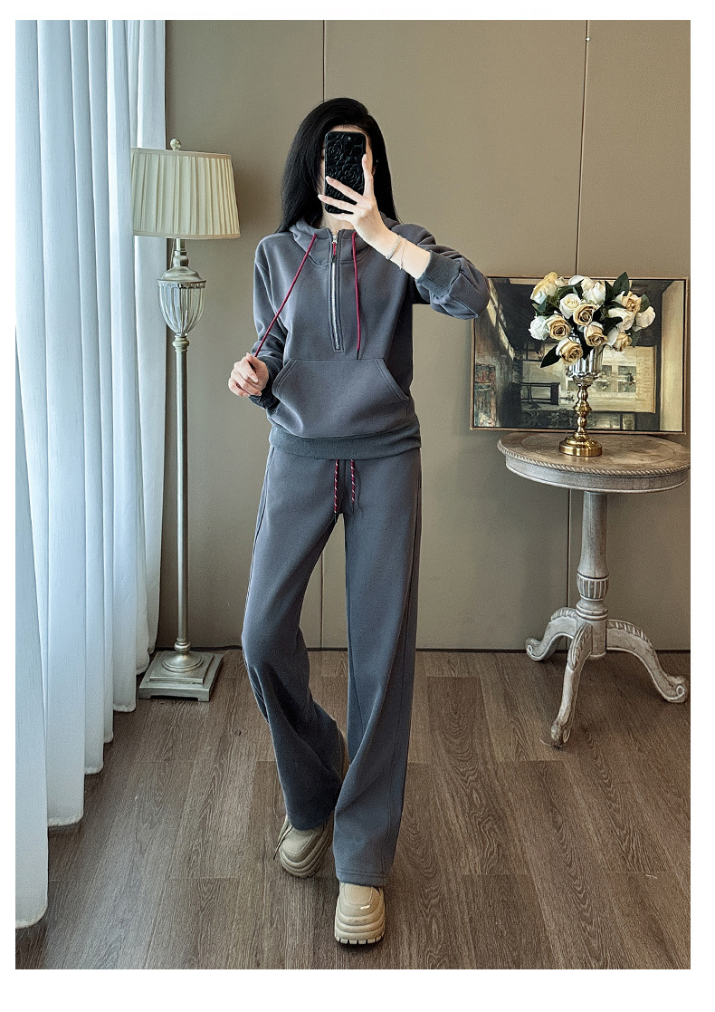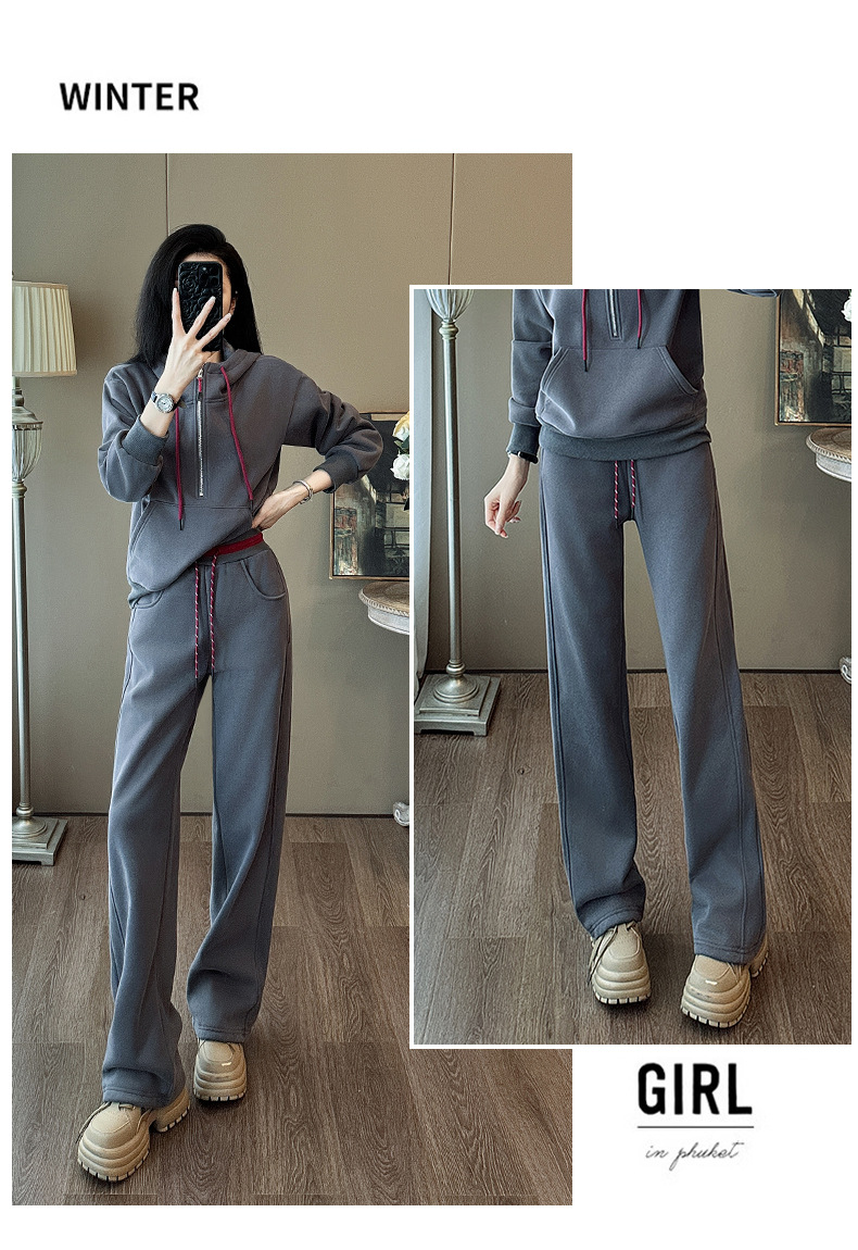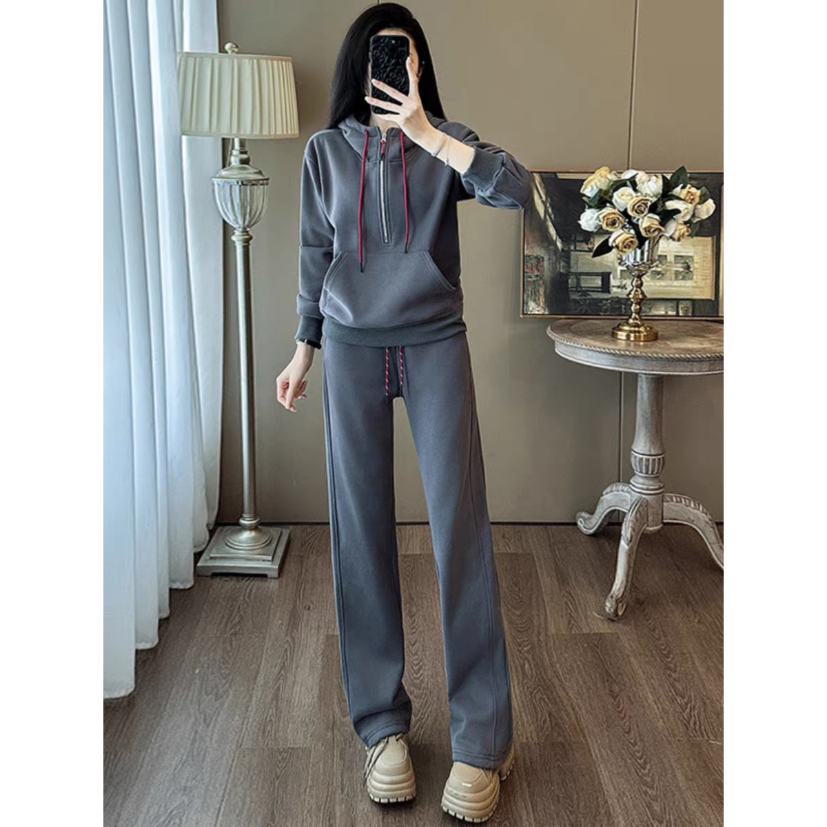 Bộ trang phục thể thao này gồm áo nỉ có mũ và quần ống rộng, được thiết kế dành riêng cho mùa đông. Chất liệu bên trong được lót lớp lông mềm mại giúp giữ ấm tốt, màu xám dễ dàng phối đồ. Kiểu dáng năng động, thoải mái, phù hợp cho nhiều hoạt động hằng ngày. Bạn có thể mặc nguyên bộ hoặc tách rời để phối với các trang phục khác, tạo nên những vẻ ngoài linh hoạt và tiện lợi. | Tên sản phẩm: Đồ Bộ Nữ Cả Bộ 2 Món Hàng Mùa Xuân Thu Đông - Thời Trang Nữ | Mã sản phẩm: C0105 - Giá: 1.390.000đ | Mã nhà sản xuất: AIANOR-G04Hình ảnh sản phẩm